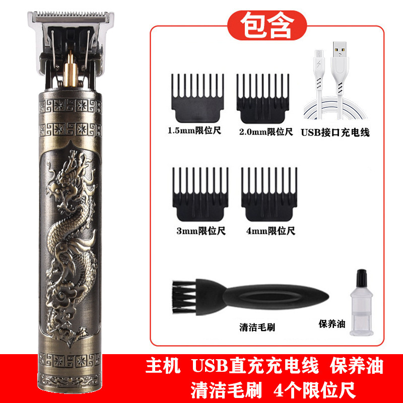 亚马逊热销剃刀美发雕刻推白电推剪T9充电式复古油头理发器电推子