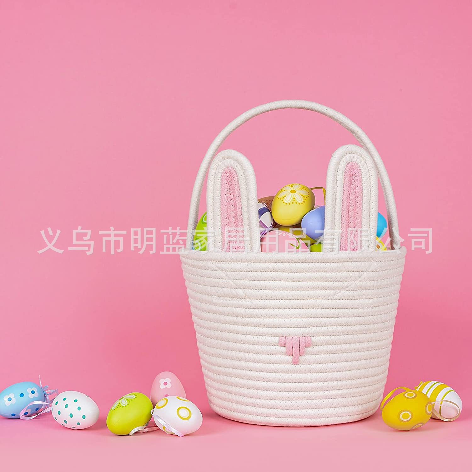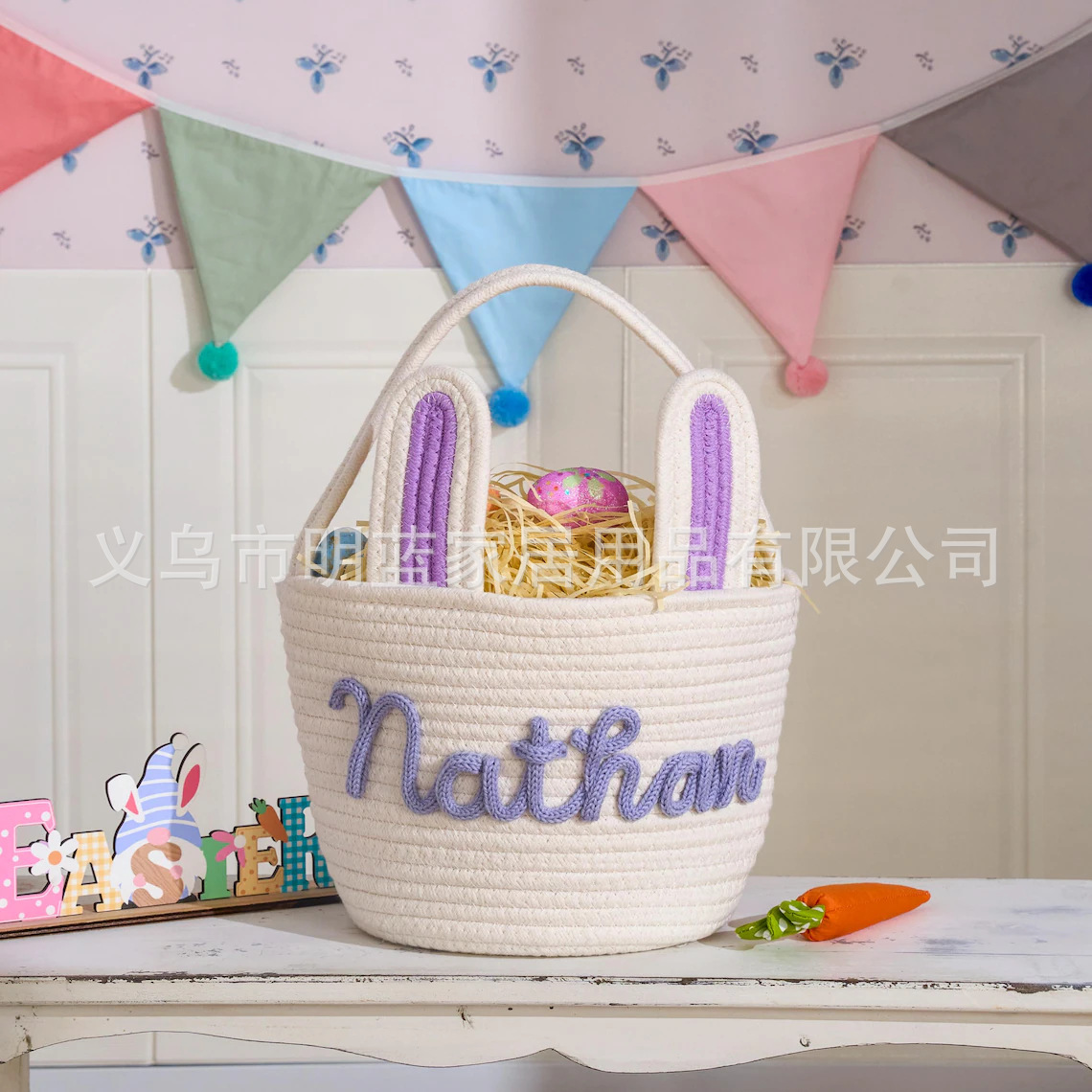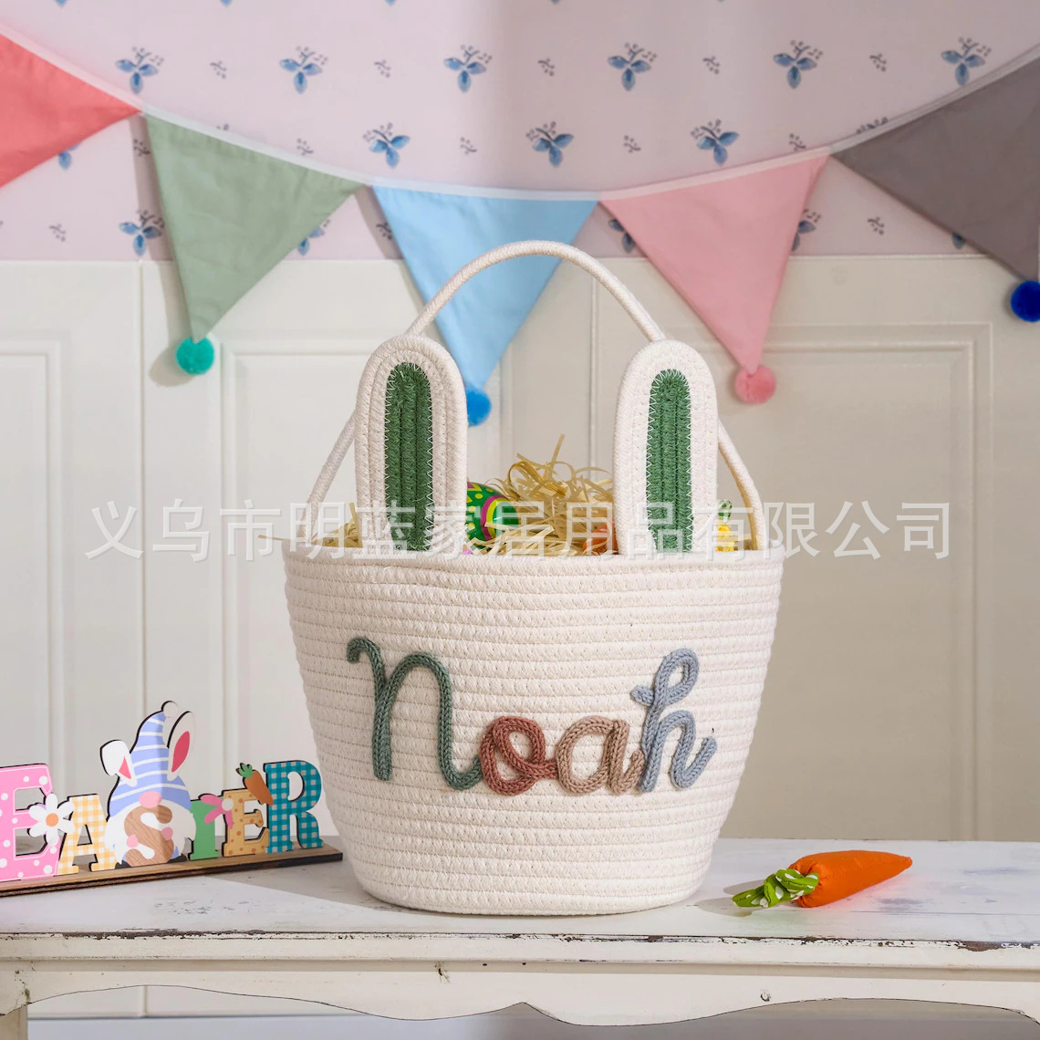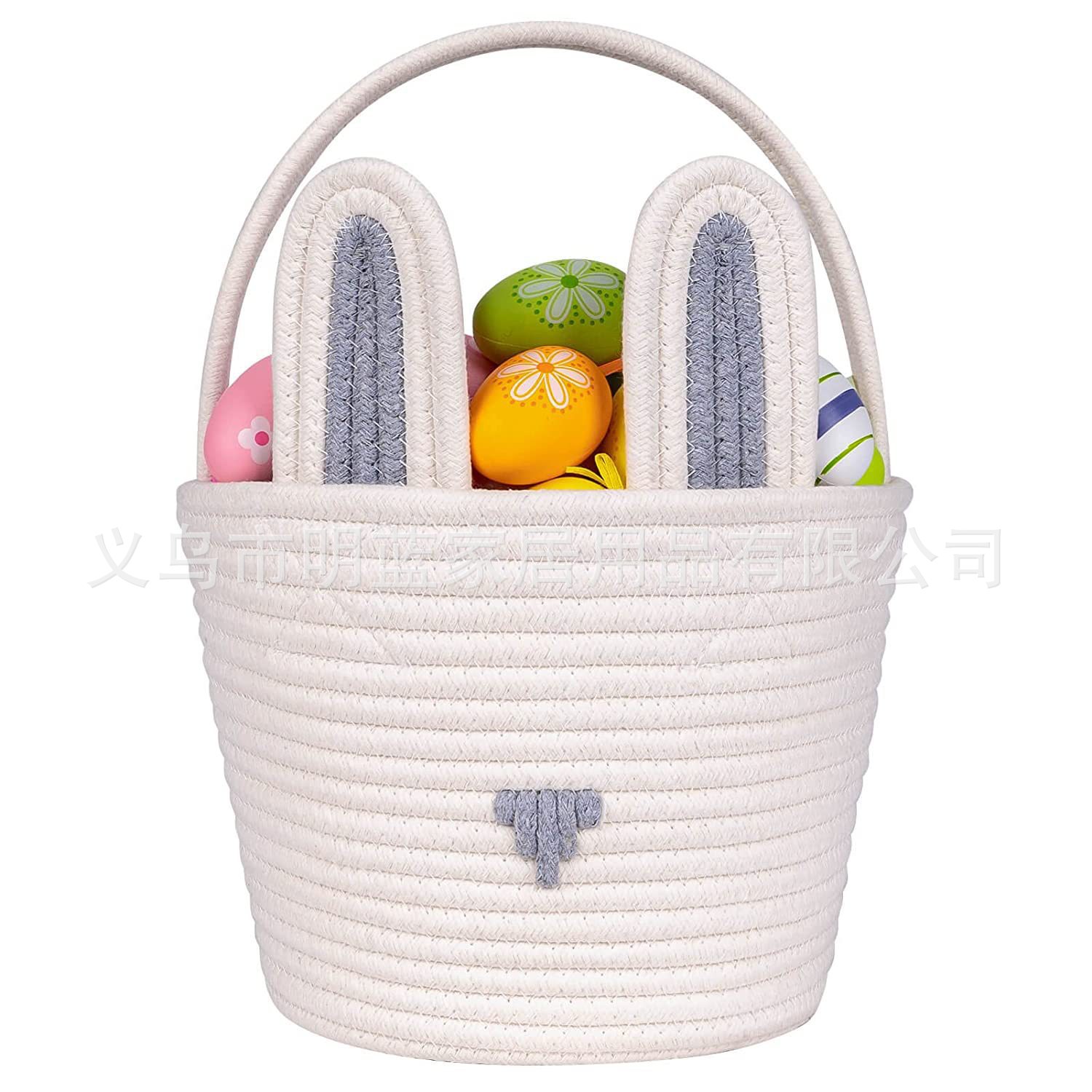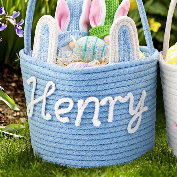 源头厂家Easter复活节礼品篮兔耳朵手工编织收纳筐彩蛋手提篮子