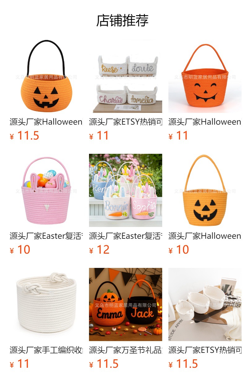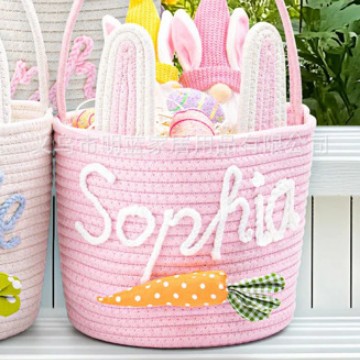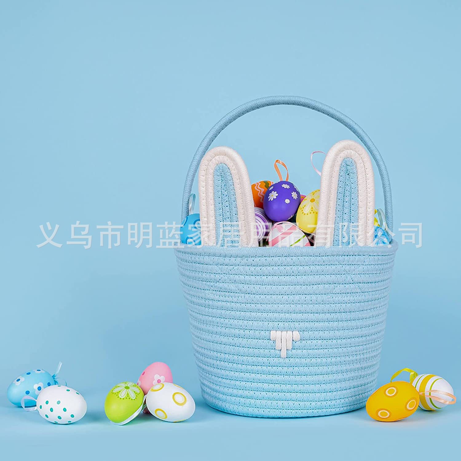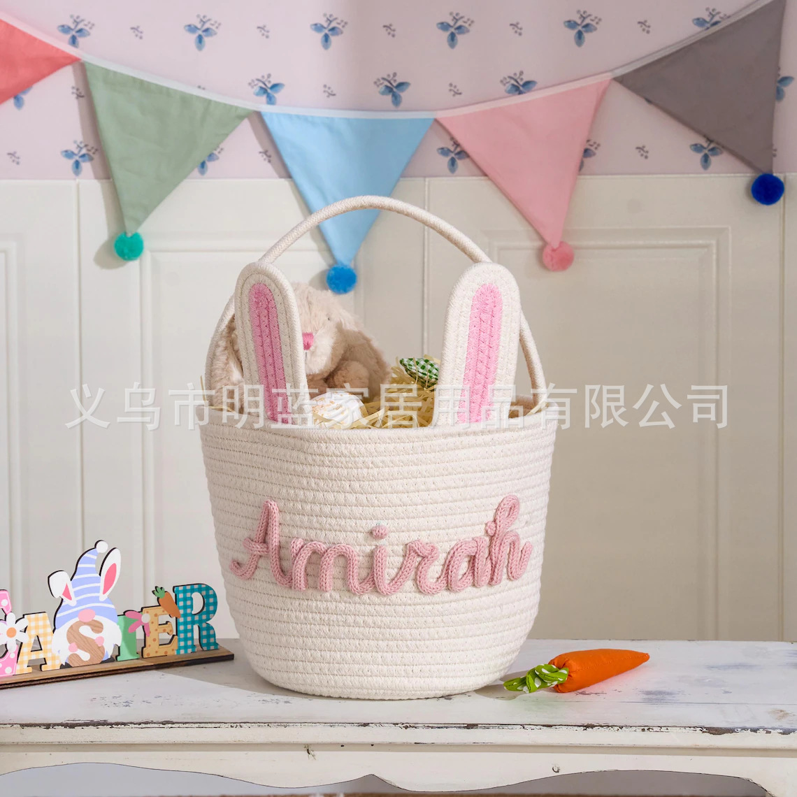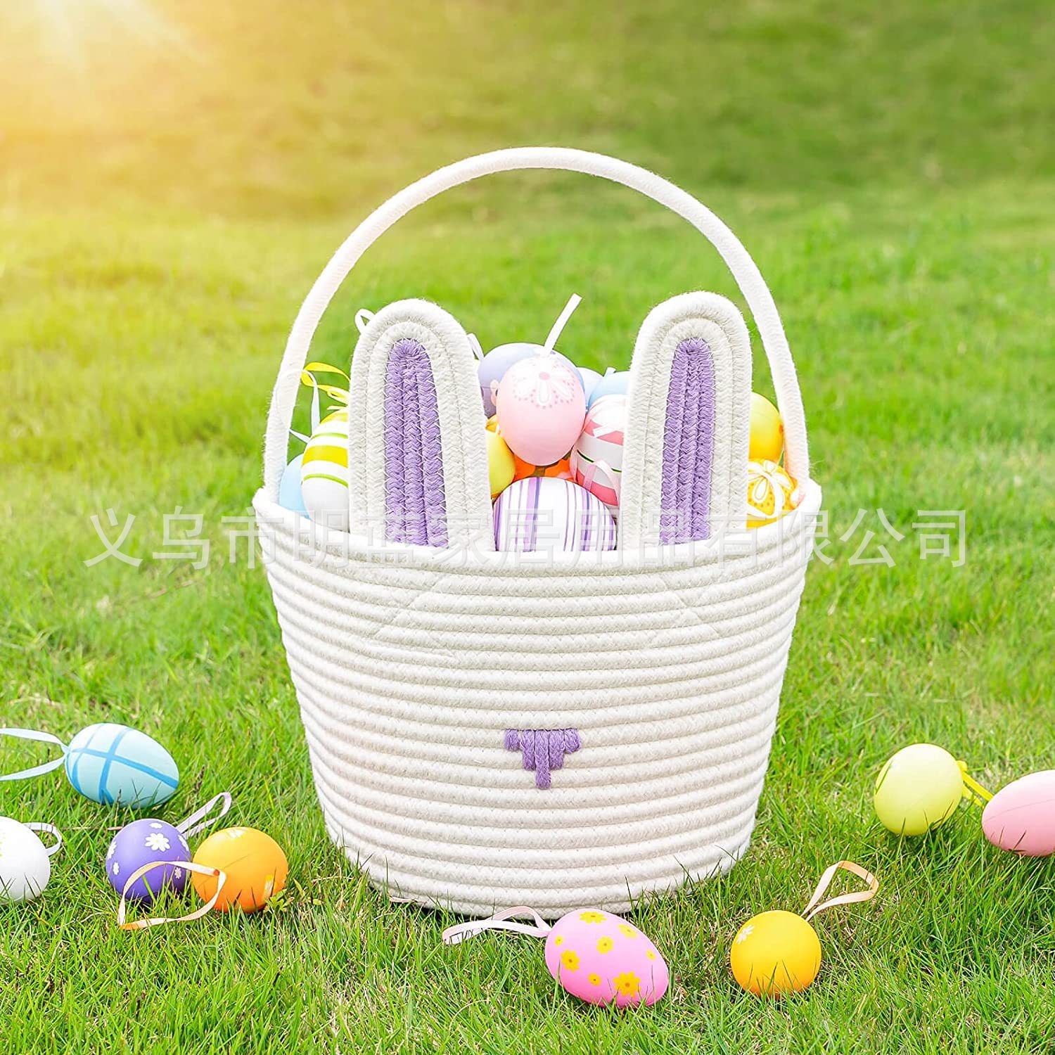 源头厂家Easter复活节礼品篮兔耳朵手工编织收纳筐彩蛋手提篮子