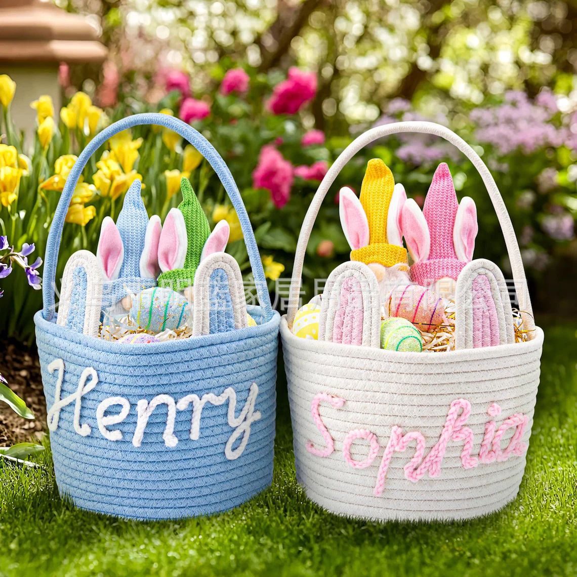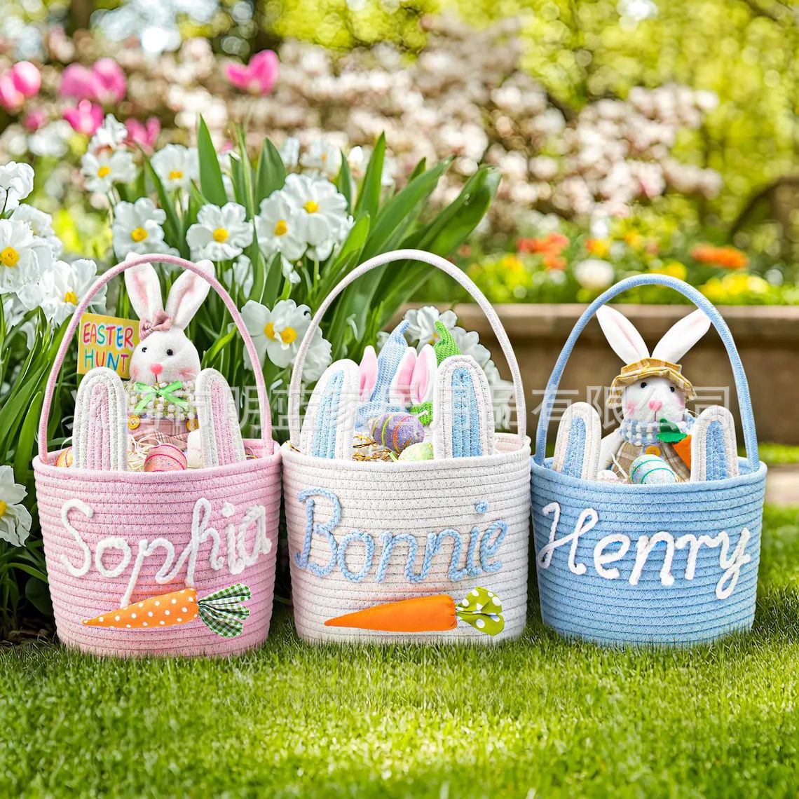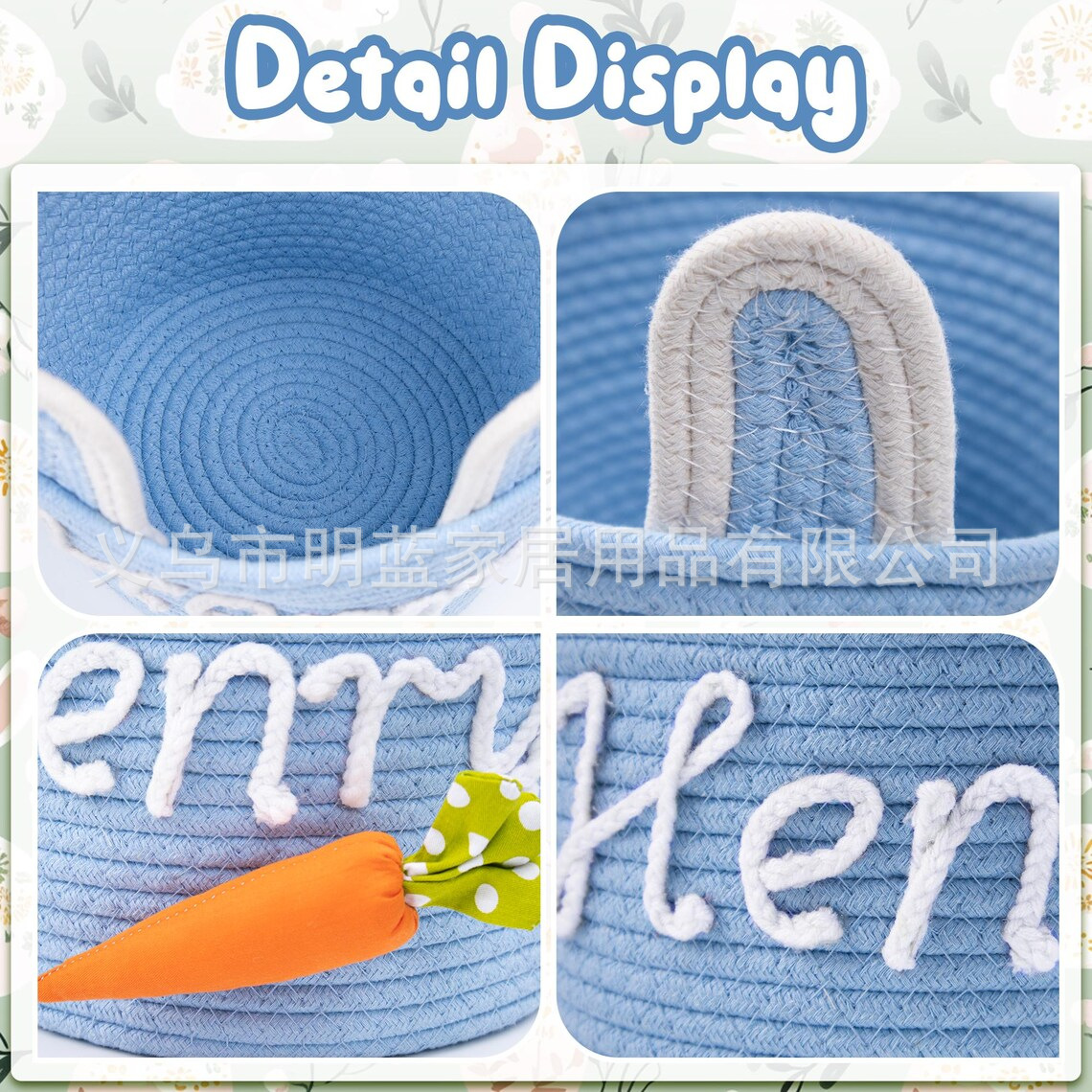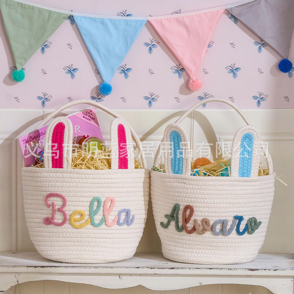 源头厂家Easter复活节礼品篮兔耳朵手工编织收纳筐彩蛋手提篮子
