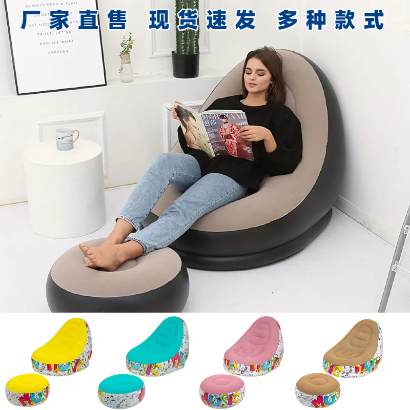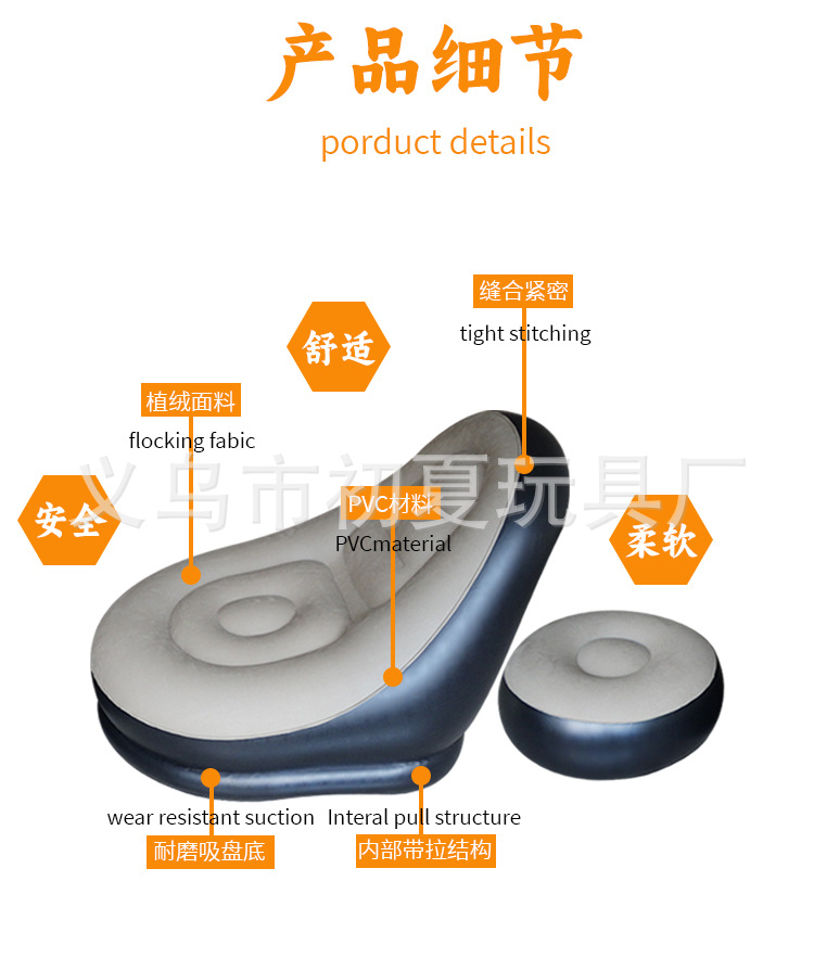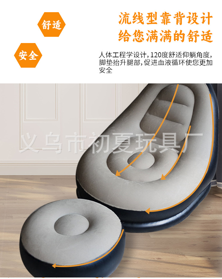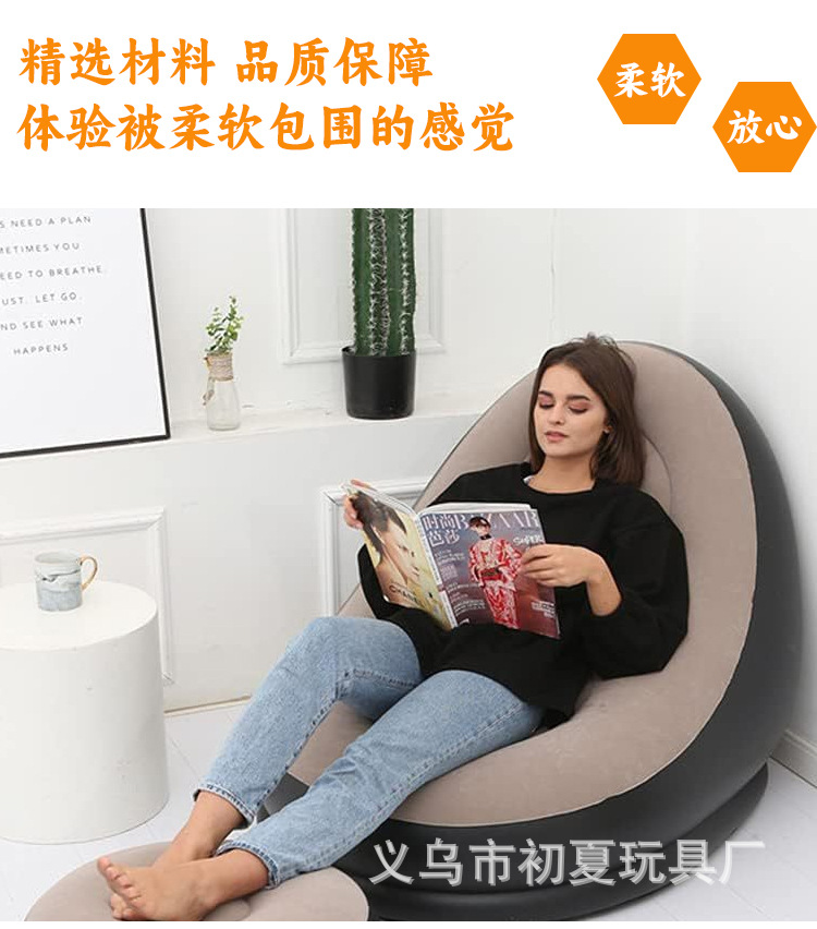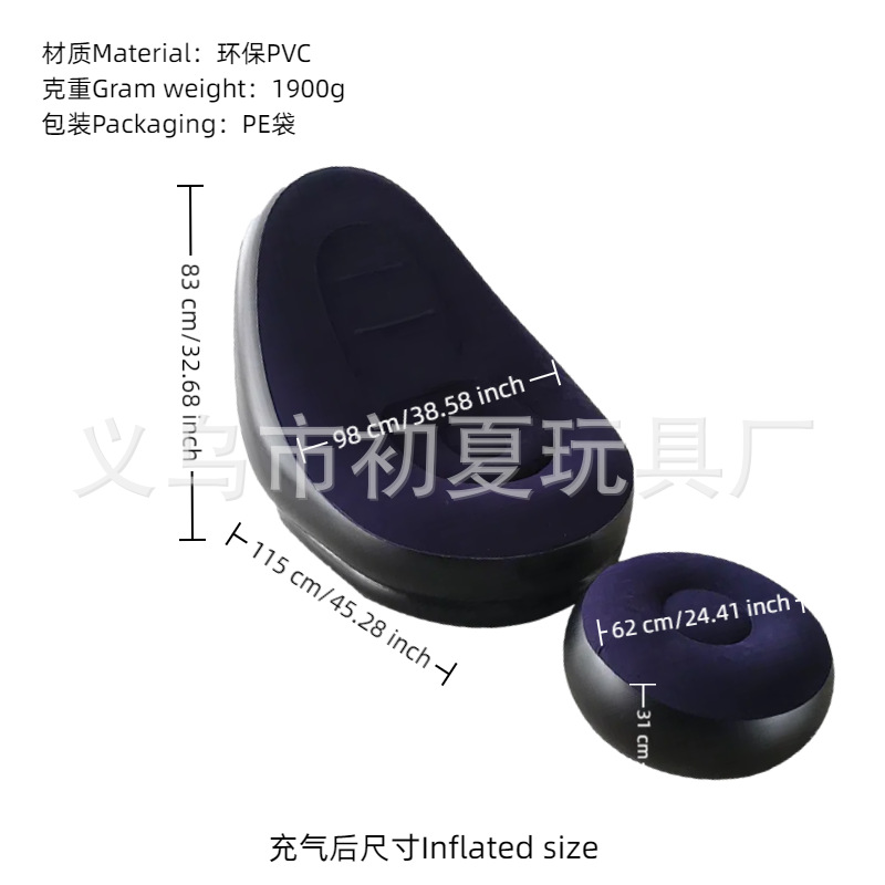 跨境货源充气沙发植绒PVC可折叠居家户外座椅带脚凳便携