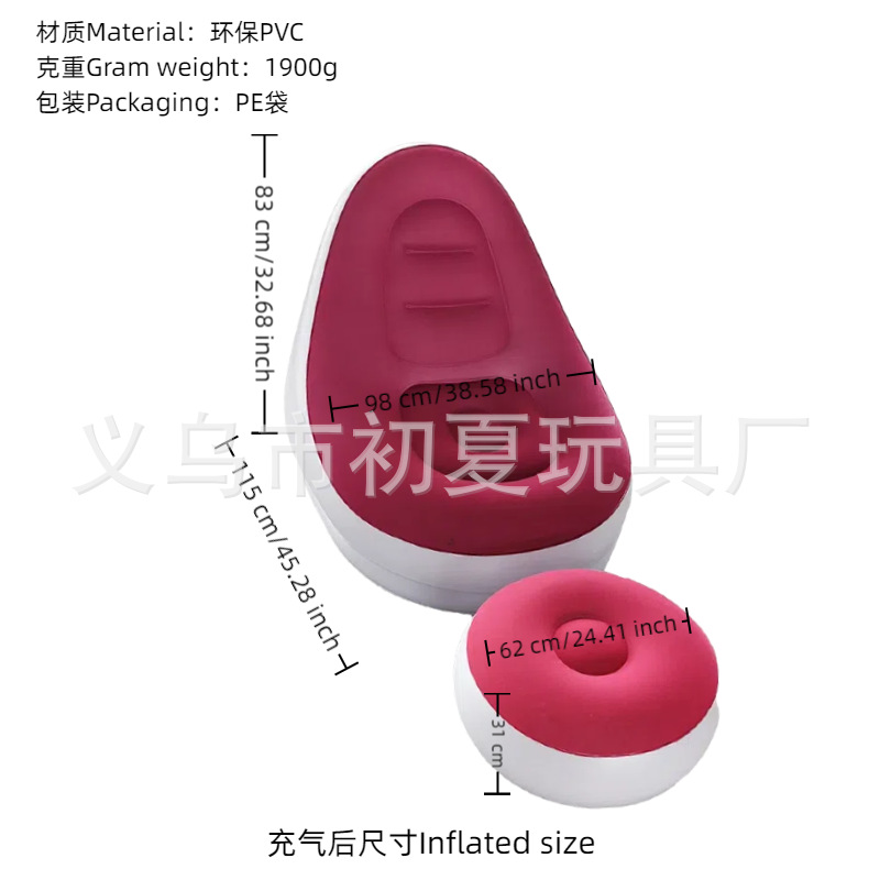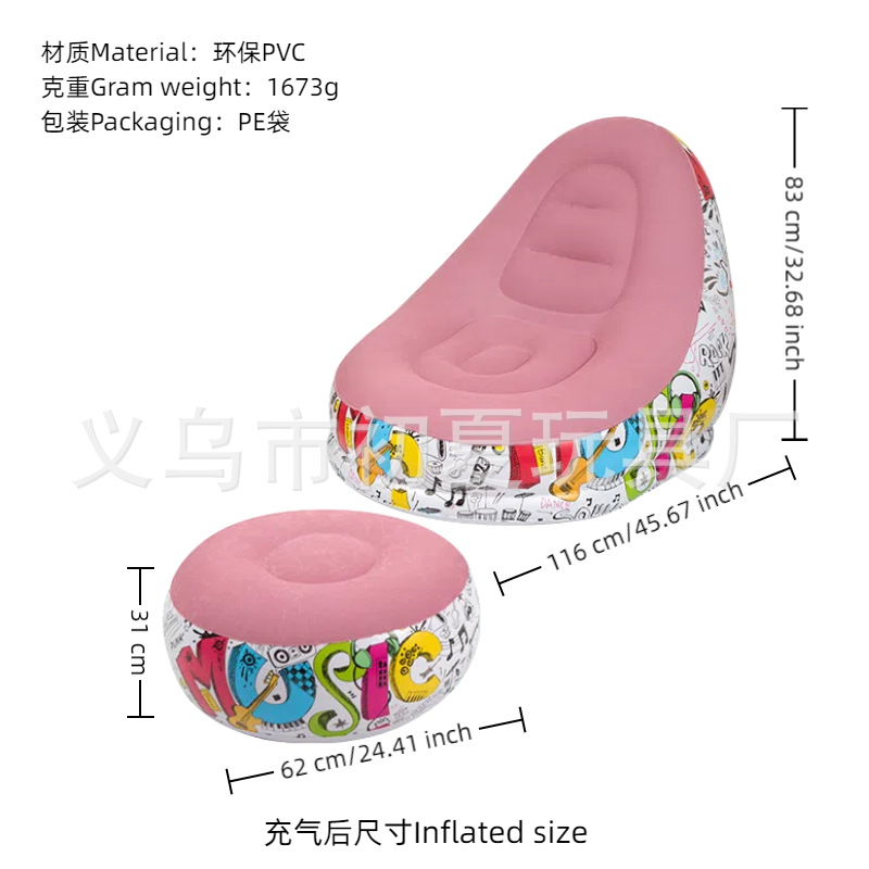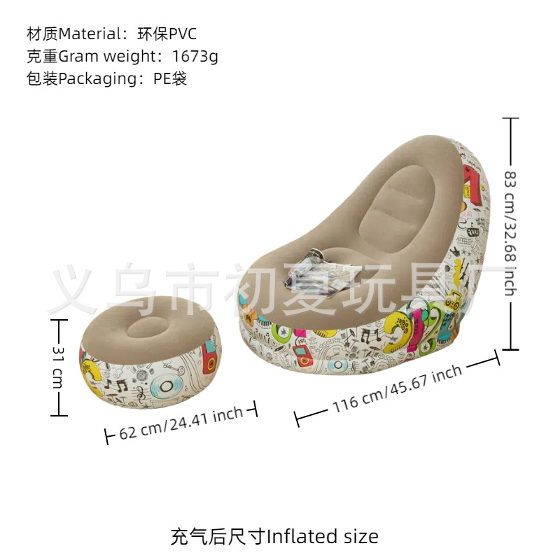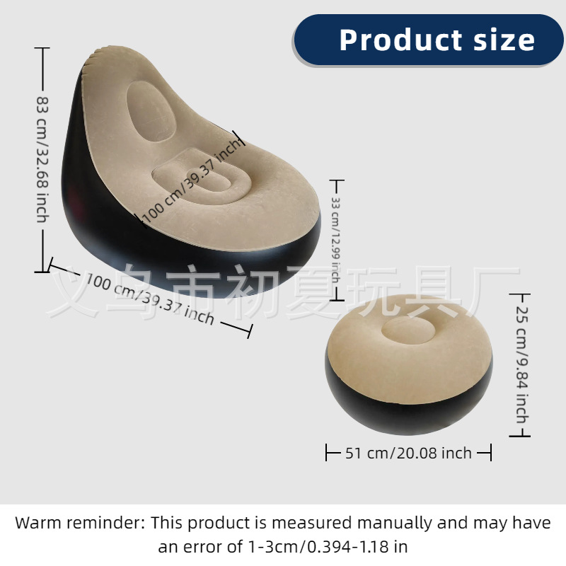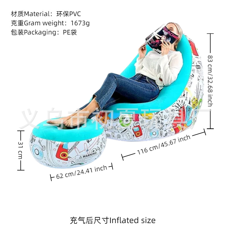 跨境货源充气沙发植绒PVC可折叠居家户外座椅带脚凳便携