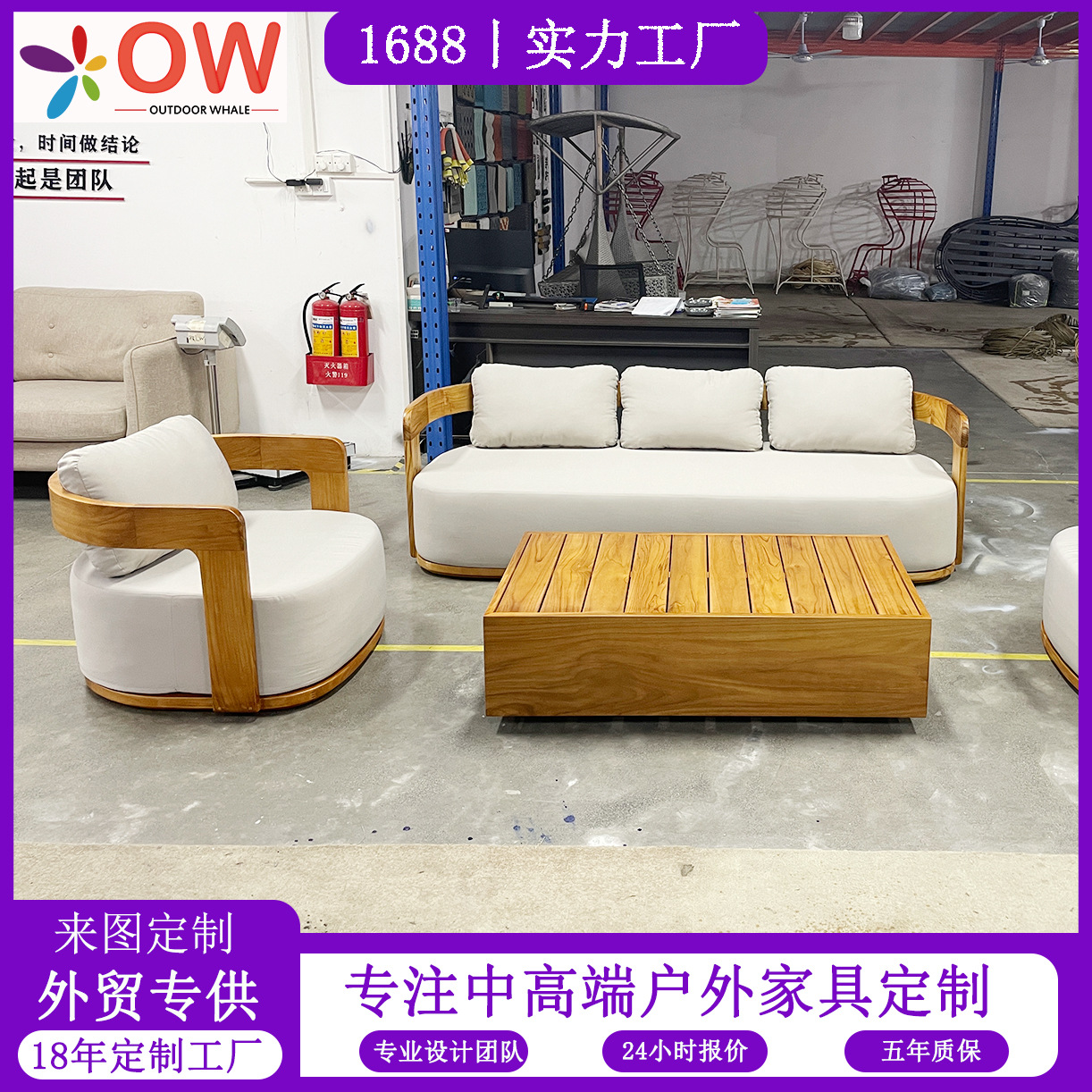 跨境北欧酒店户外沙发露天庭院户外家具防腐木别墅户外柚木沙发