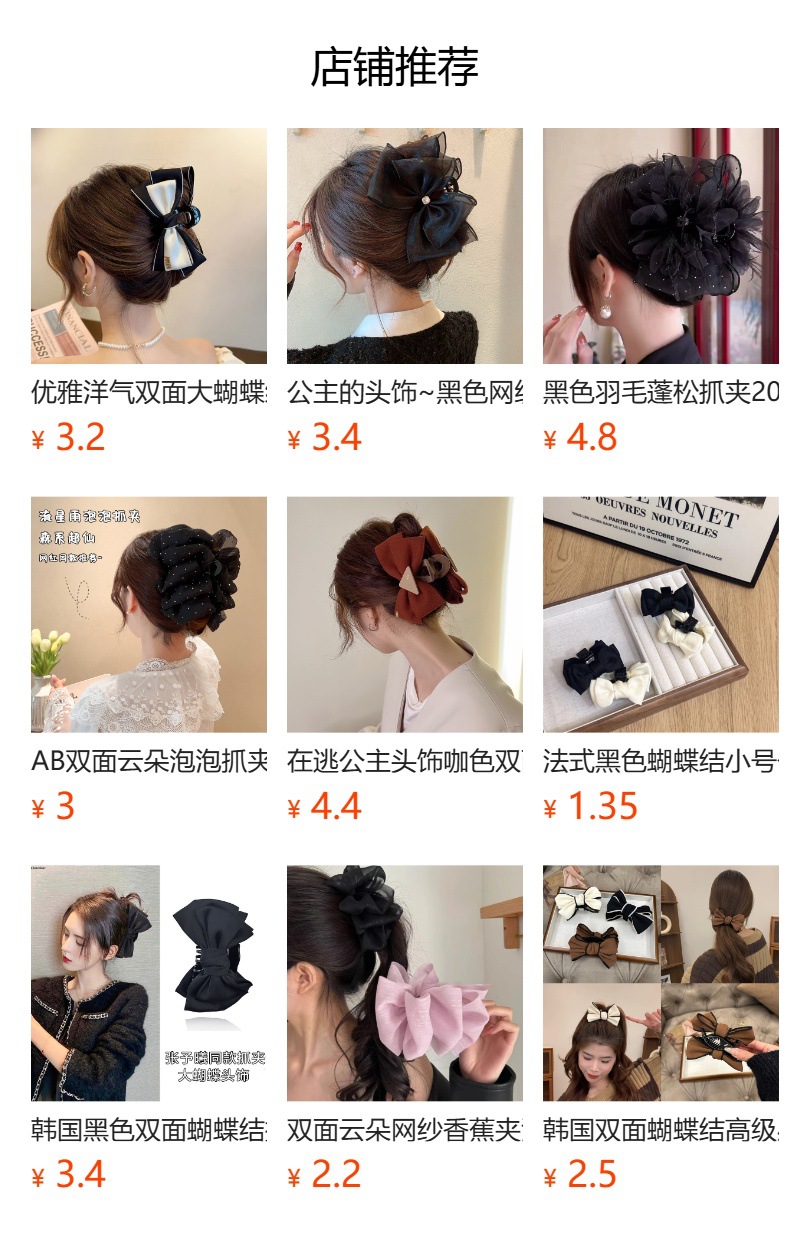 赫本风黑色蝴蝶结抓夹女大号高级感盘发网红发夹后脑勺鲨鱼夹头饰