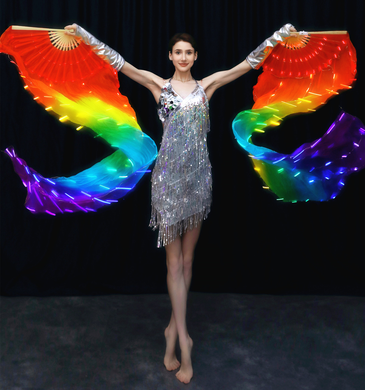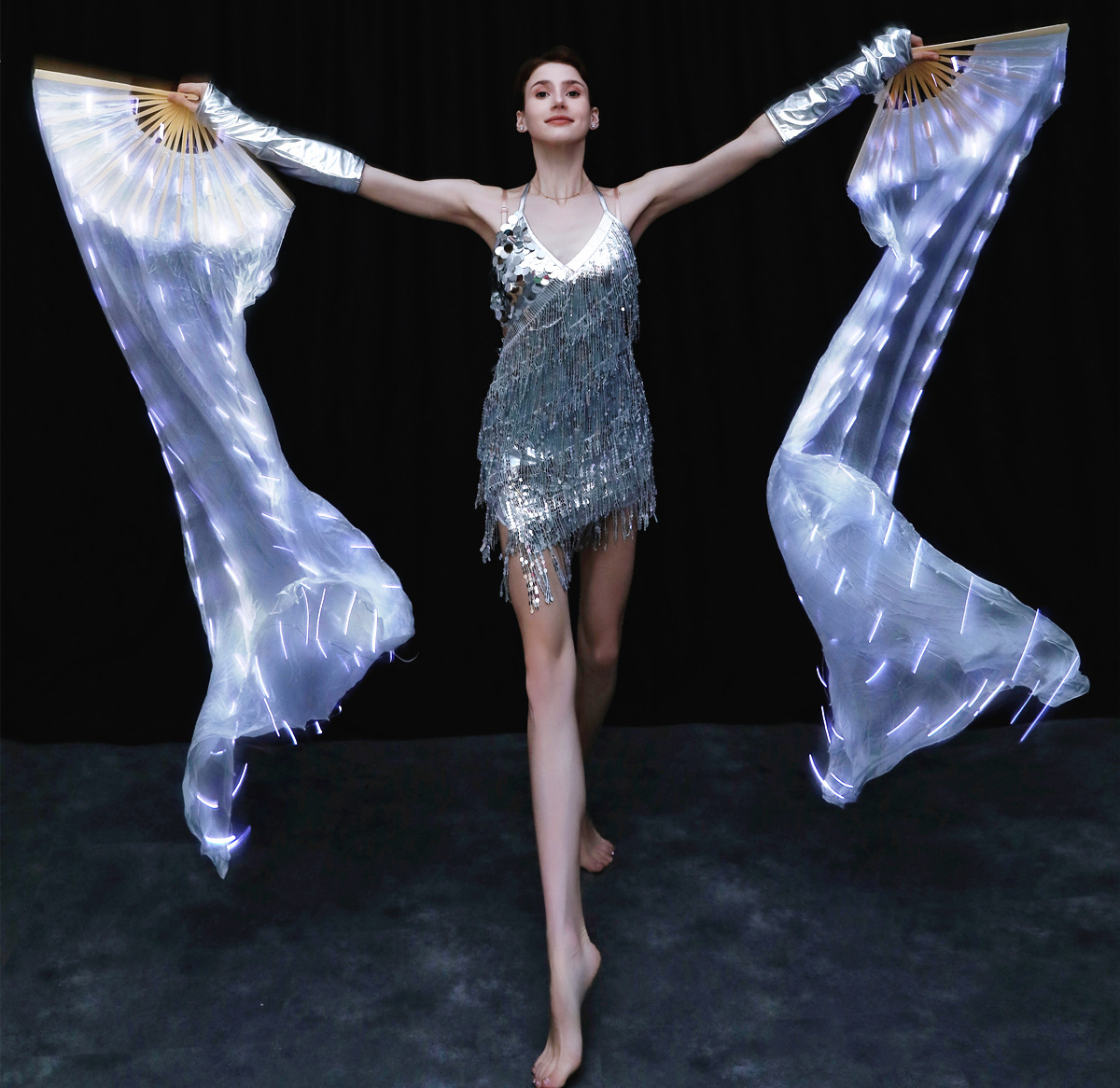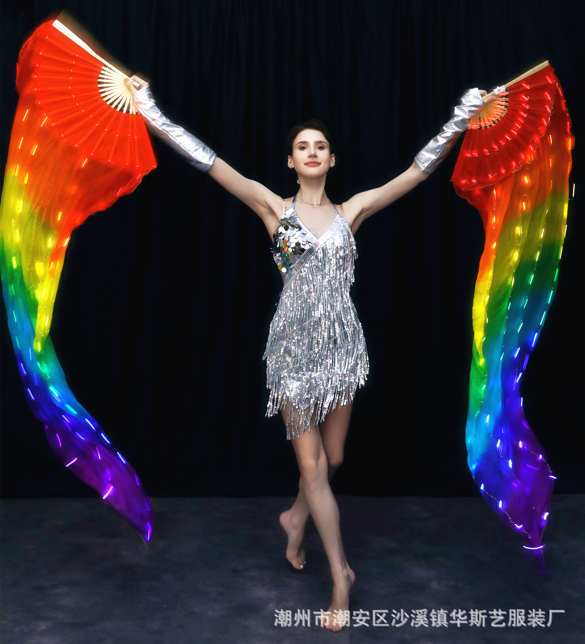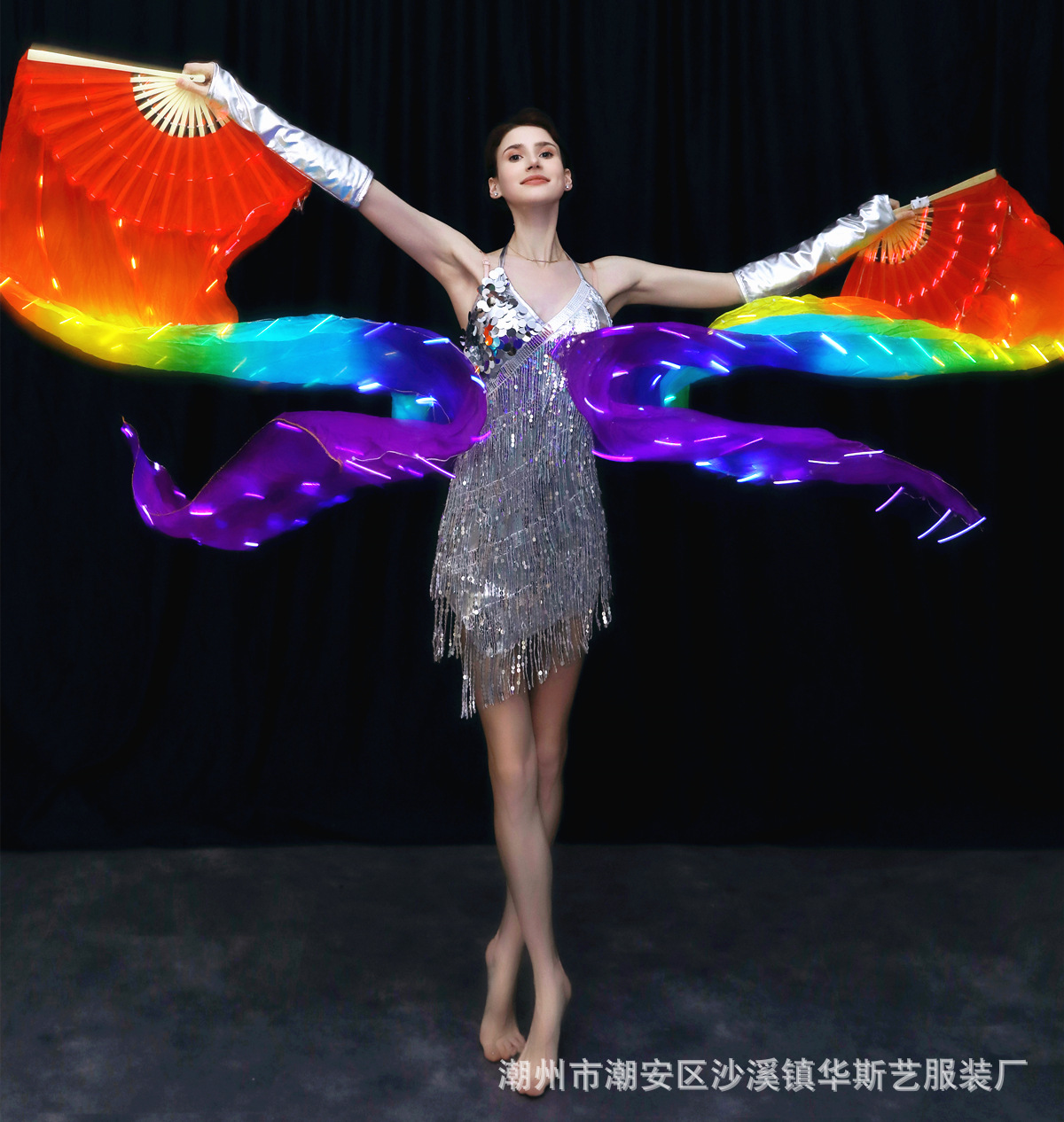 嘉年华LED丝绸丝绸扇面纱肚皮扇面纱LED灯光秀肚皮舞舞台表演舞蹈