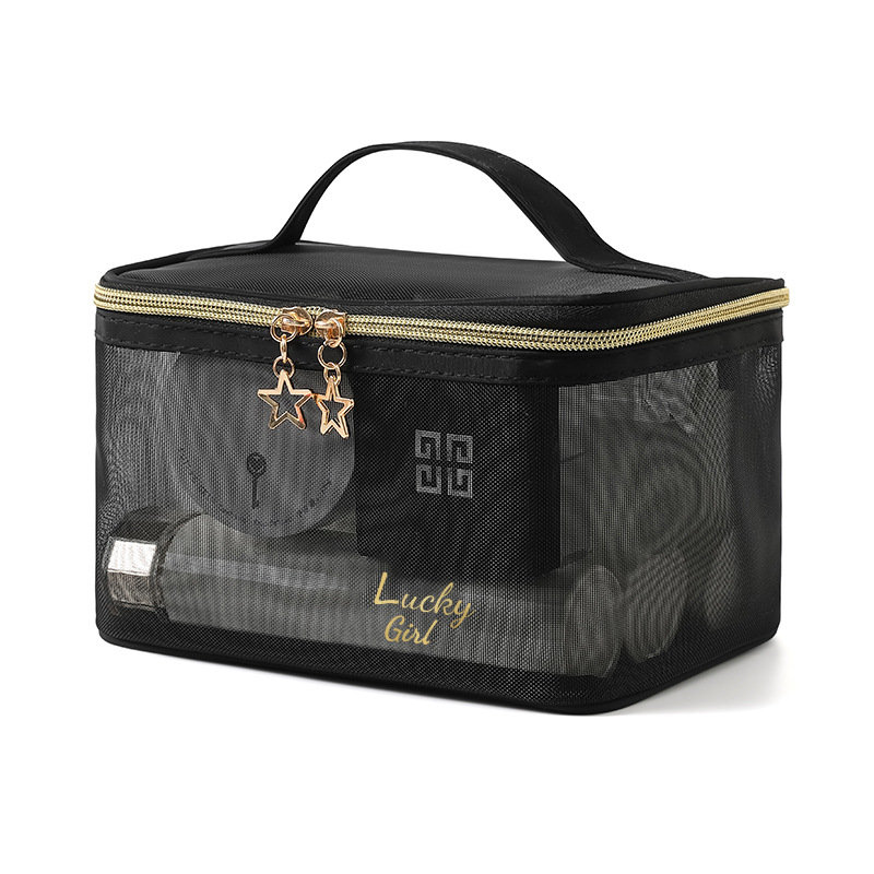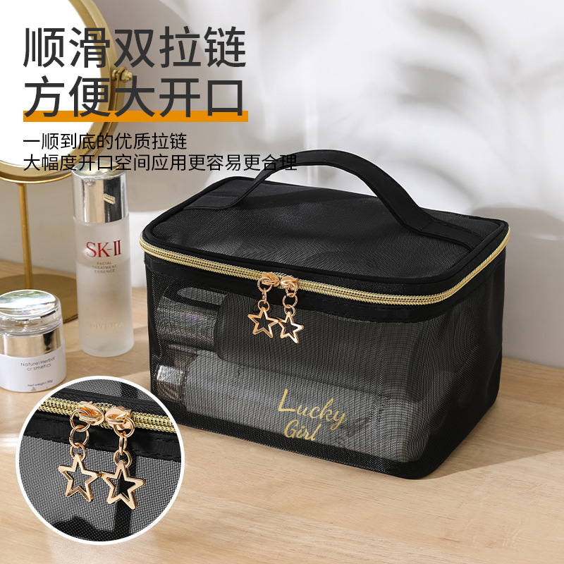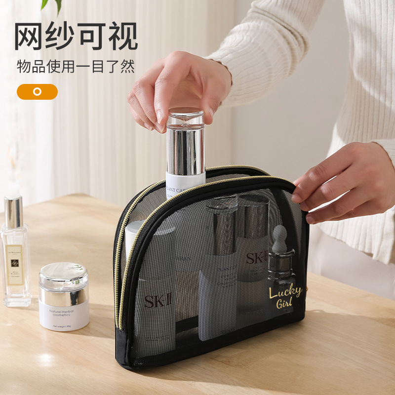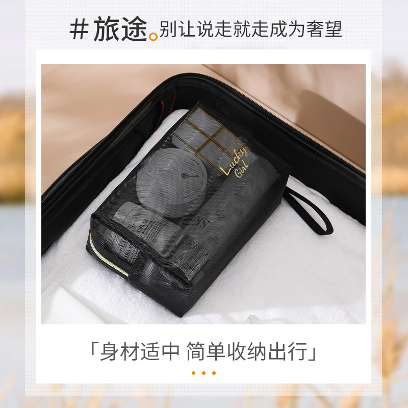 新款透明尼龙网纱化妆包女士旅行化妆品收纳简约洗漱包批发印LOGO