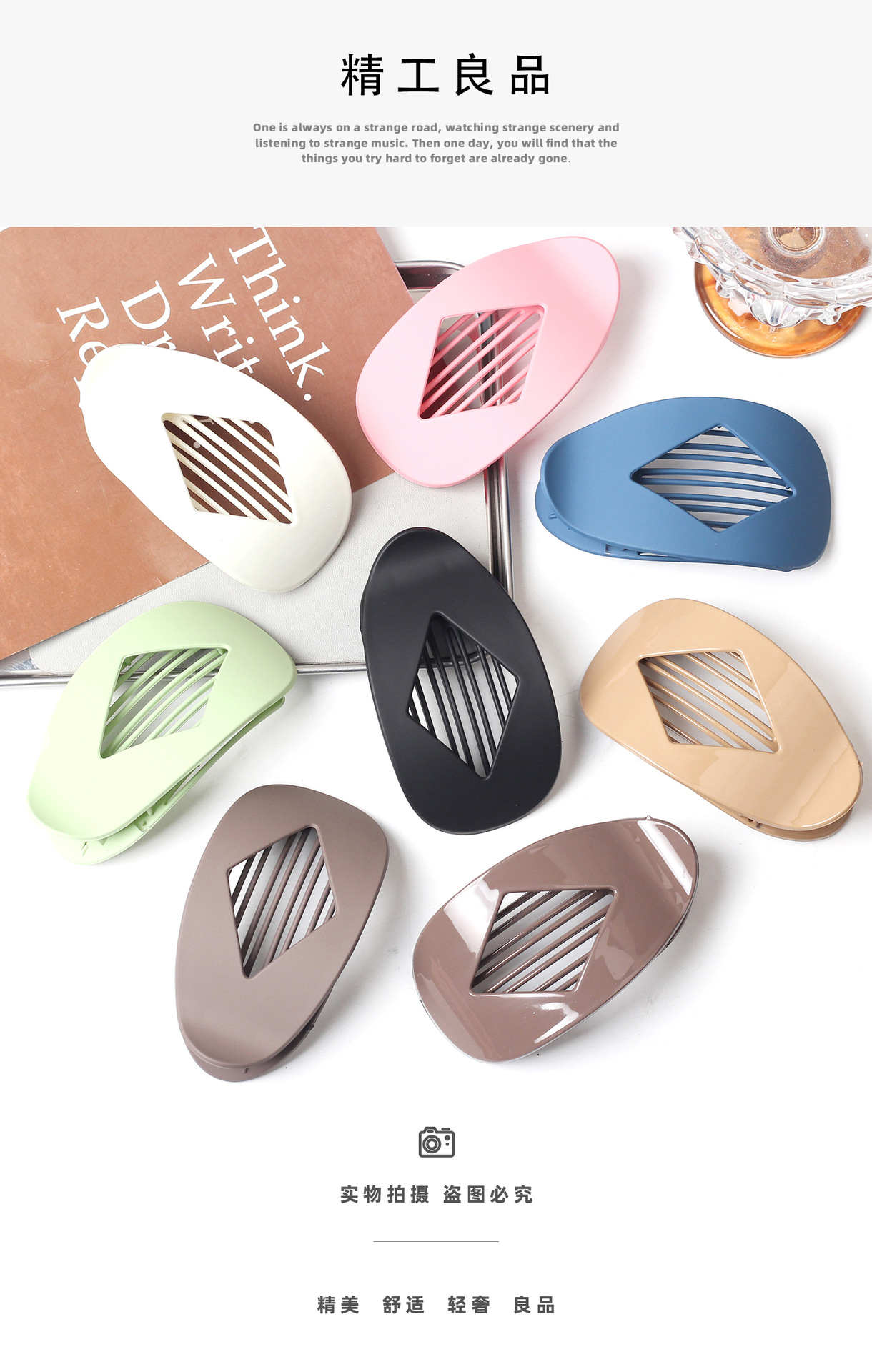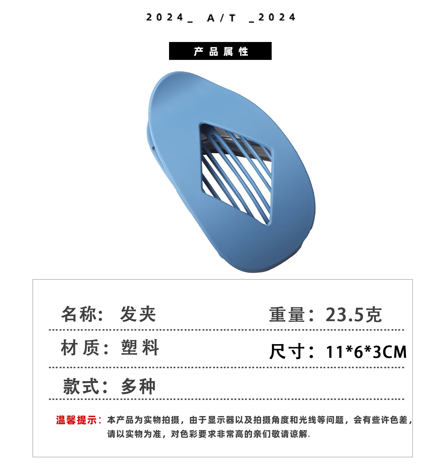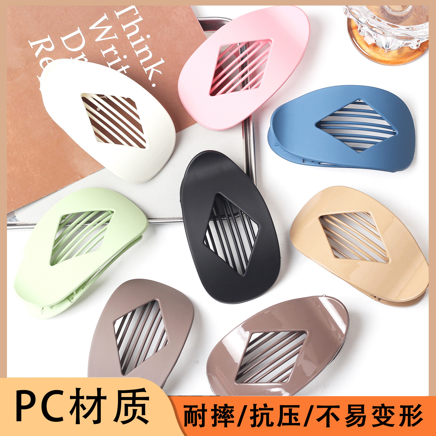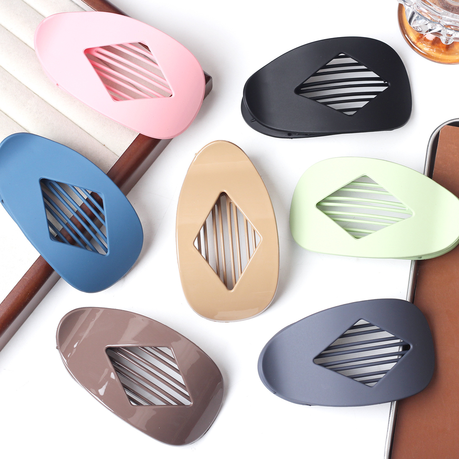 PC爆款跨境亚马逊热销扁平椭圆形发夹抓夹抓力强后脑勺盘发简批