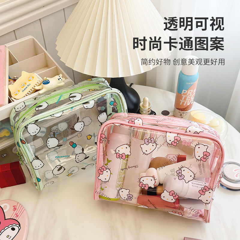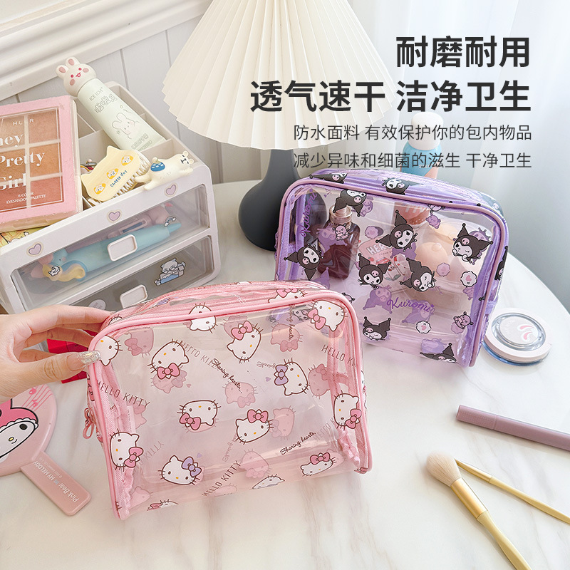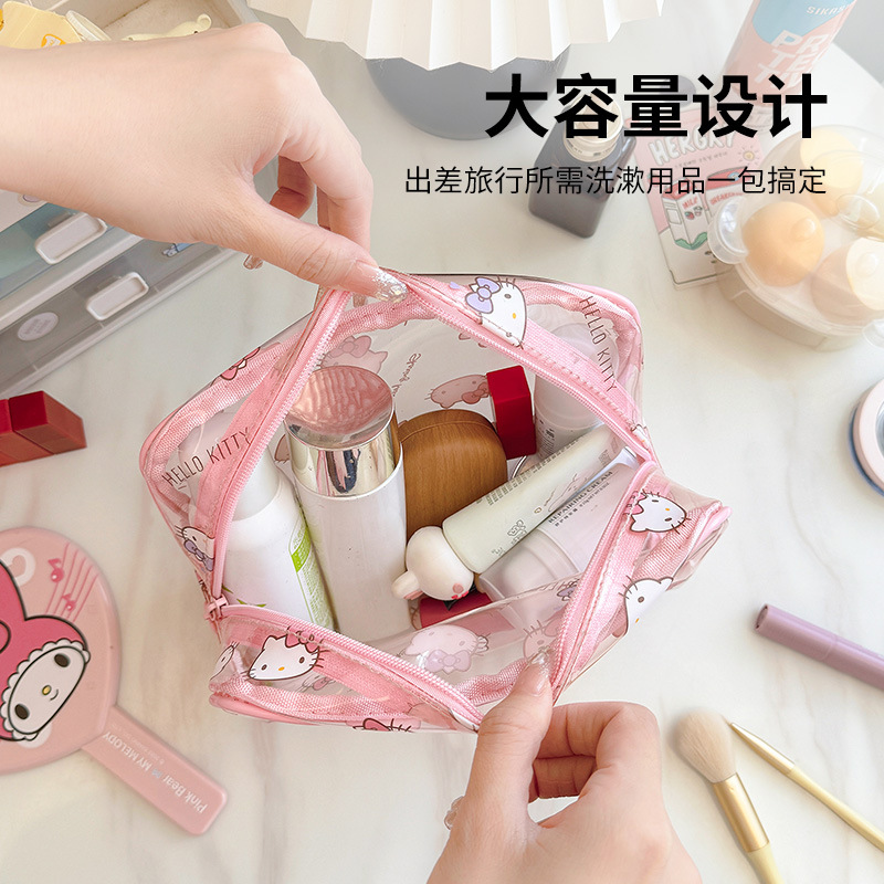 爆款三丽鸥卡通透明化妆包大容量高颜值库洛米可爱便携旅行收纳包