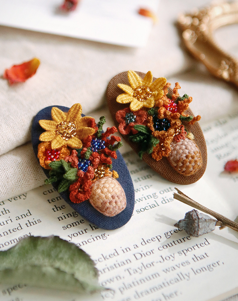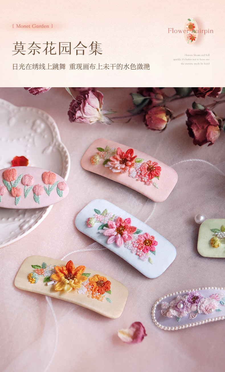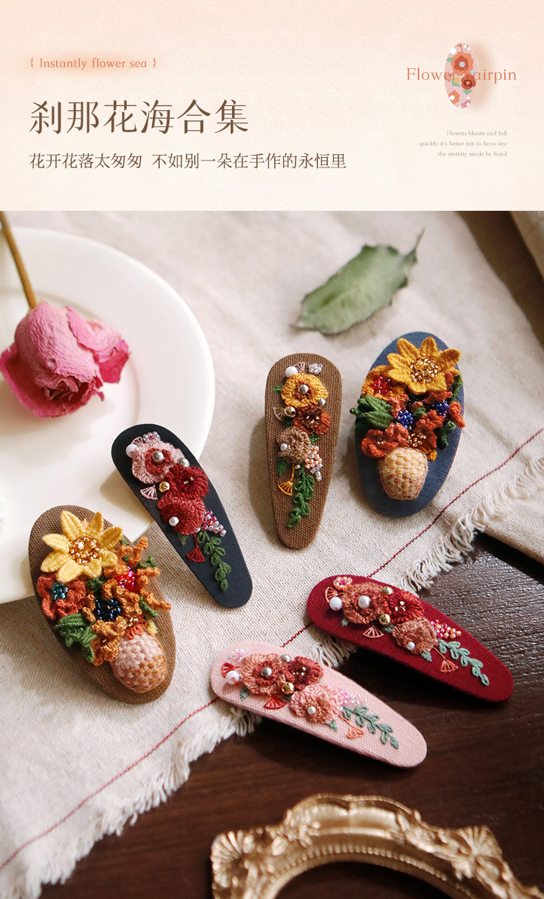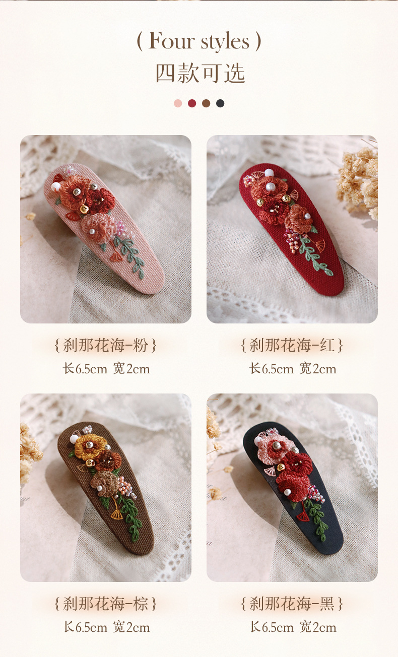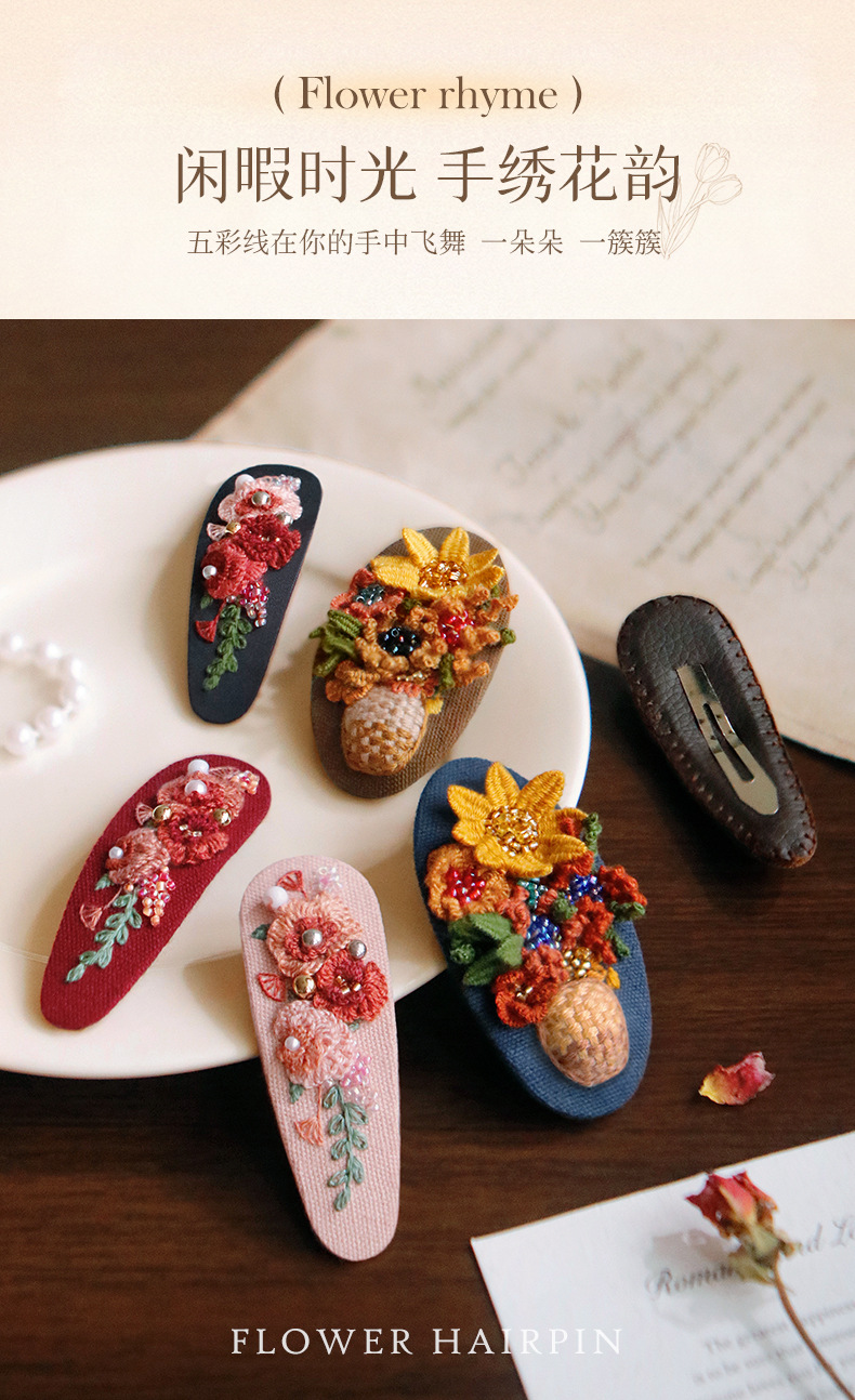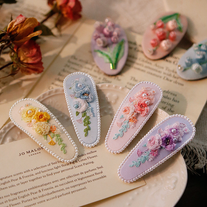 刺绣花针发夹diy材料包手工碎发卡水滴BB鸭嘴夹法绣礼物