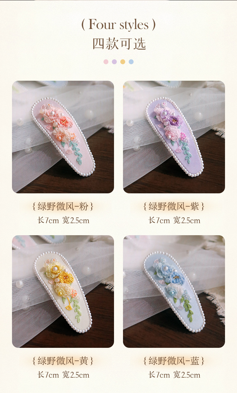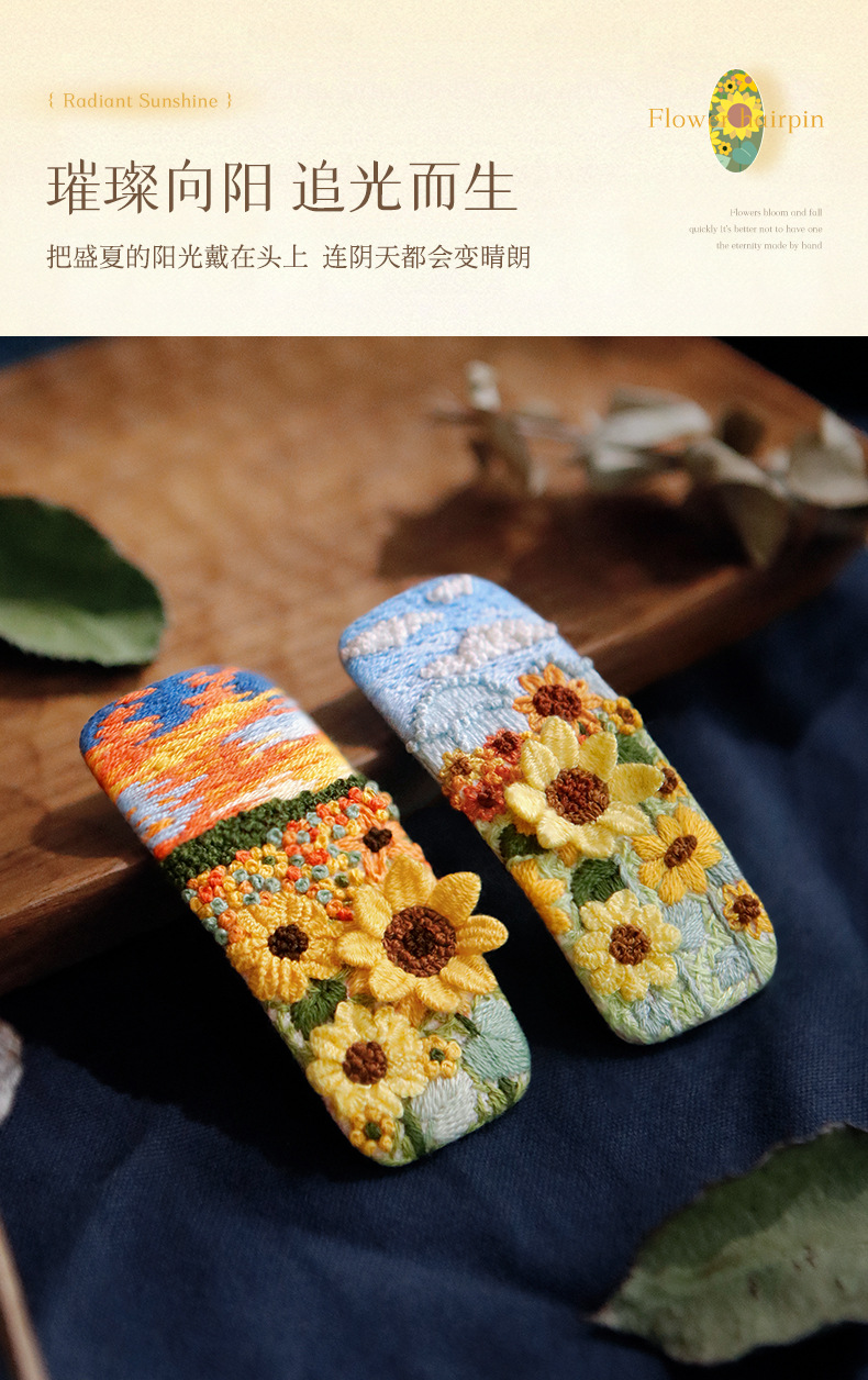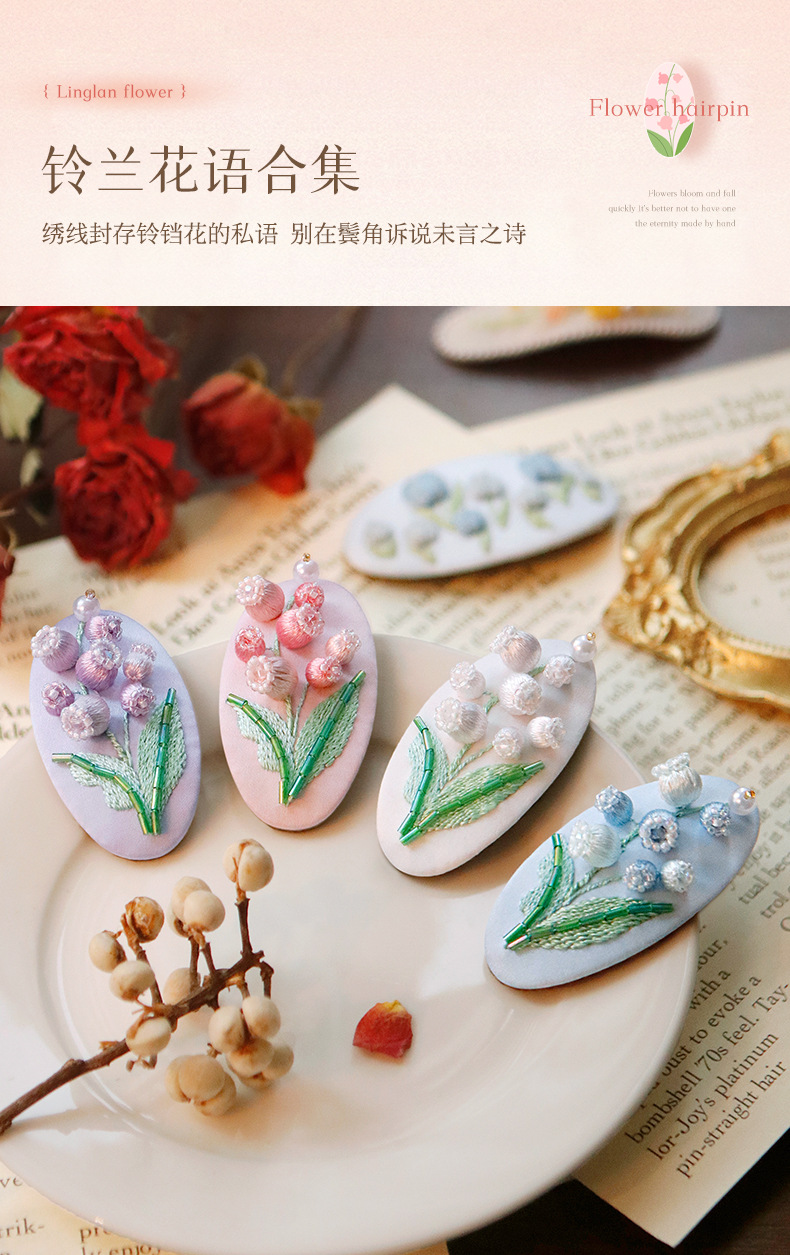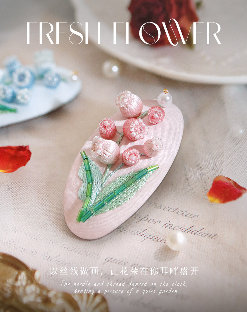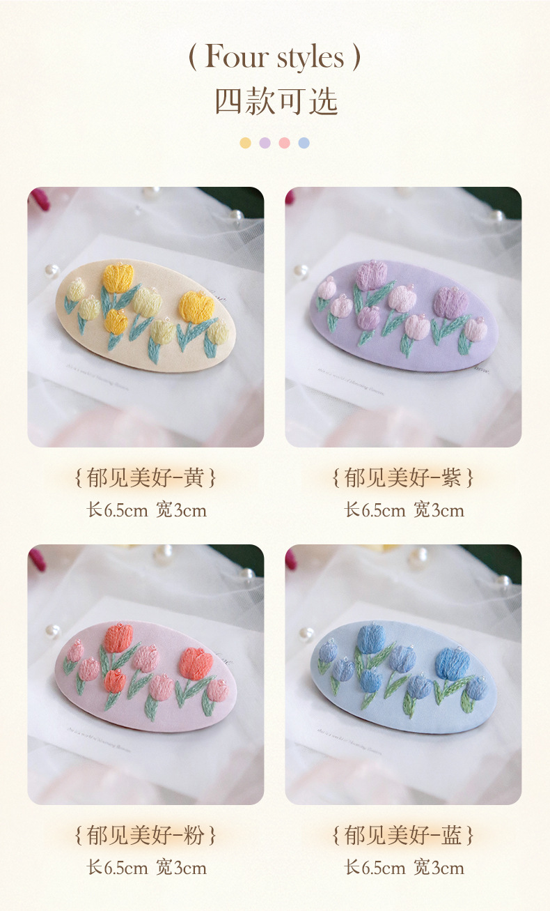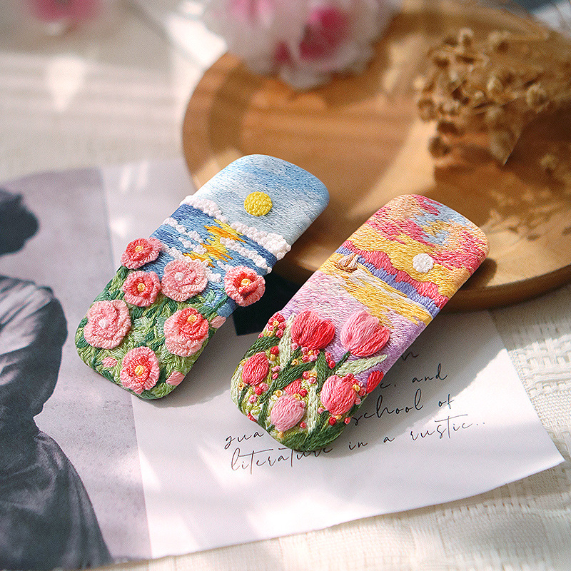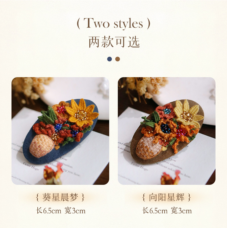 刺绣花针发夹diy材料包手工碎发卡水滴BB鸭嘴夹法绣礼物