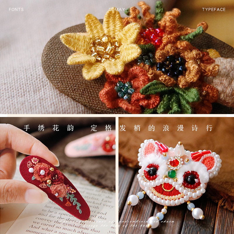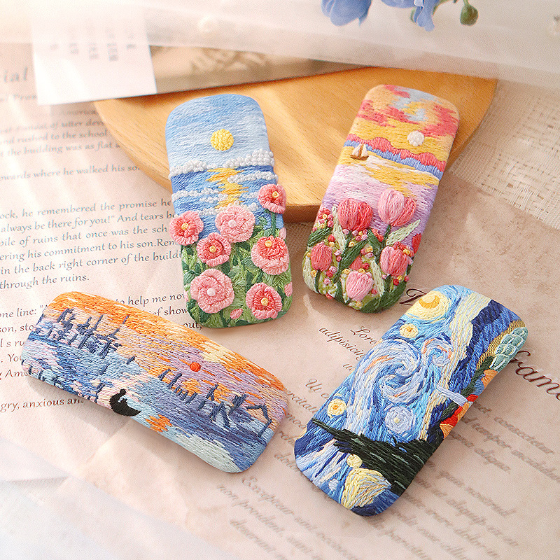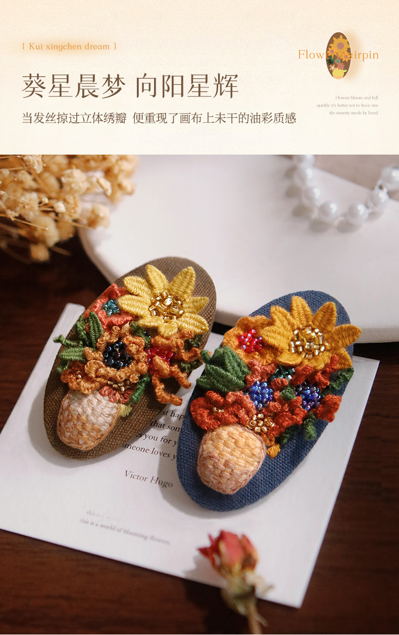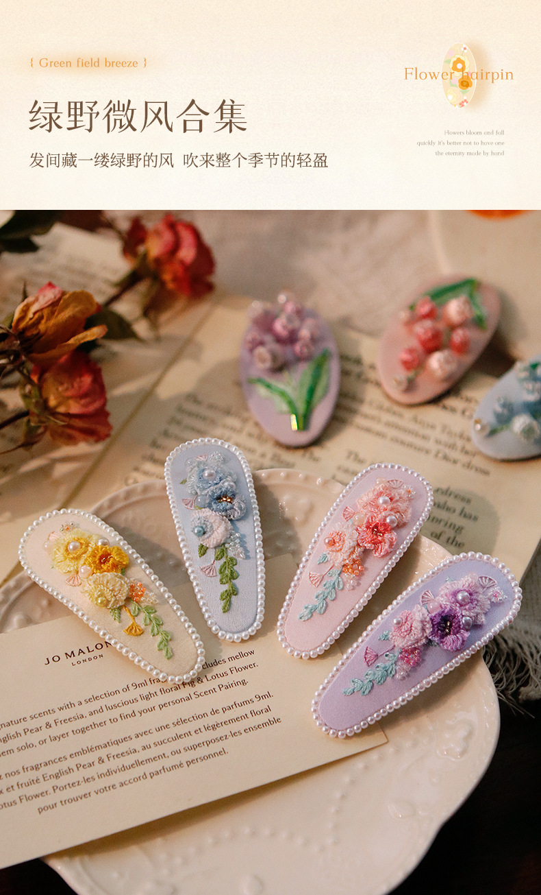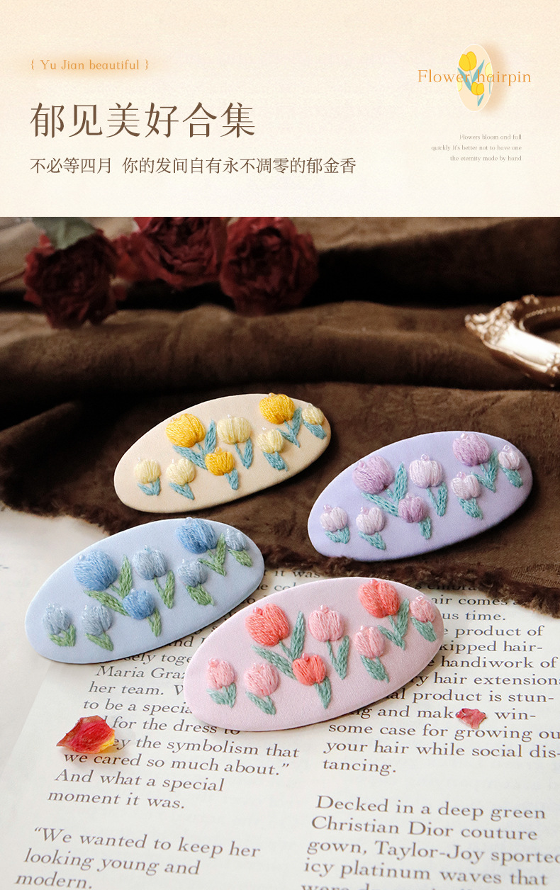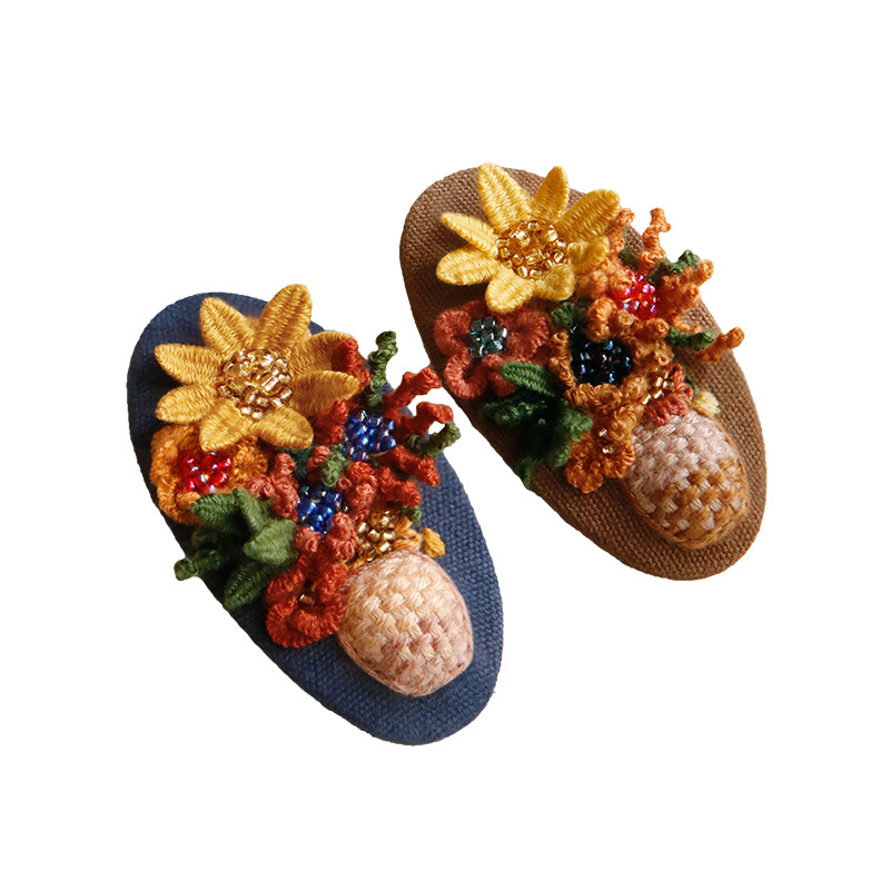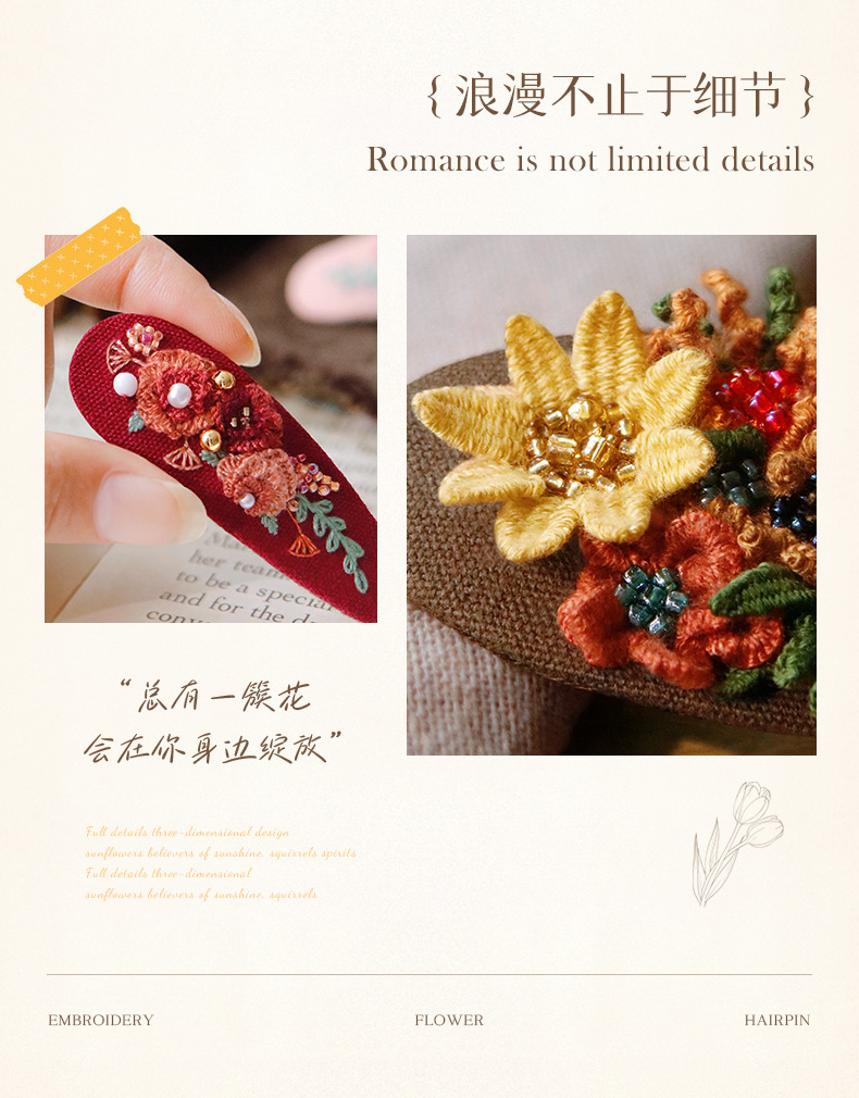 刺绣花针发夹diy材料包手工碎发卡水滴BB鸭嘴夹法绣礼物