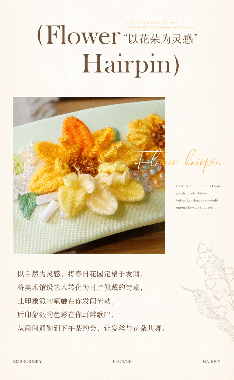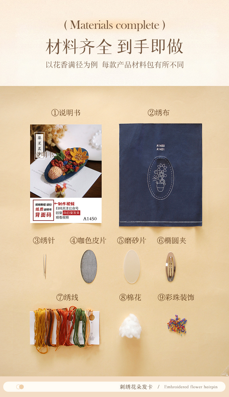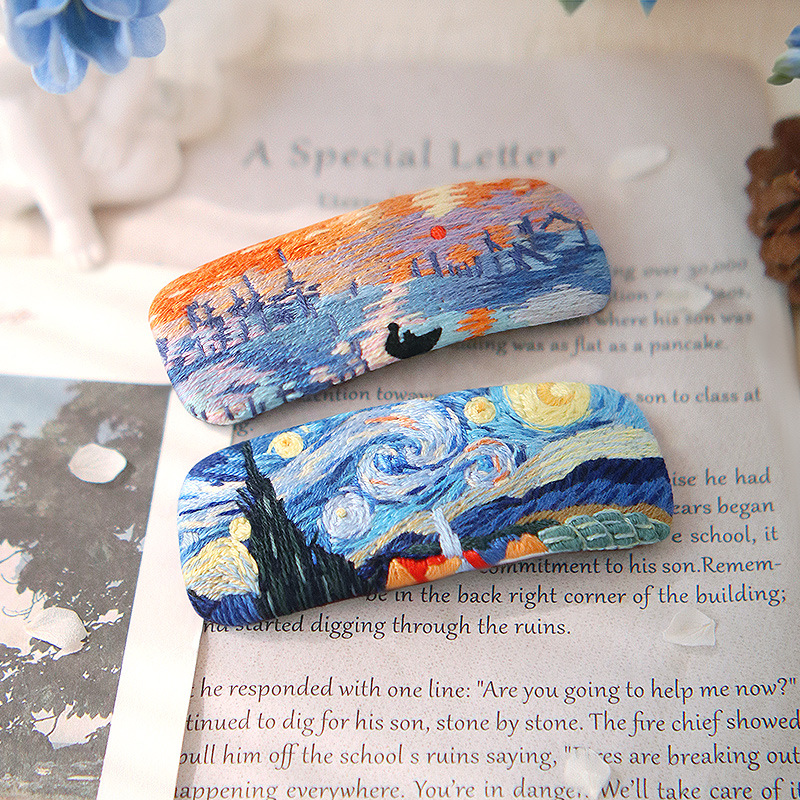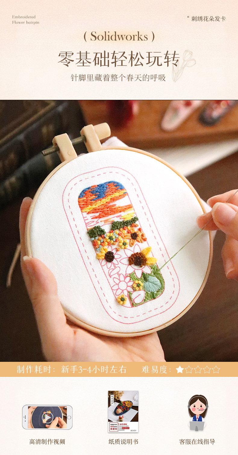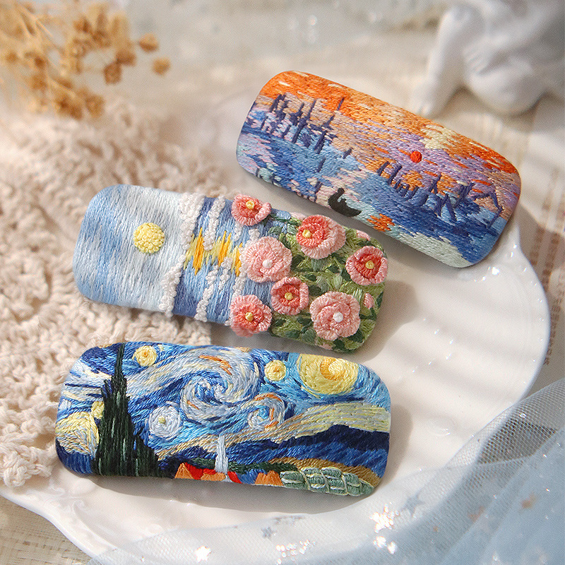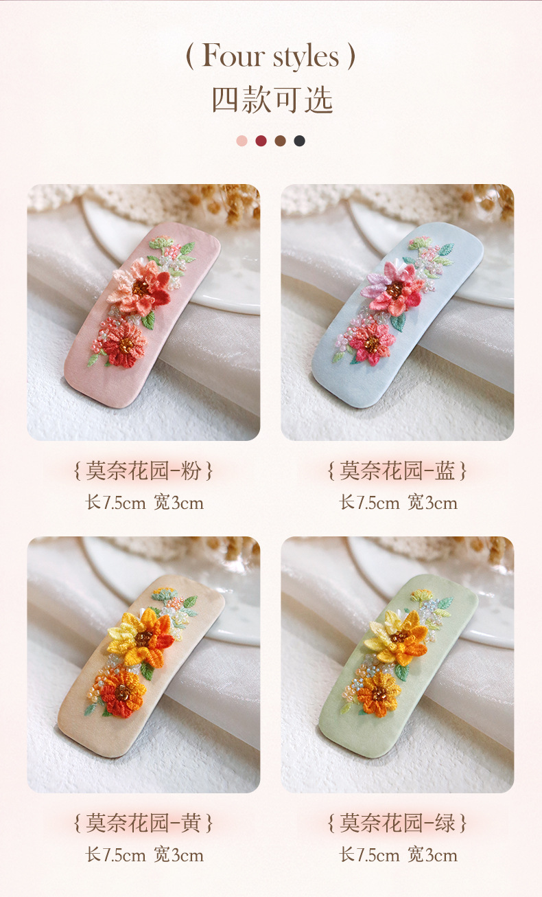 刺绣花针发夹diy材料包手工碎发卡水滴BB鸭嘴夹法绣礼物