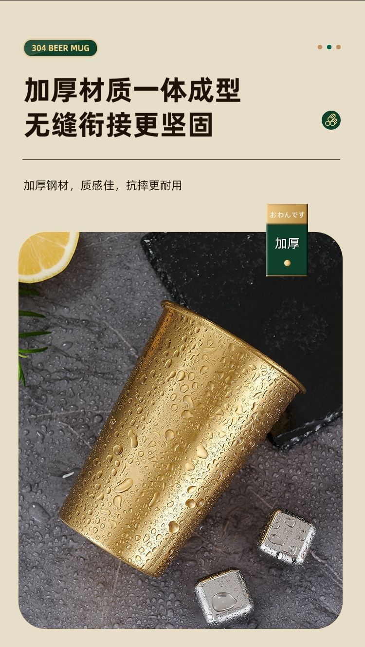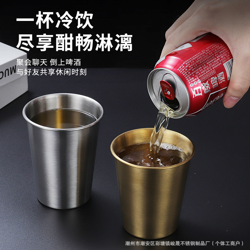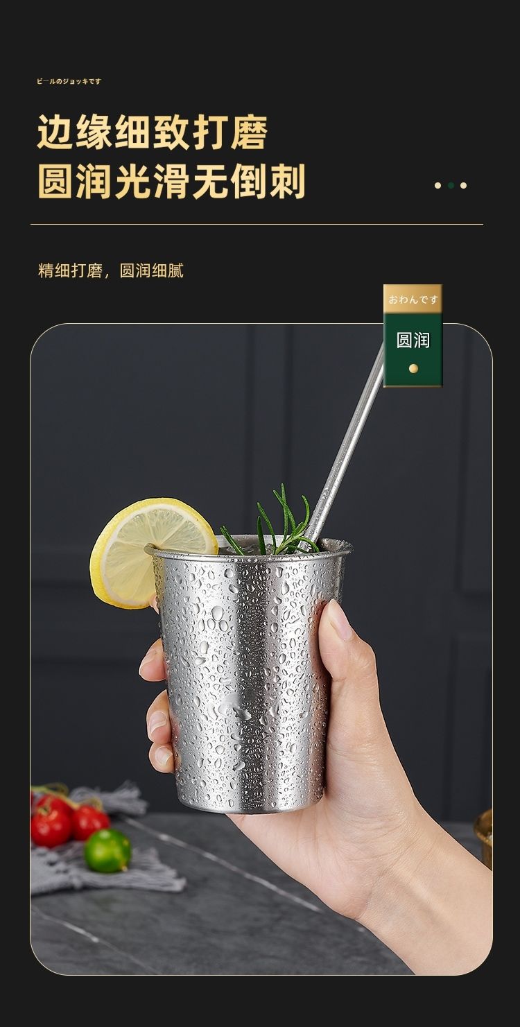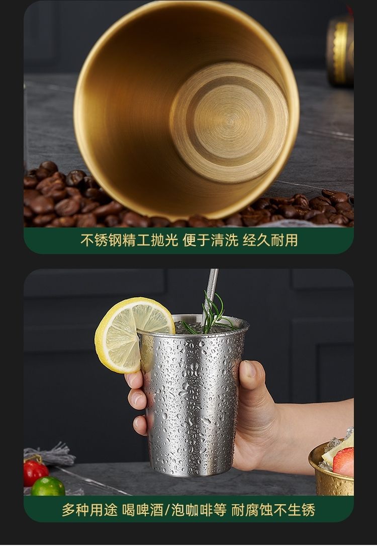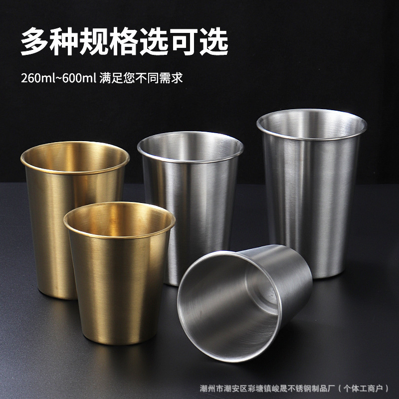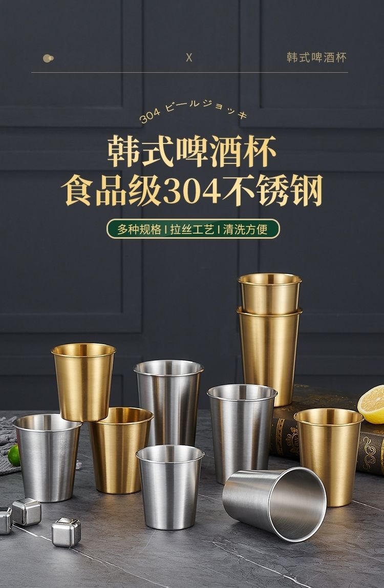 韩式304不锈钢啤酒杯果汁杯商用单层杯冷饮杯PP杯内胆定LOGO