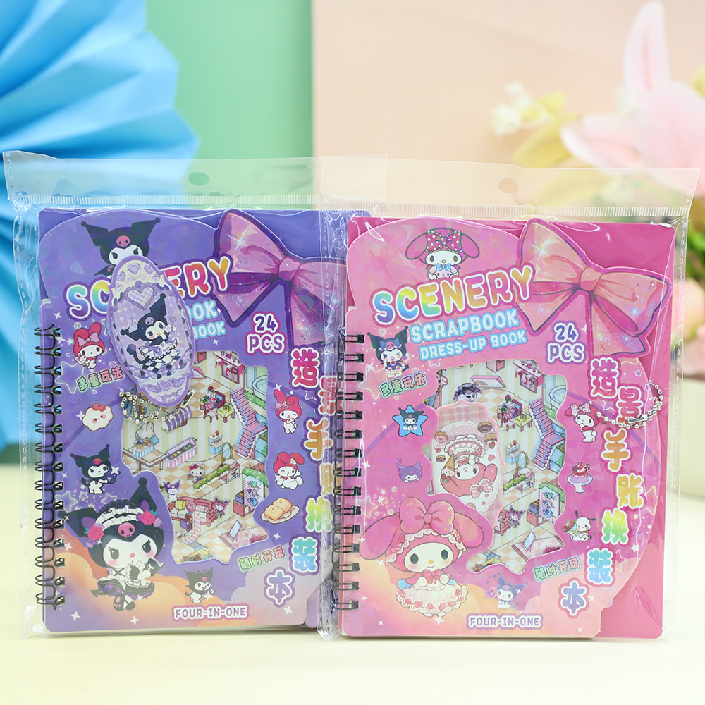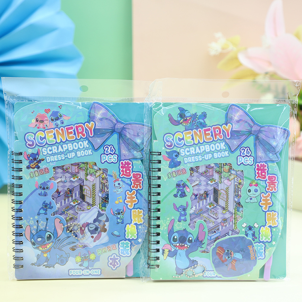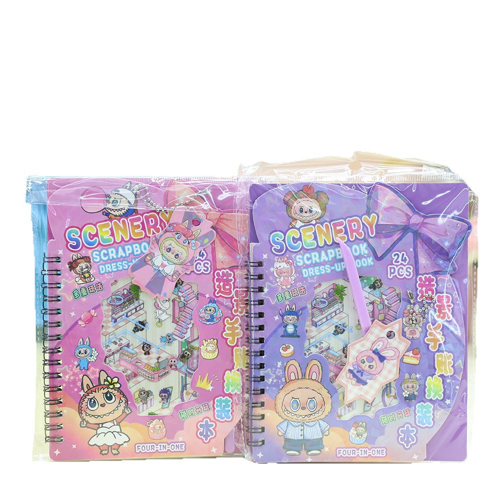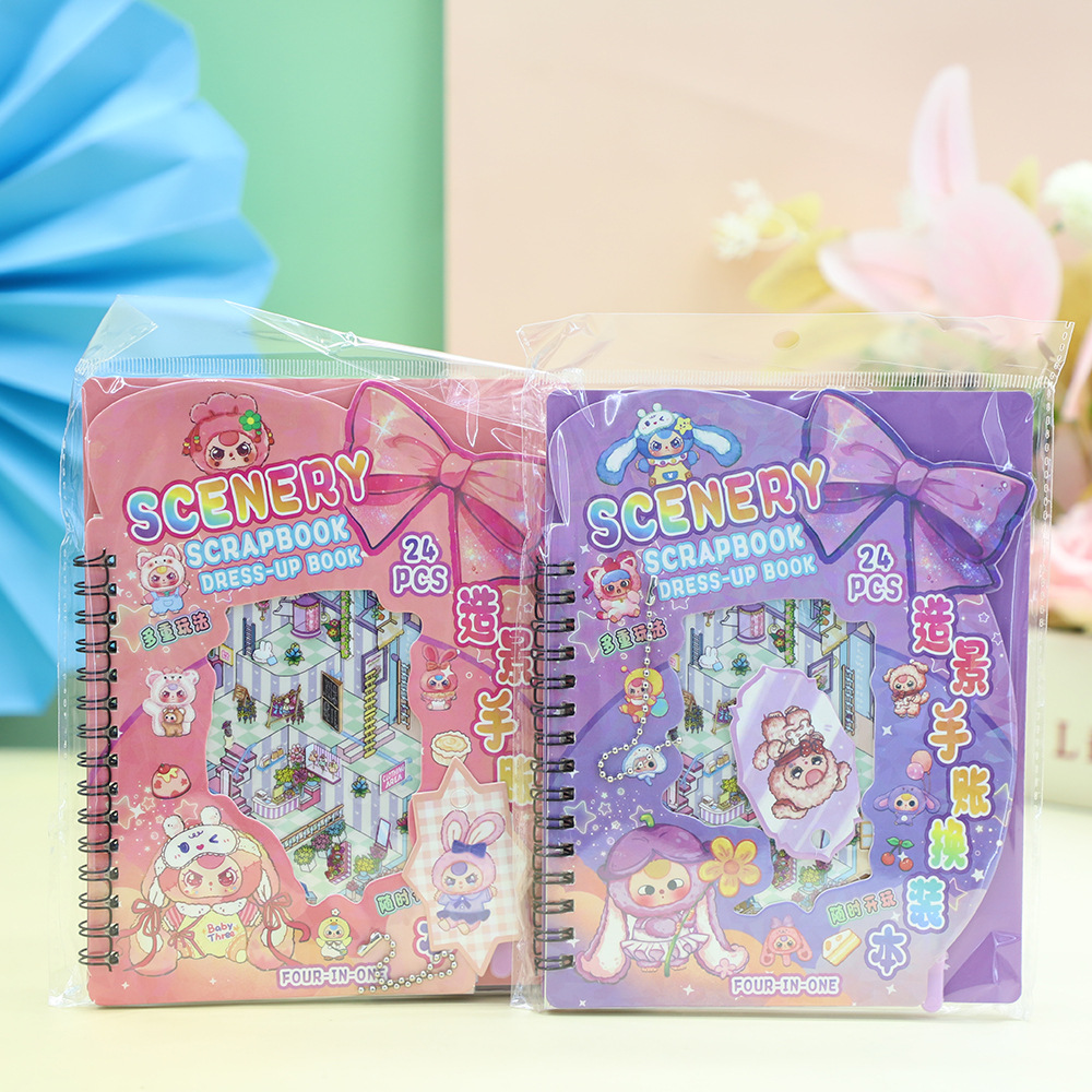 新款英文版造景手帐换装本线圈本含贴纸DIY素材贴画随身本送挂件