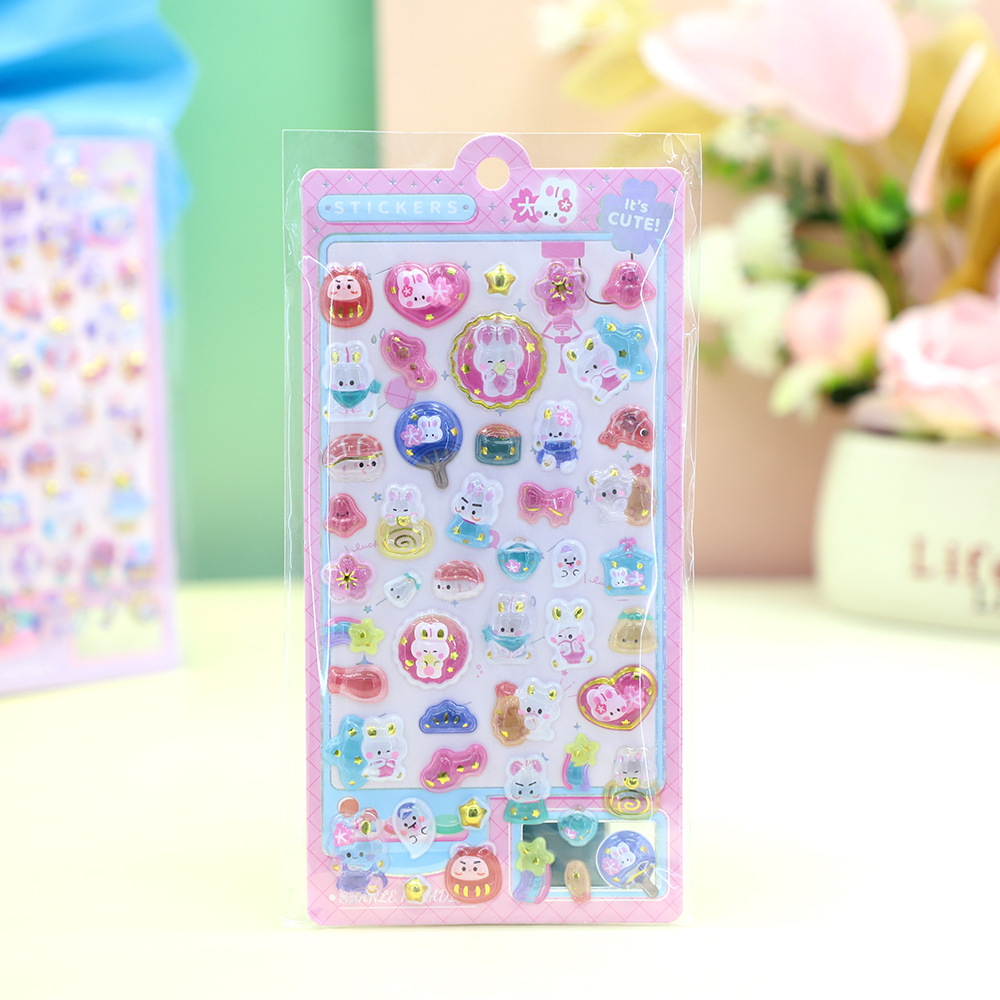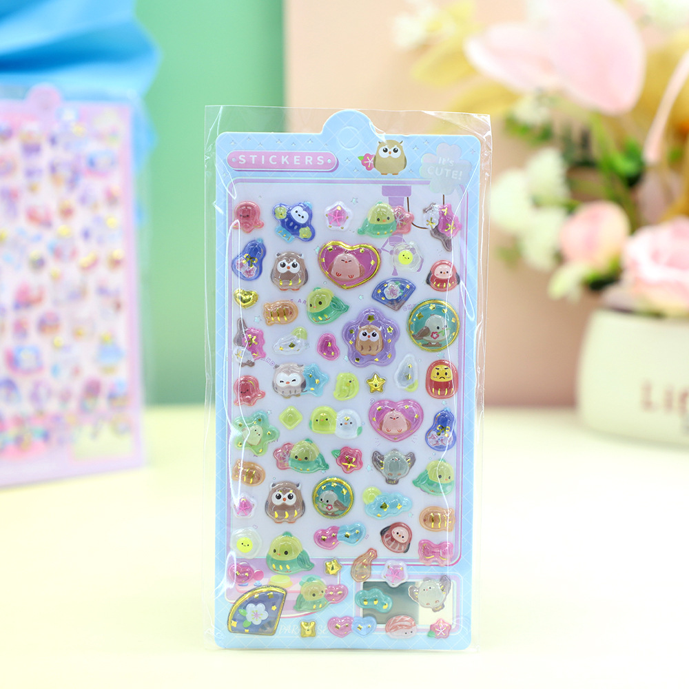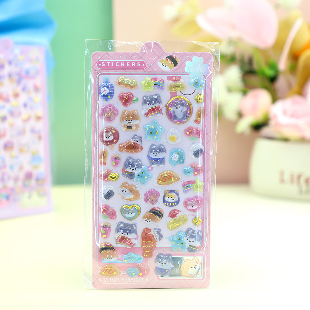 实心卡通立体浮雕趣味贴纸水晶钻石儿童装饰贴画女孩滴胶可爱贴