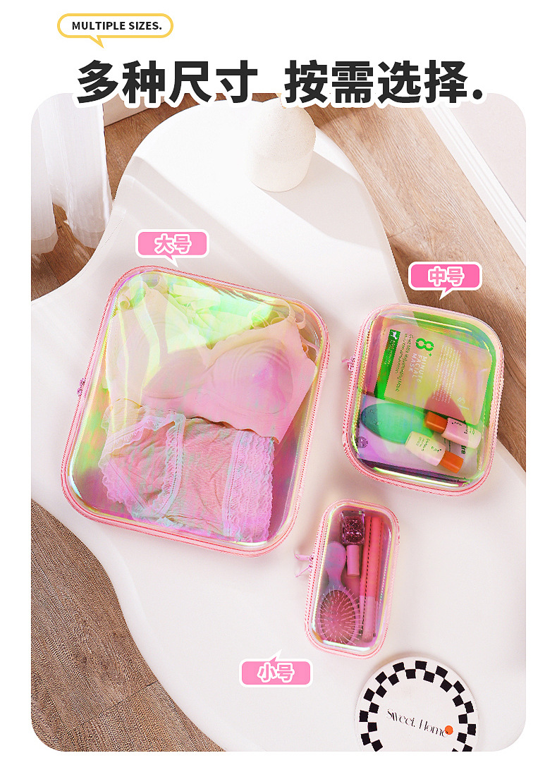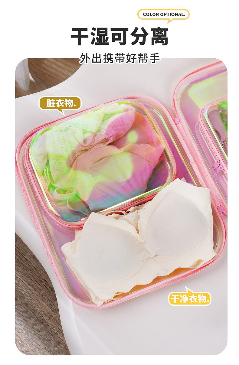 跨境炫彩收纳袋户外旅行衣物干湿储物收纳盒化妆品分装拉链收纳包