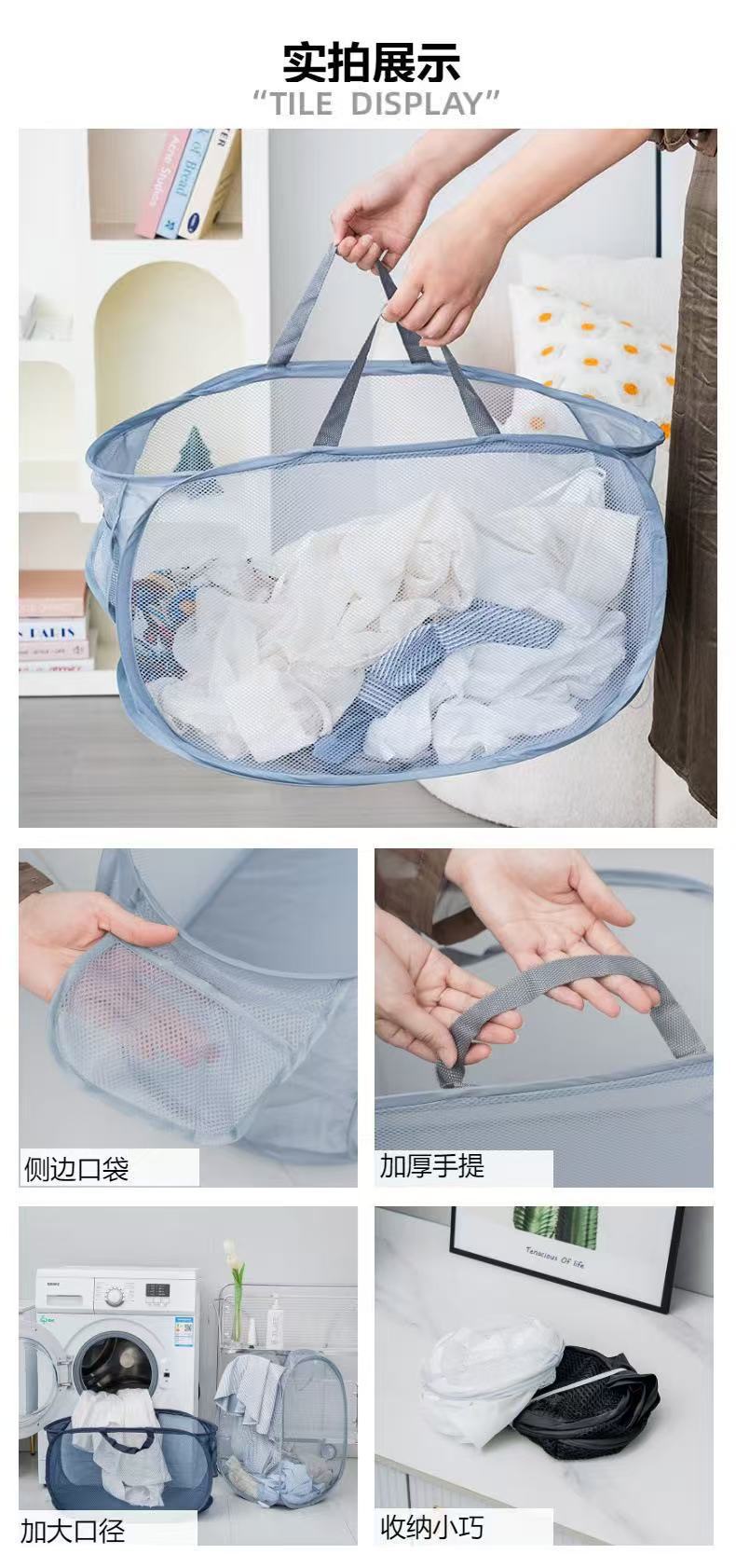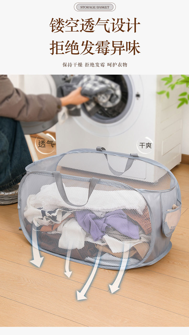 家用可折叠脏衣篮手提式省空间多功能收纳筐便携式网格镂空洗衣篮
