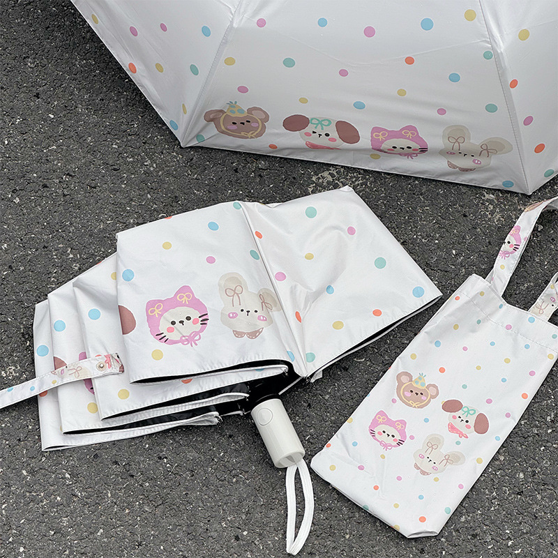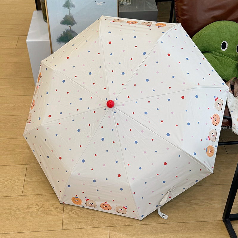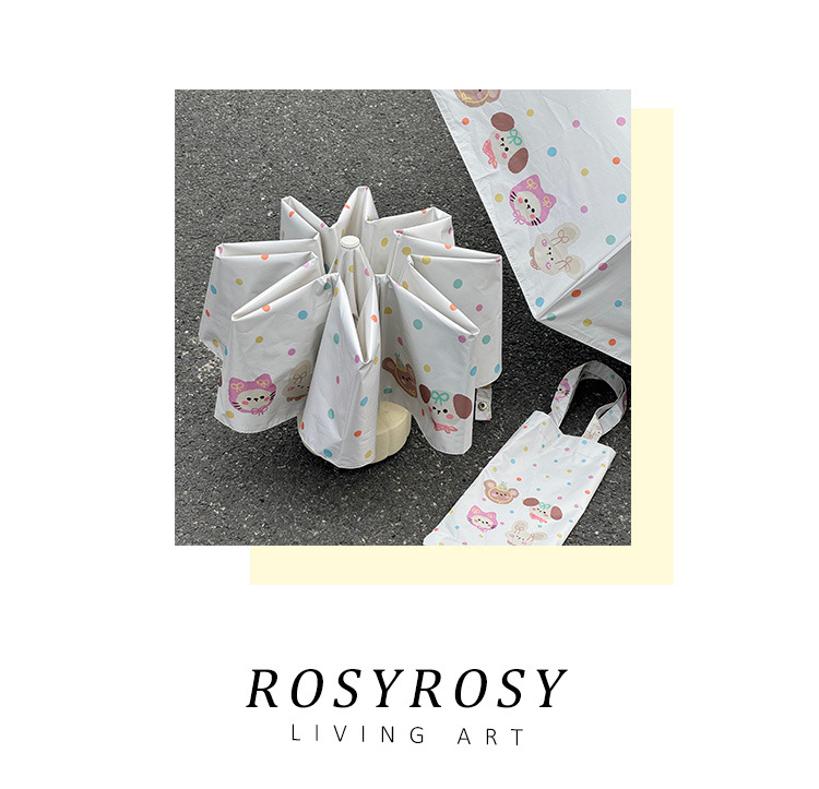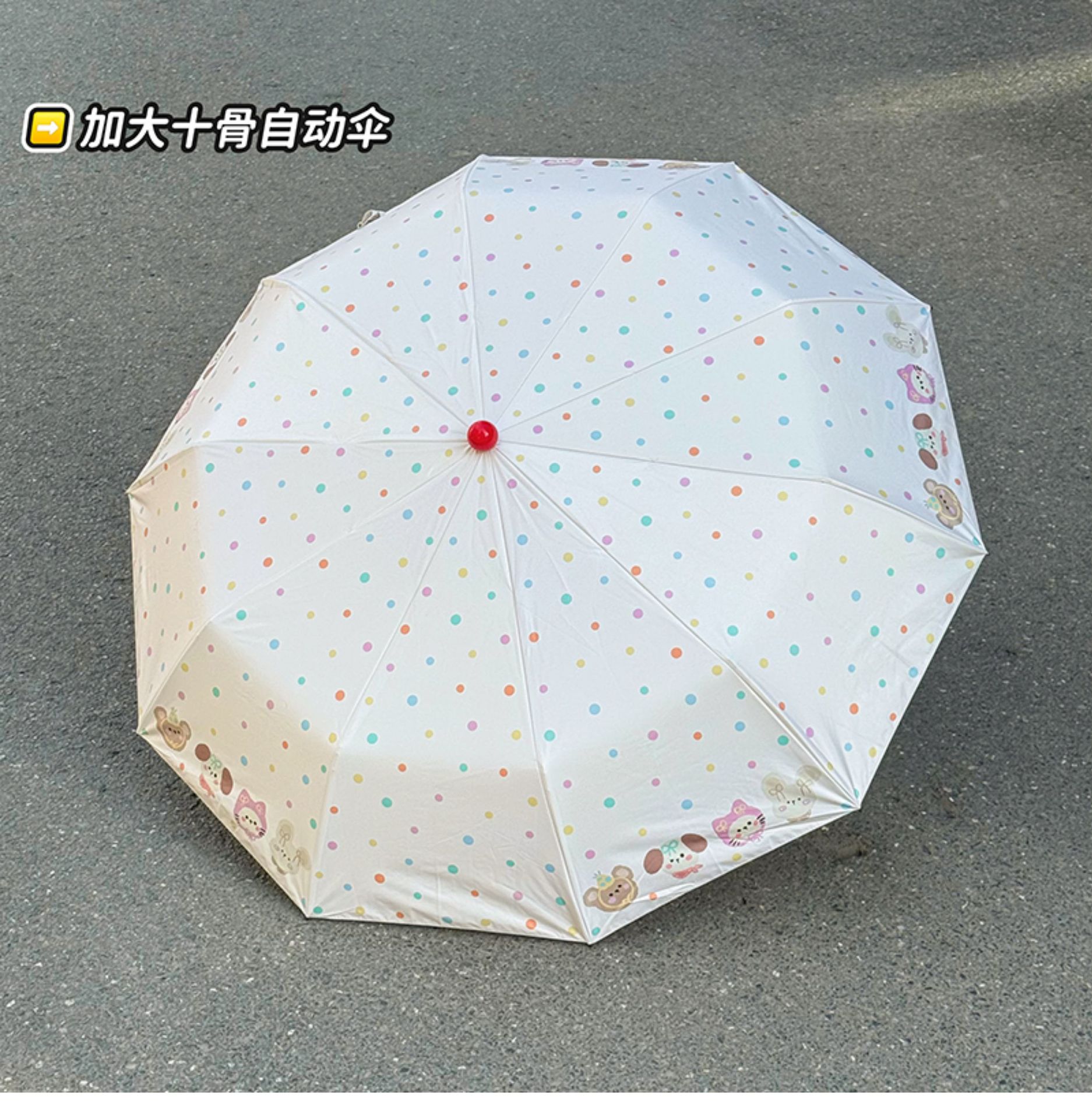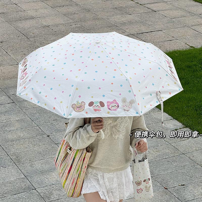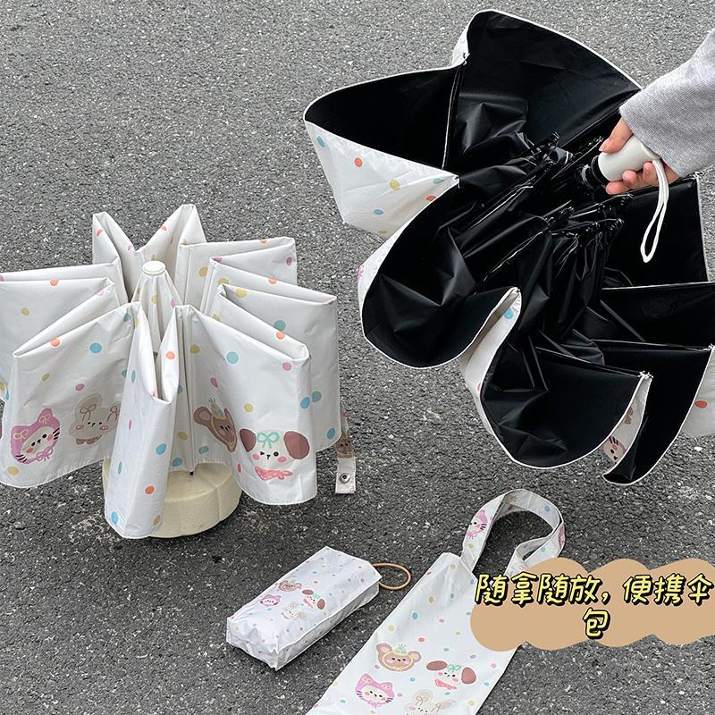 Rosy波点全自动晴雨伞两用女防晒防紫外线黑胶太阳伞折叠小巧遮阳