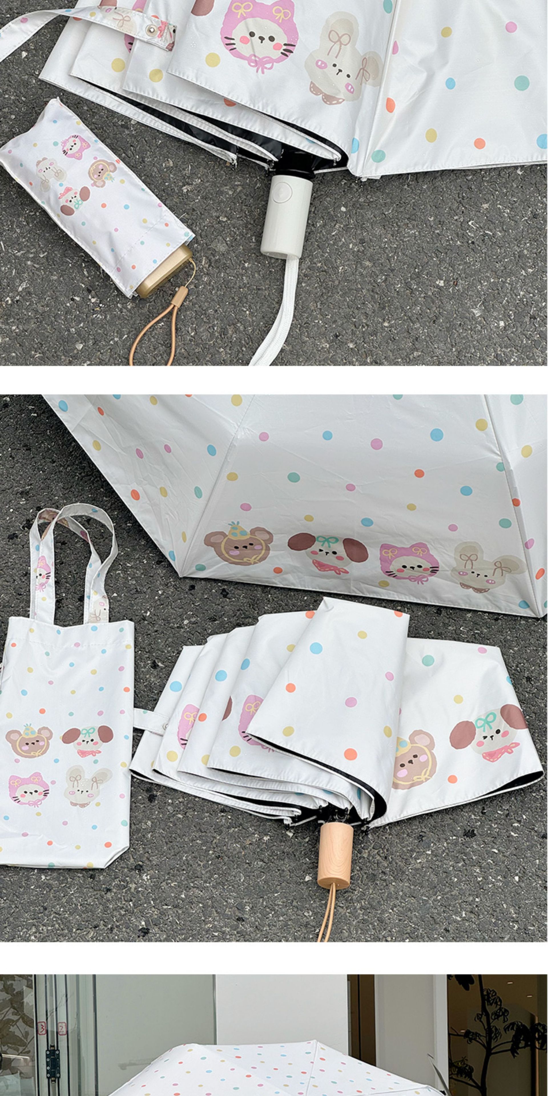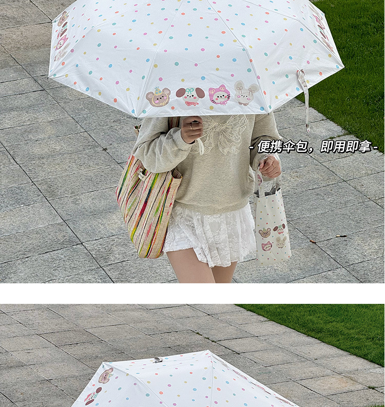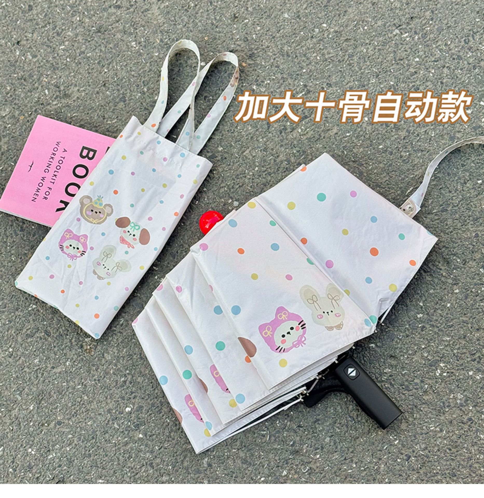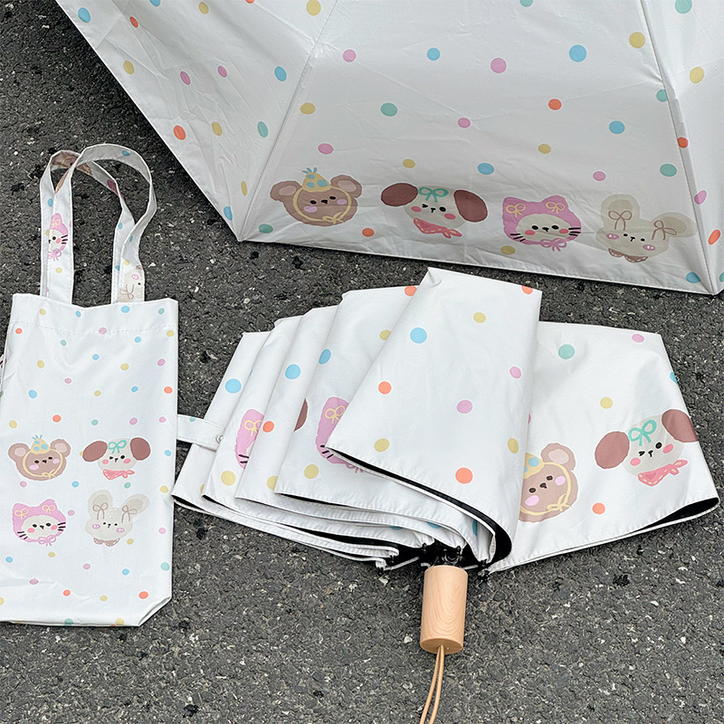 Rosy波点全自动晴雨伞两用女防晒防紫外线黑胶太阳伞折叠小巧遮阳