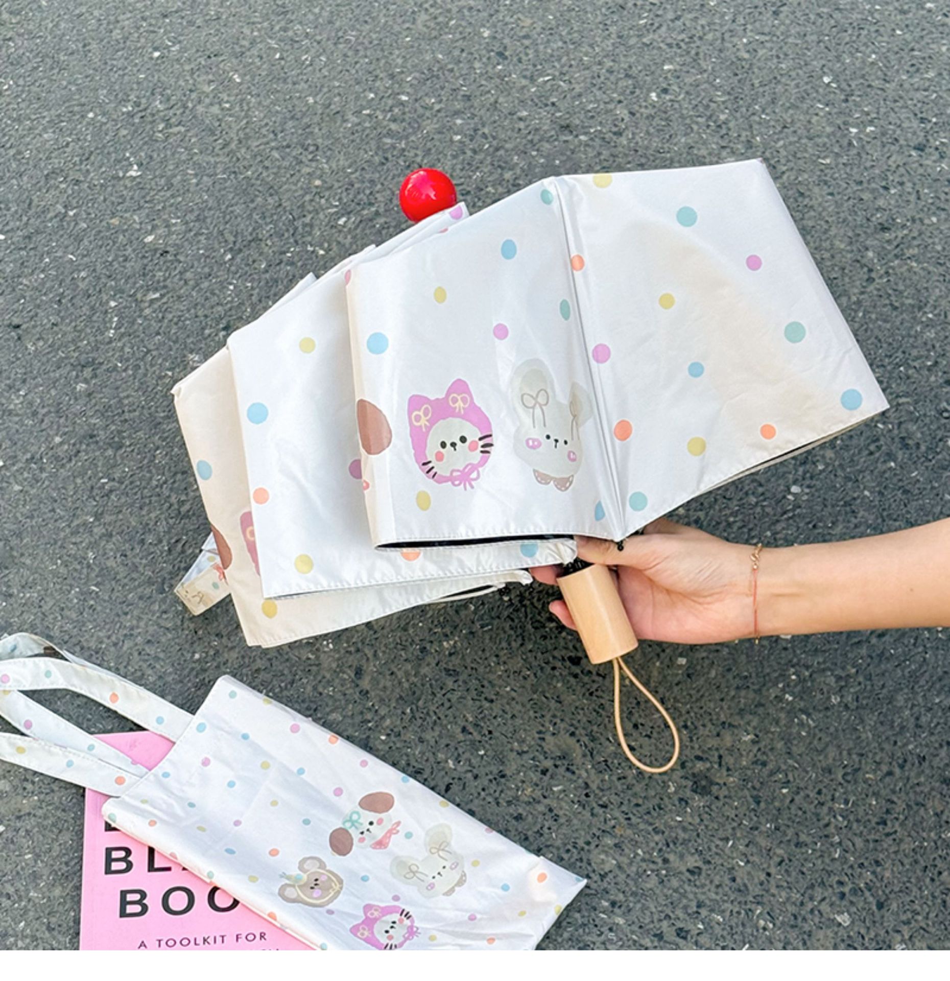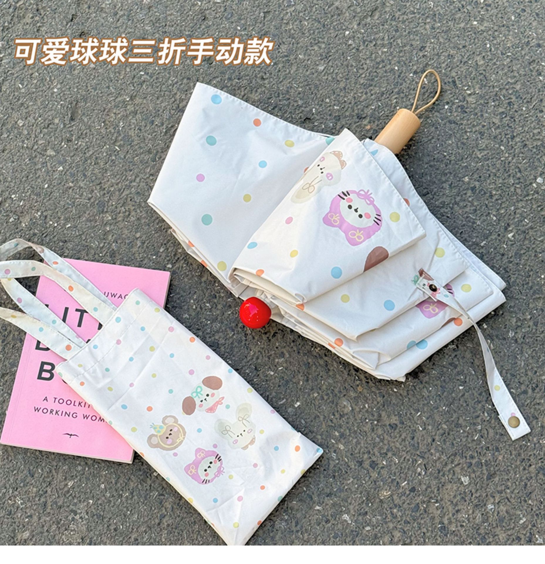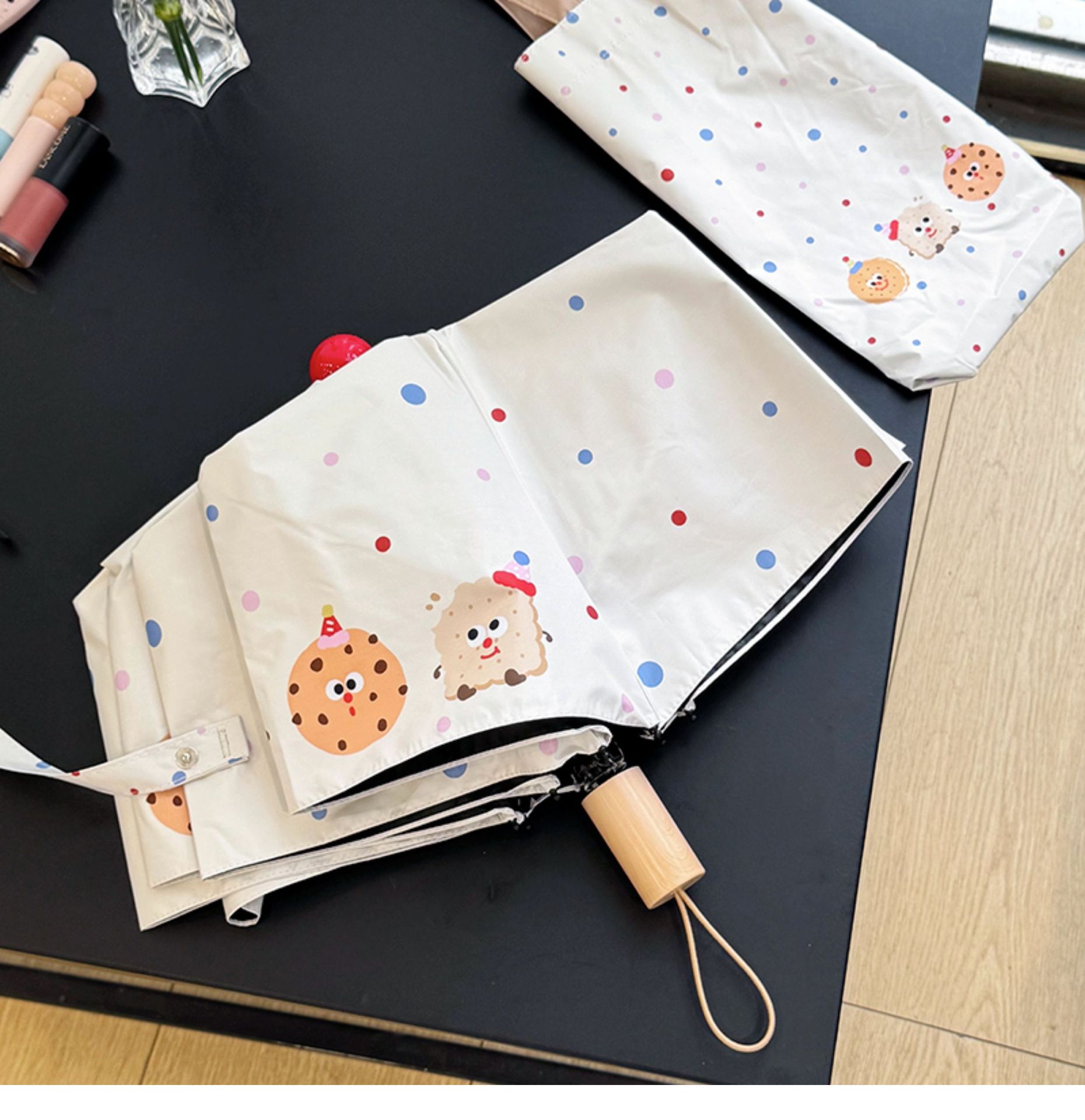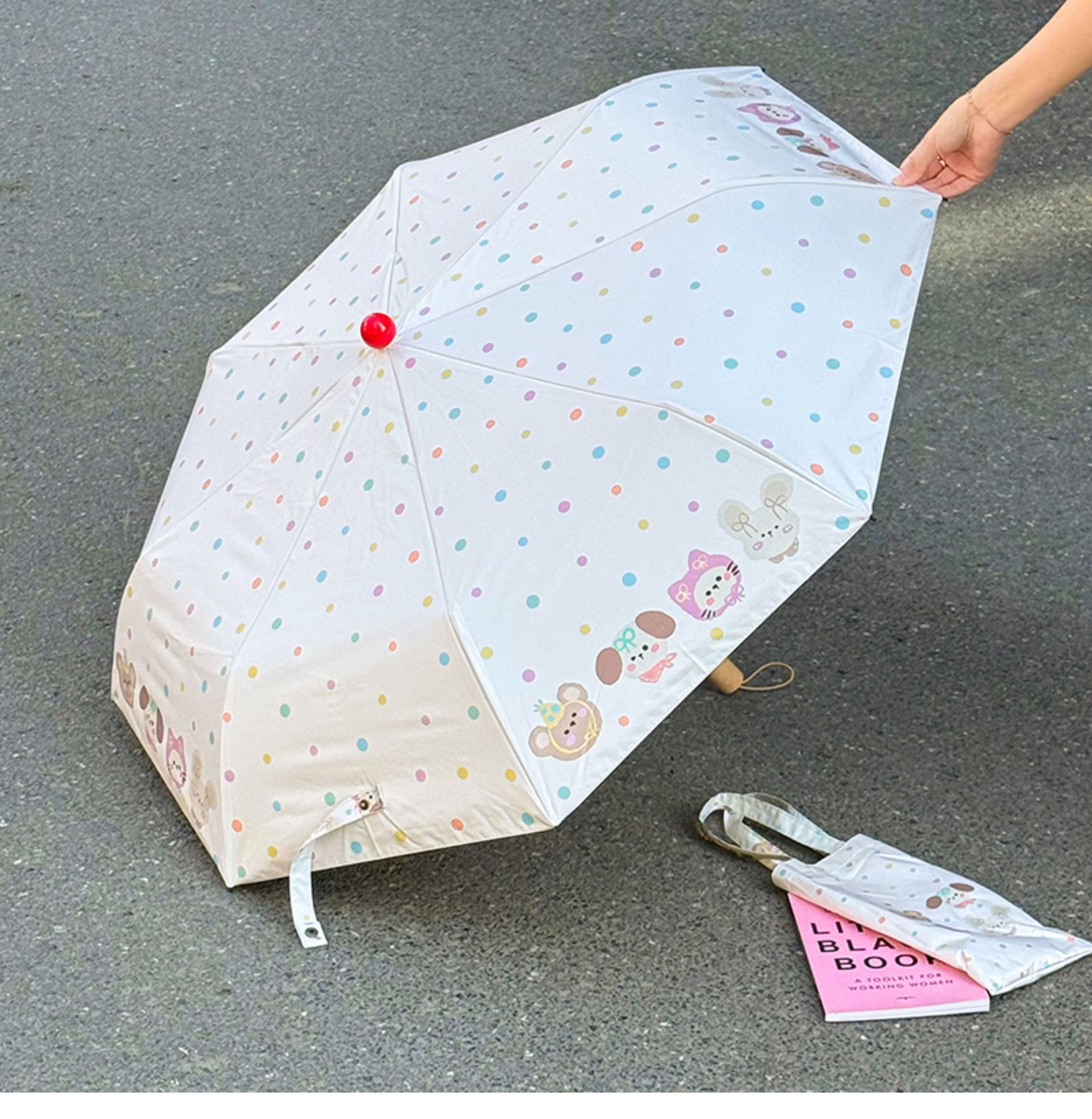 Rosy波点全自动晴雨伞两用女防晒防紫外线黑胶太阳伞折叠小巧遮阳