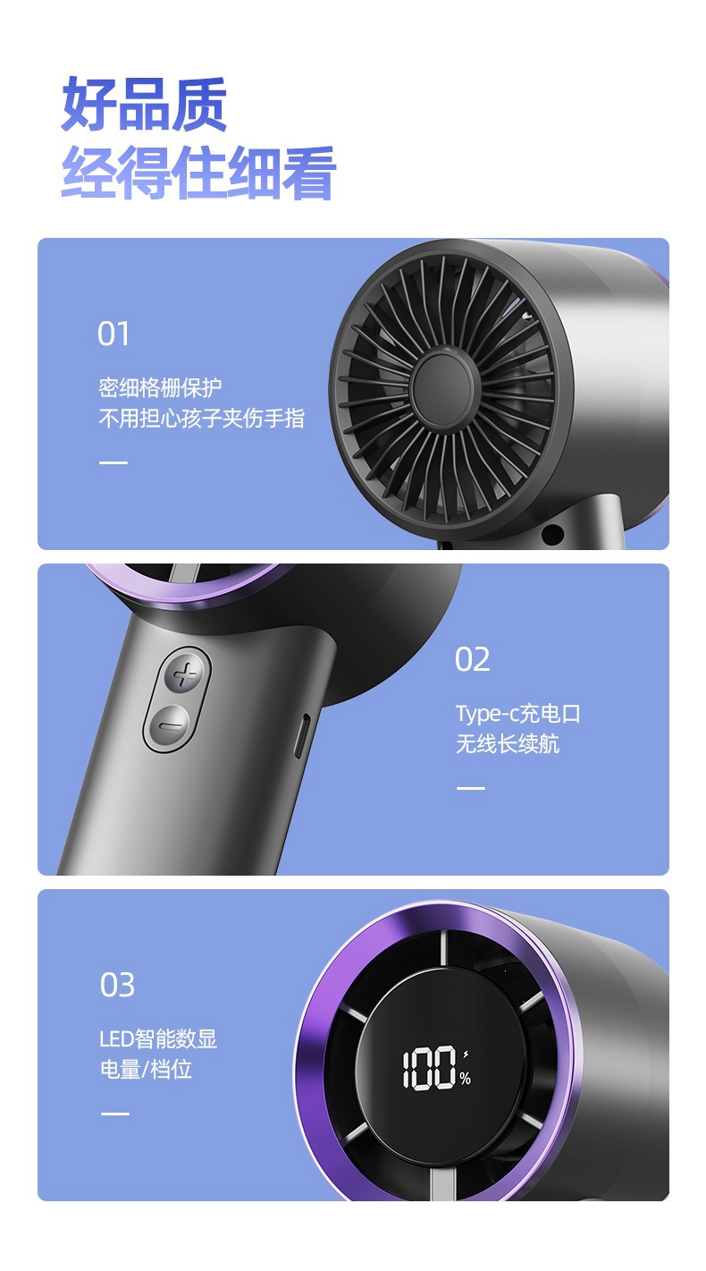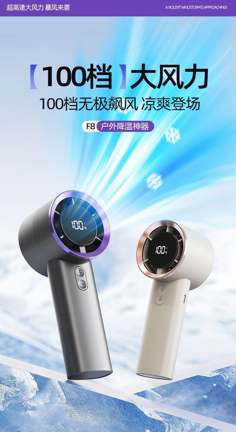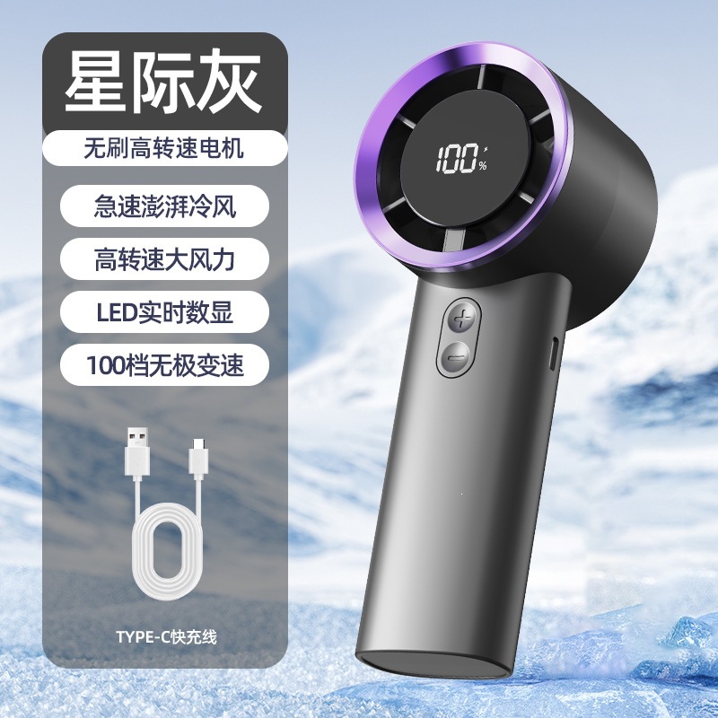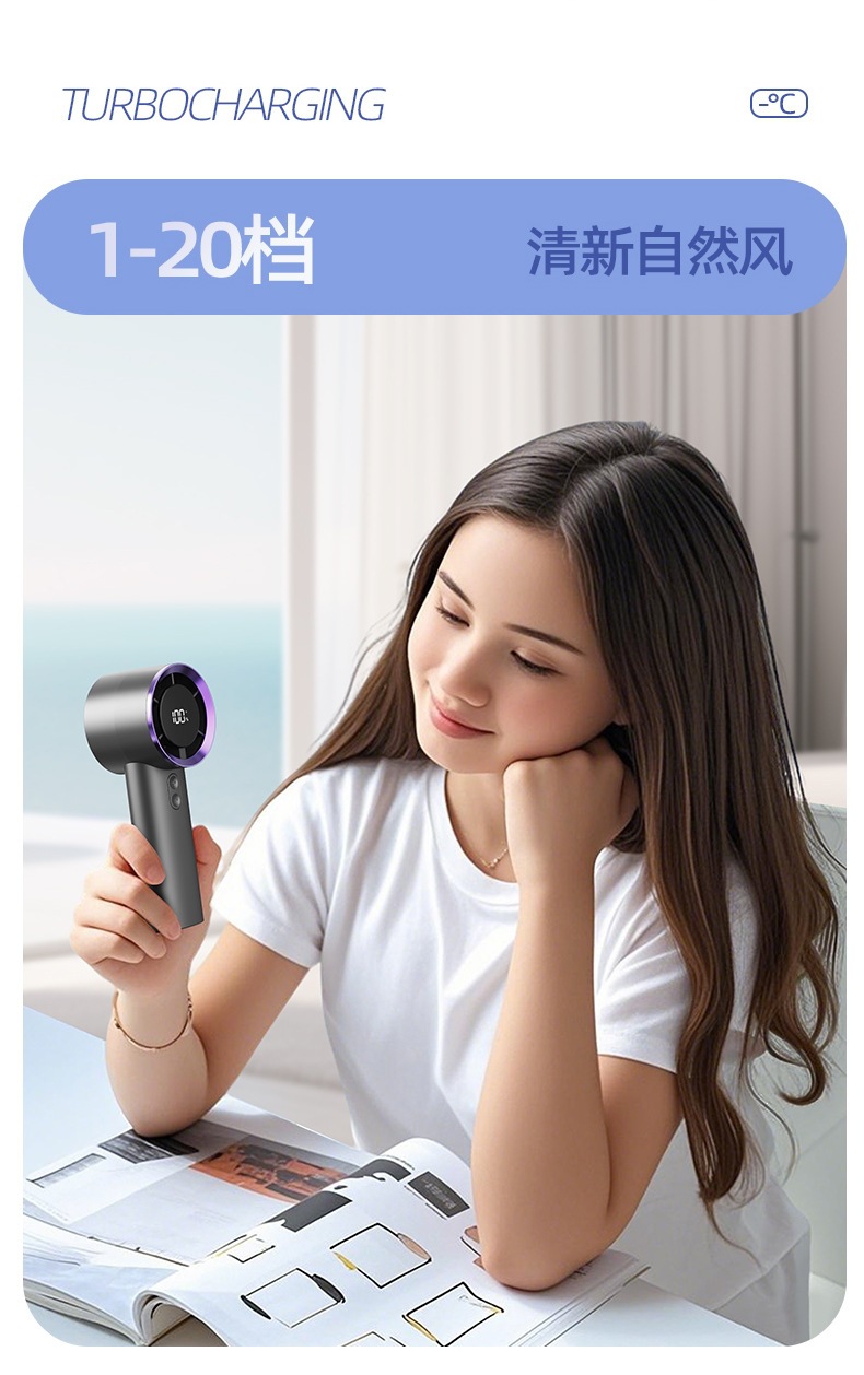 2026新款手持式涡轮手拿风扇智能数显风扇便携式长续航手持小风扇