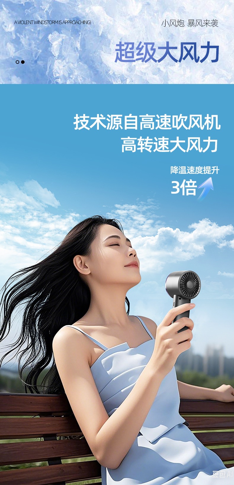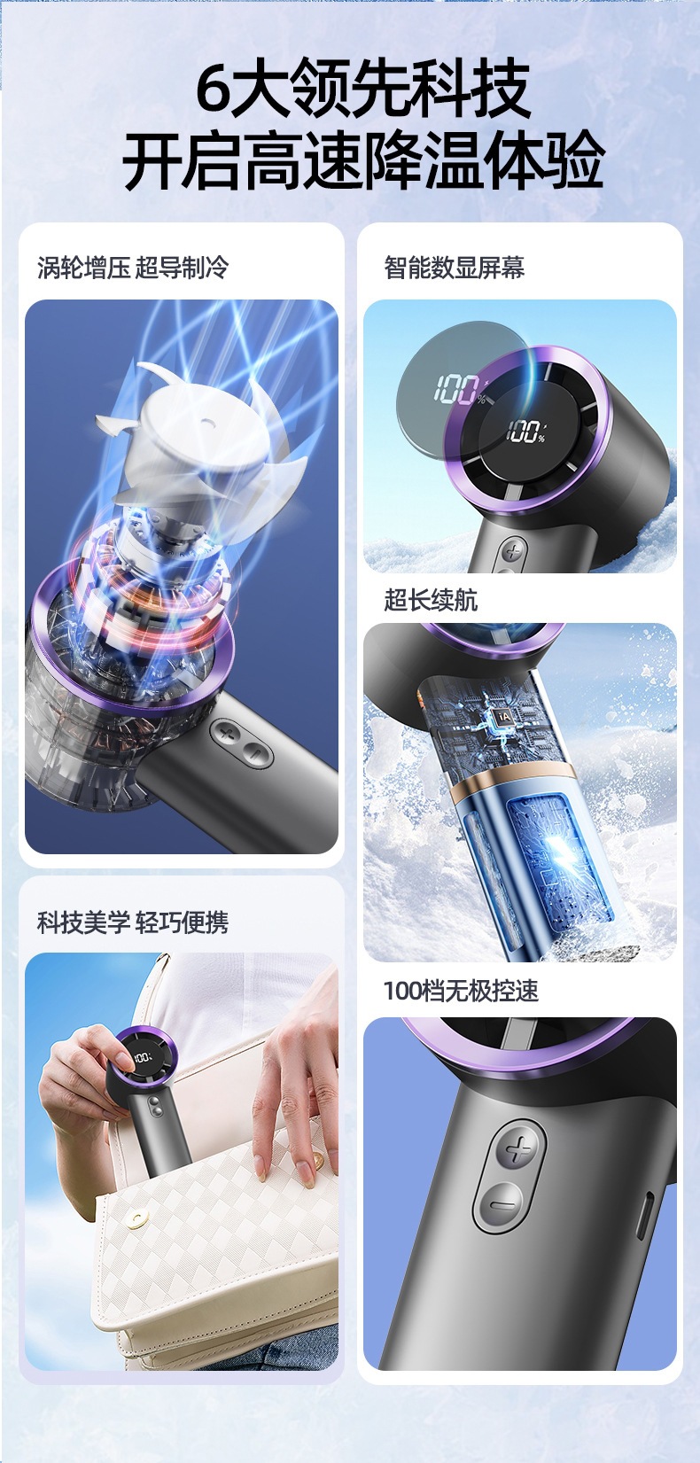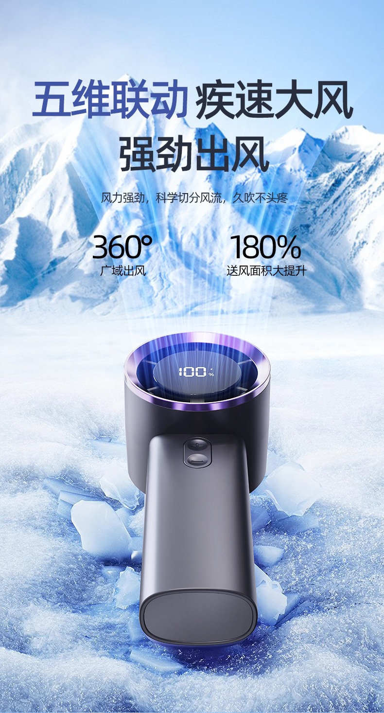 2026新款手持式涡轮手拿风扇智能数显风扇便携式长续航手持小风扇