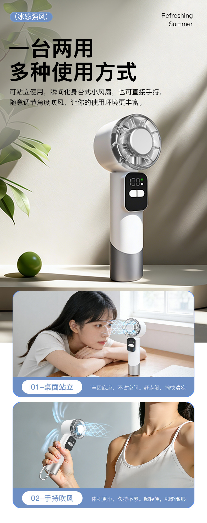 新款手持小风扇制冷桌面风扇便超强暴力涡轮小风炮携随身迷你风扇