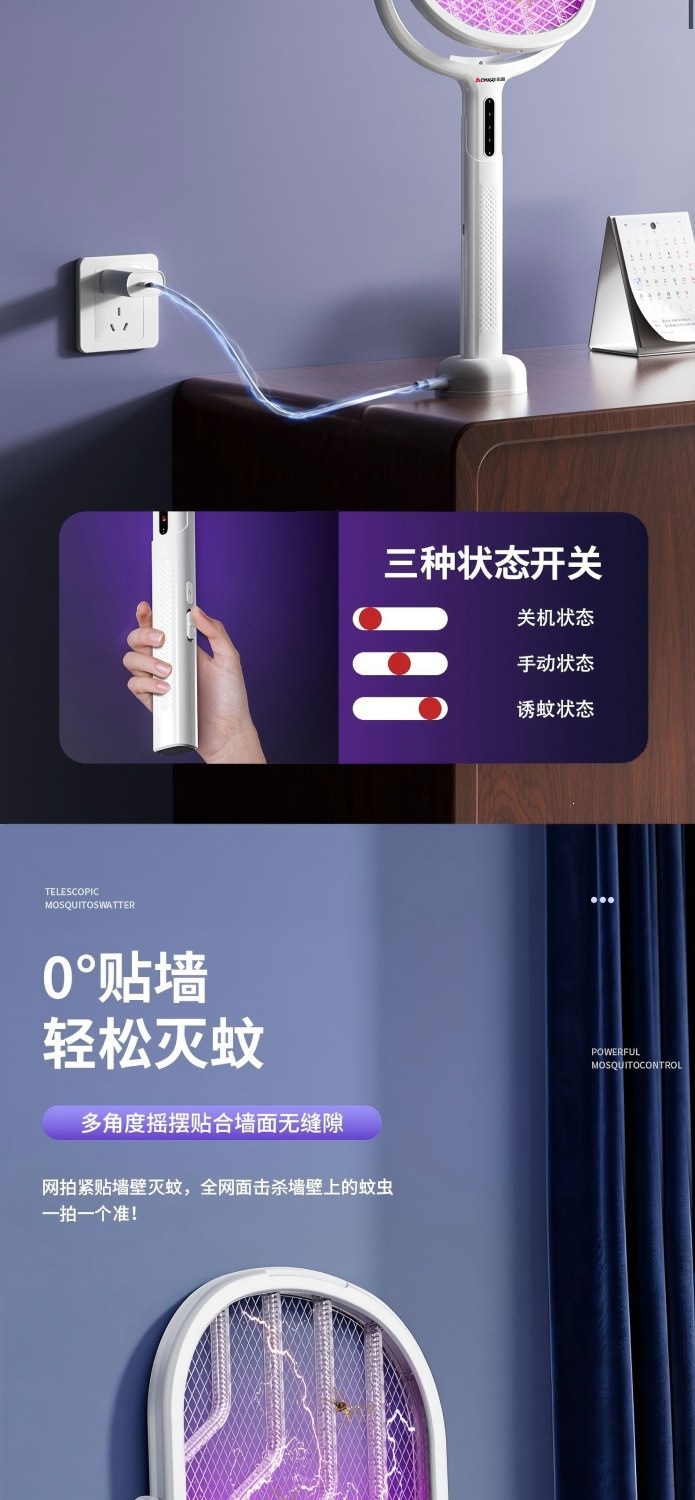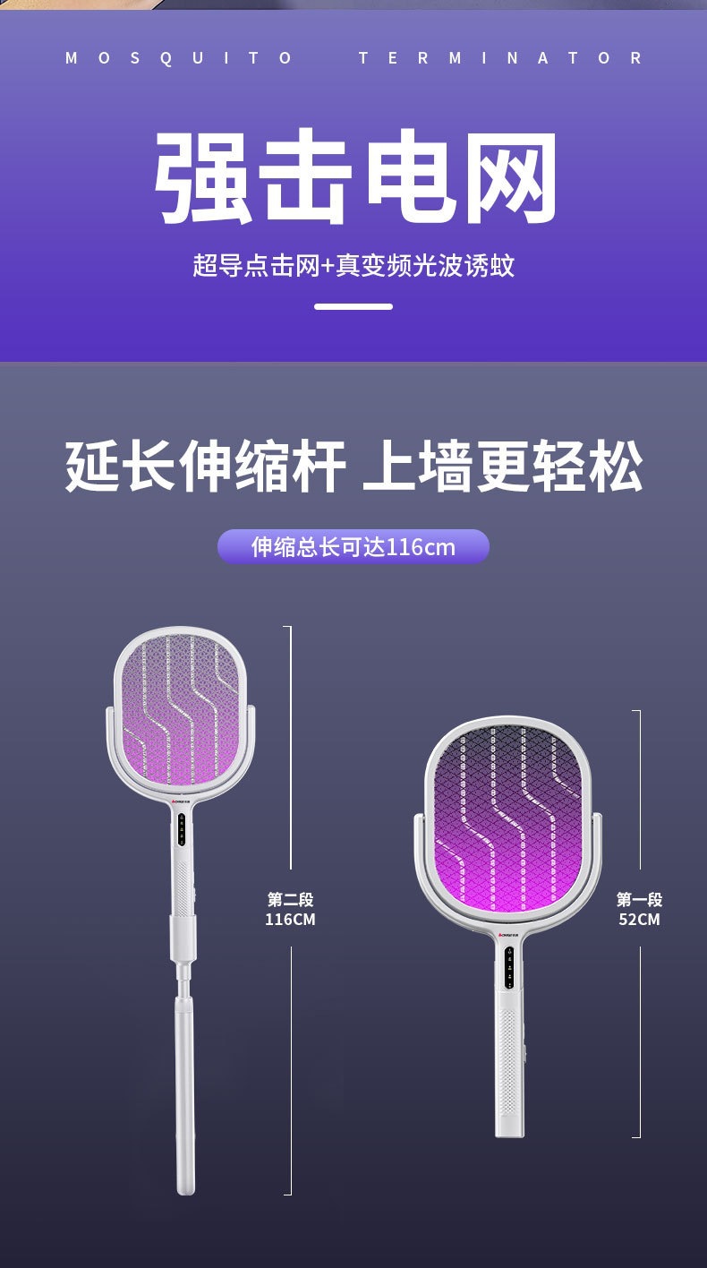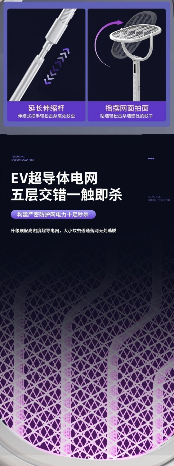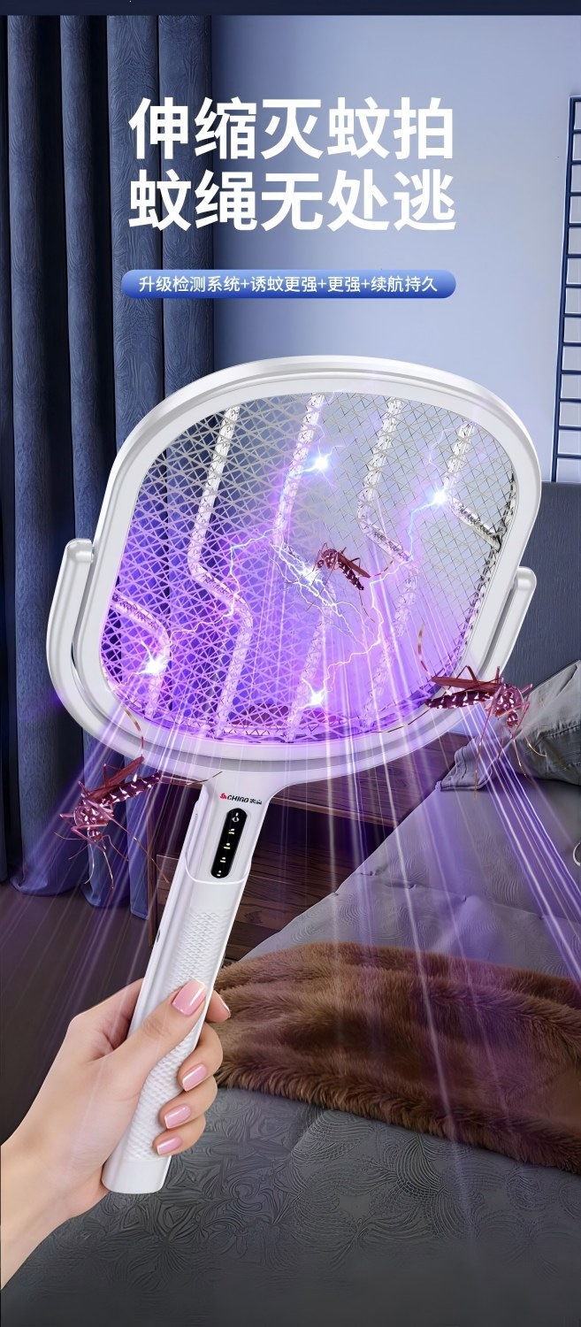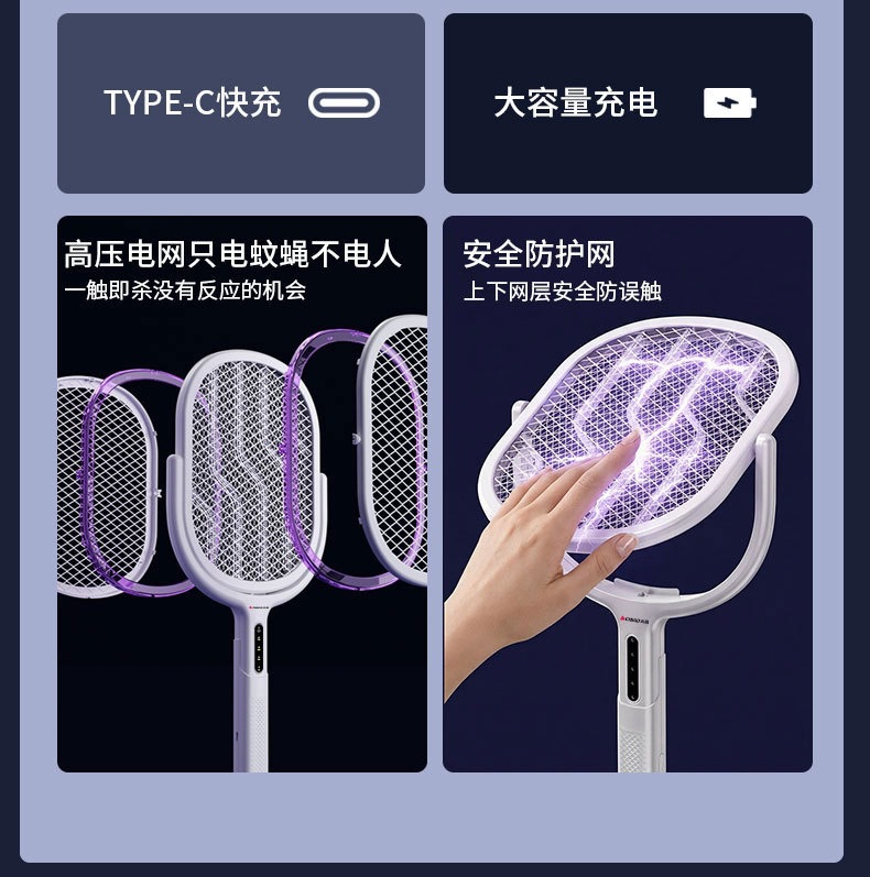 新款电蚊拍充电式家用电蚊拍锂电池二合一灭蚊折叠款苍蝇拍电蚊拍