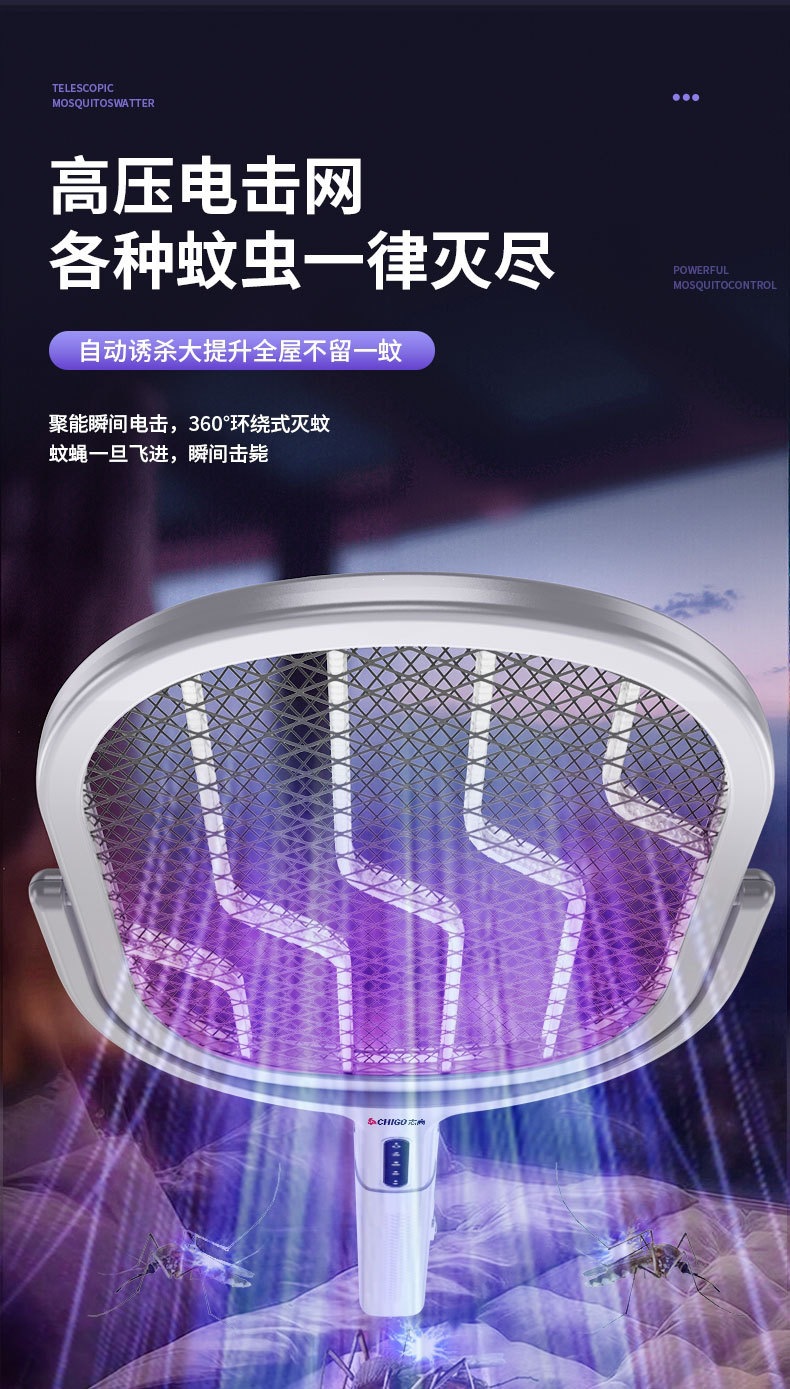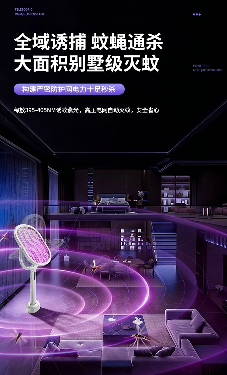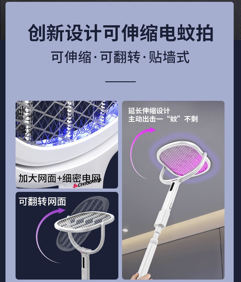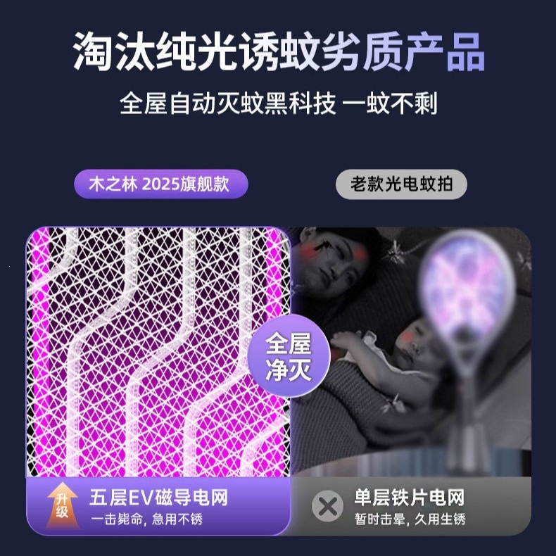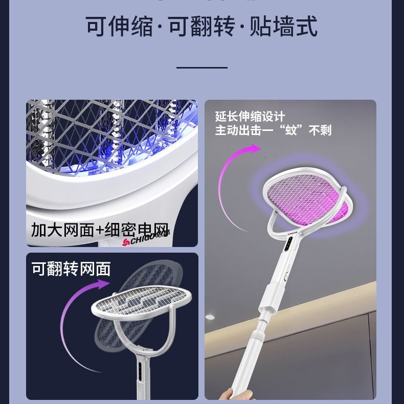新款电蚊拍充电式家用电蚊拍锂电池二合一灭蚊折叠款苍蝇拍电蚊拍