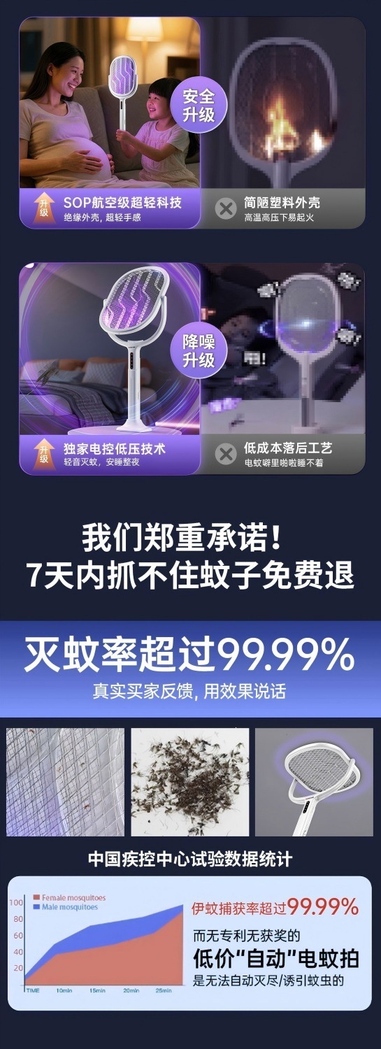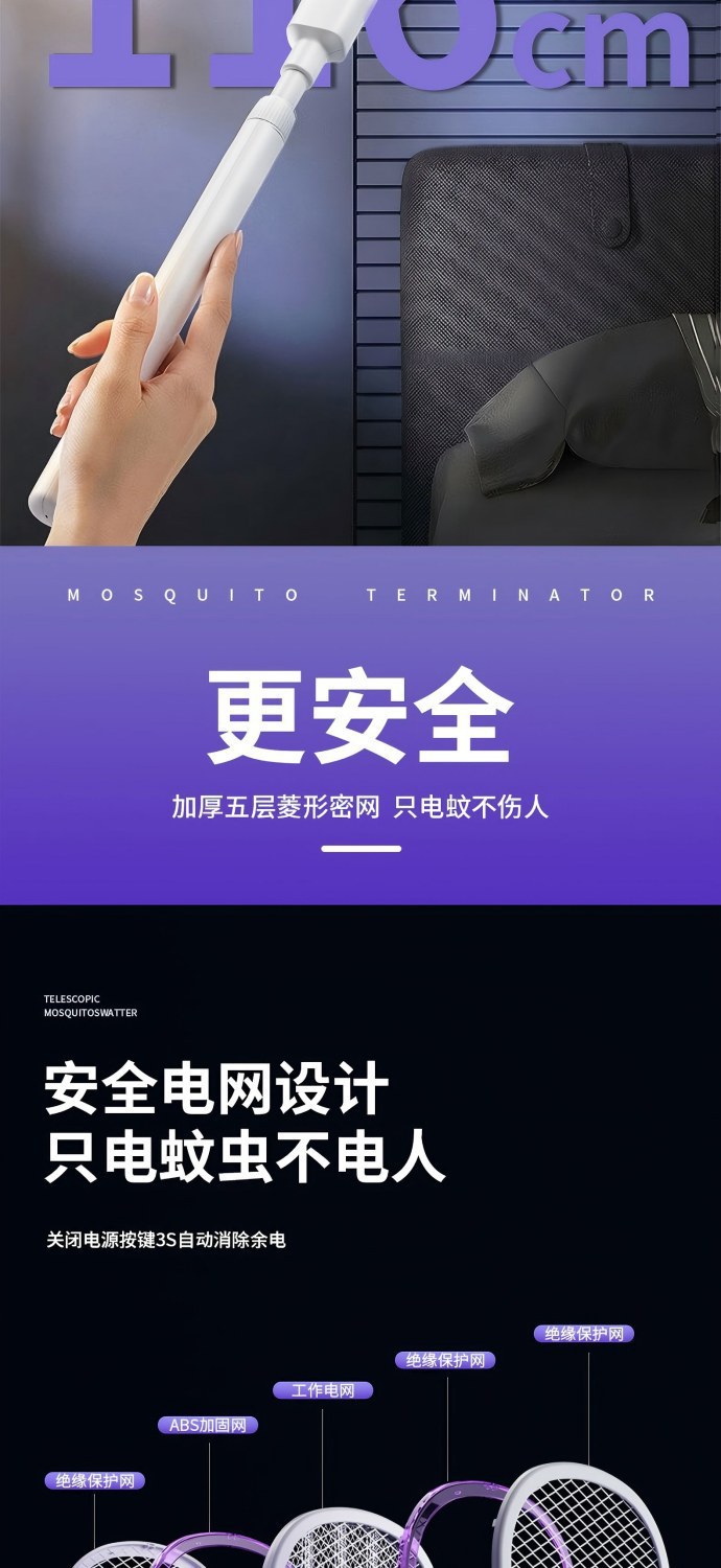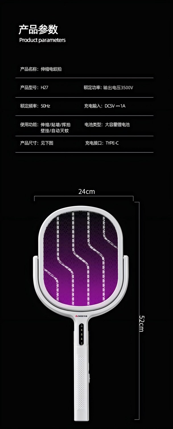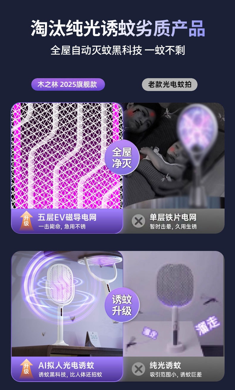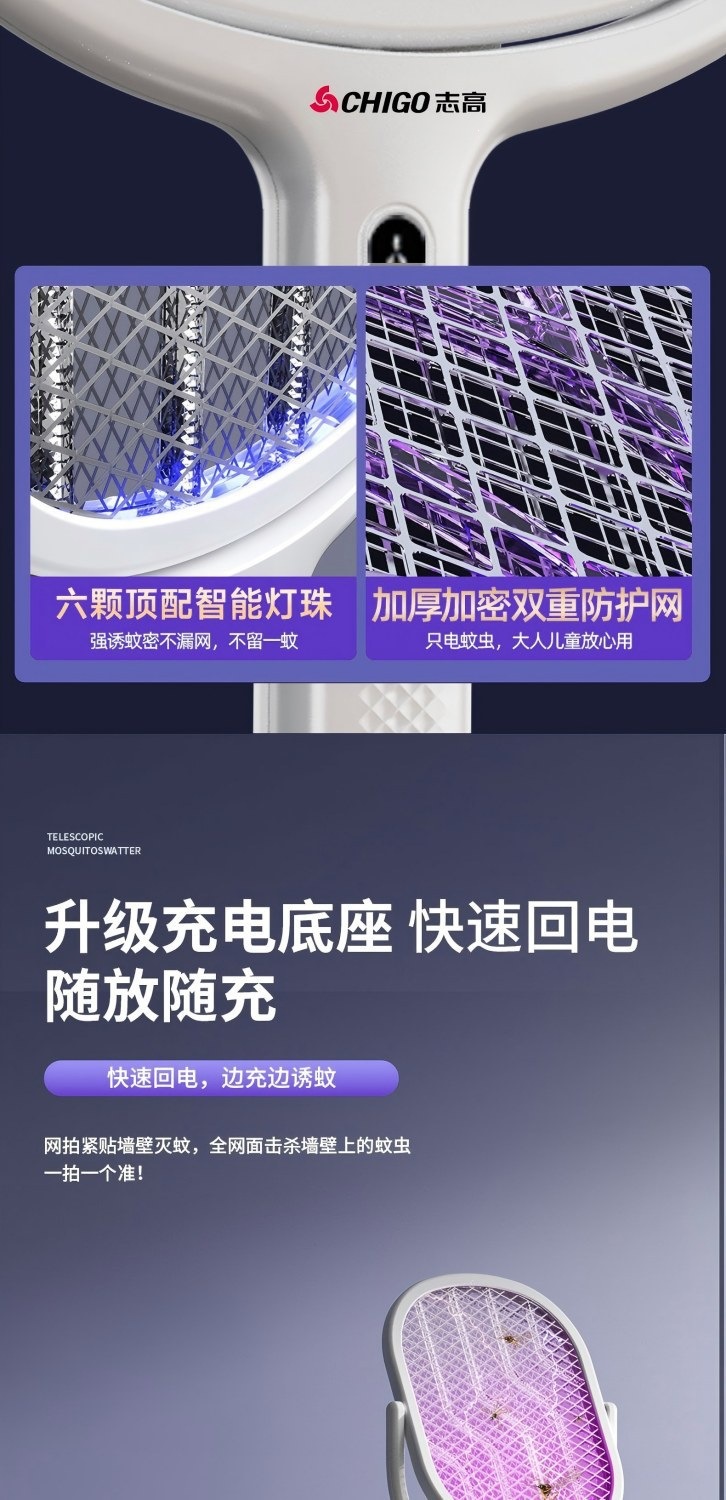 新款电蚊拍充电式家用电蚊拍锂电池二合一灭蚊折叠款苍蝇拍电蚊拍