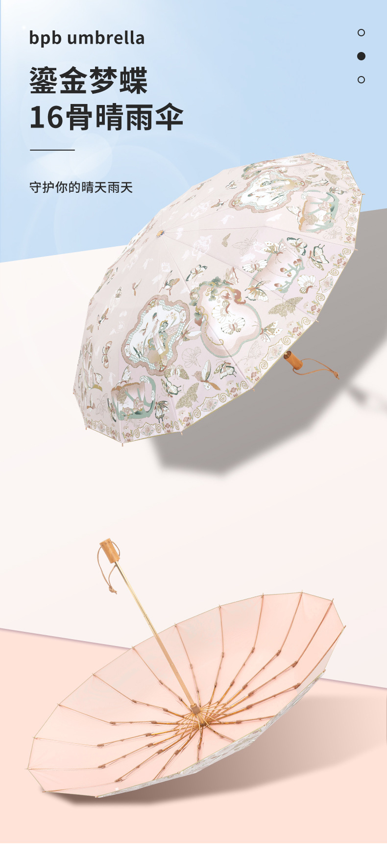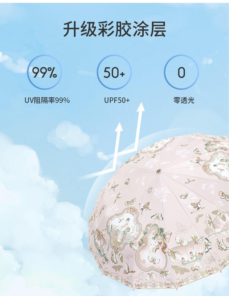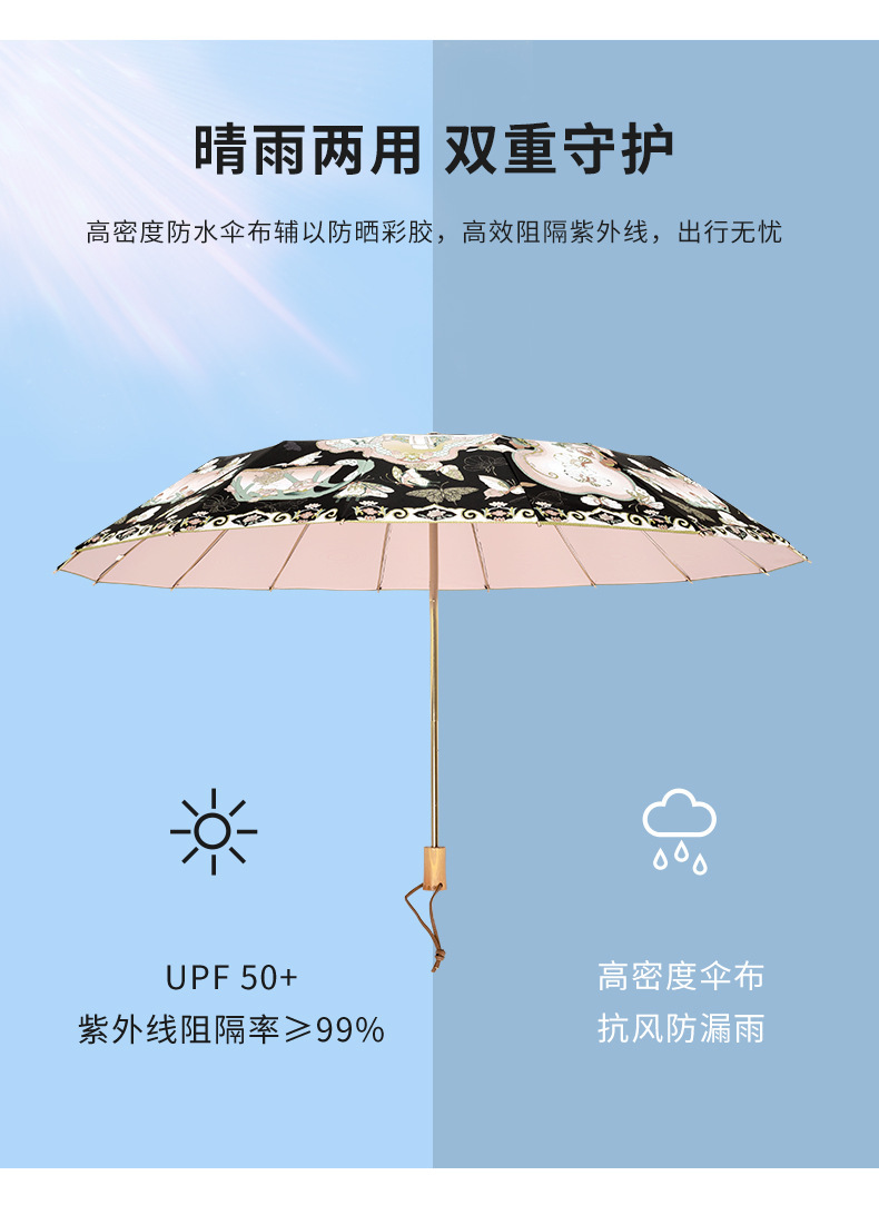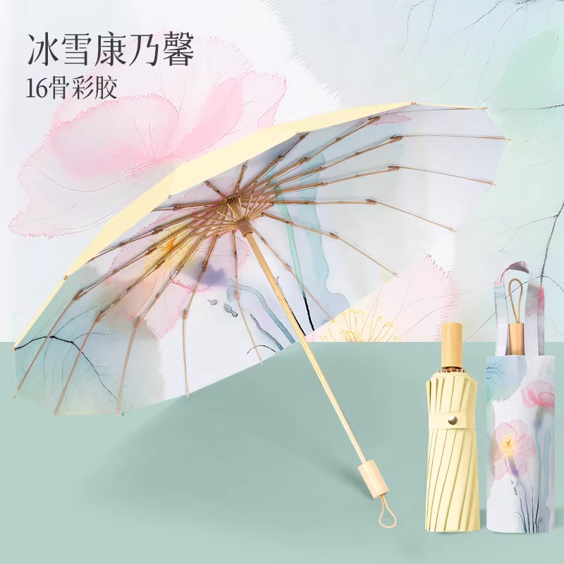 跨境电商爆品16骨加大高级感颜值太阳伞防晒女遮阳晴雨伞两用折叠