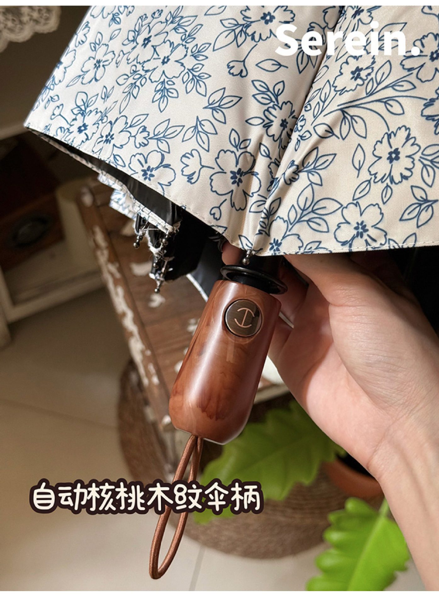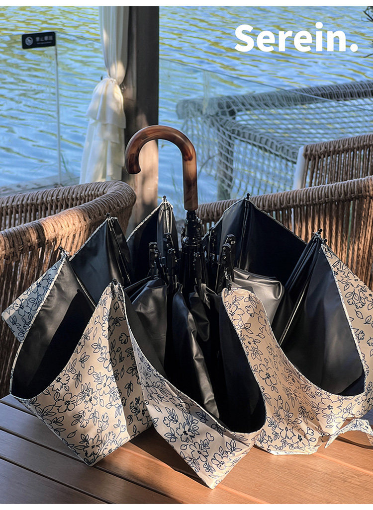 Serein复古弯柄晴雨伞两用防晒防紫外线太阳伞女加大抗风折叠遮阳