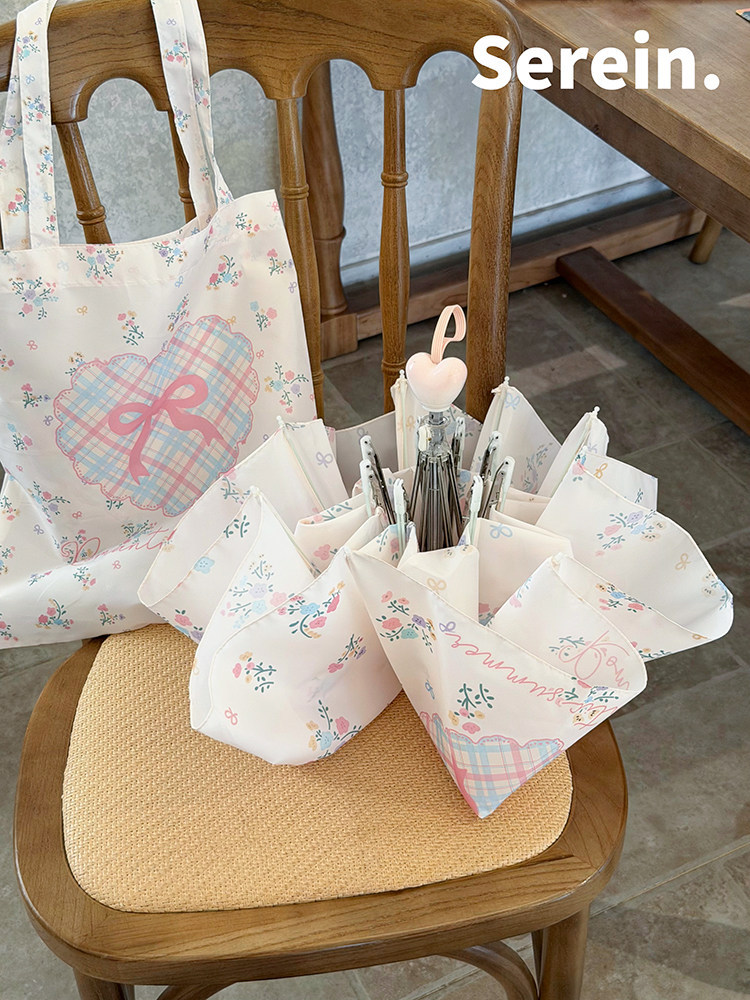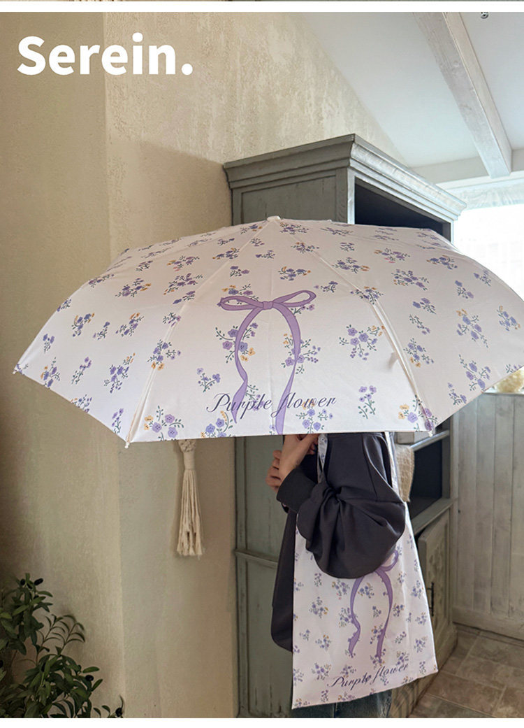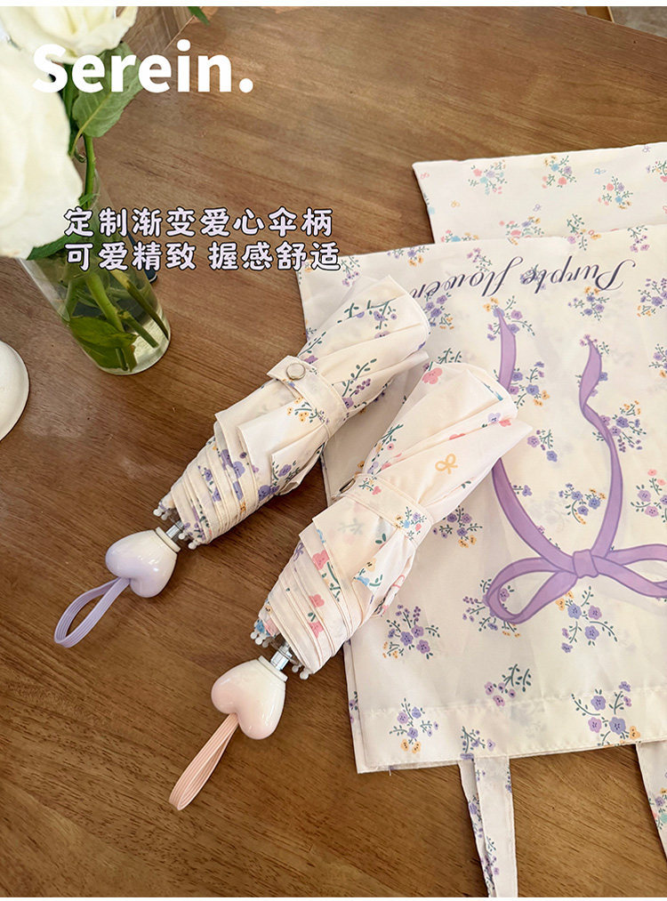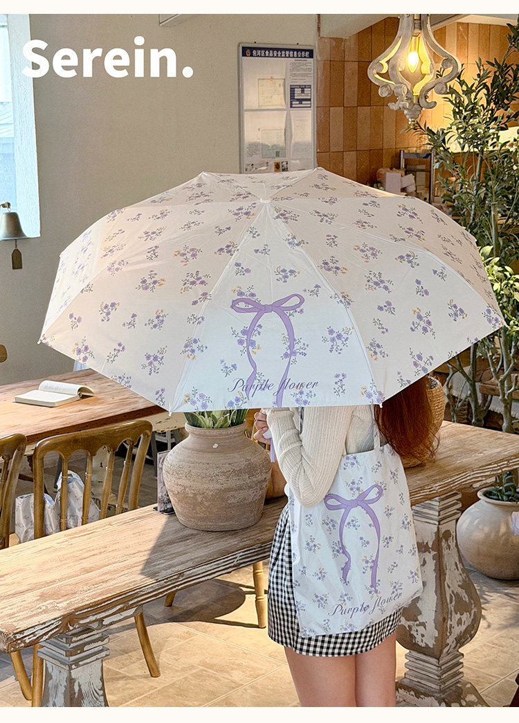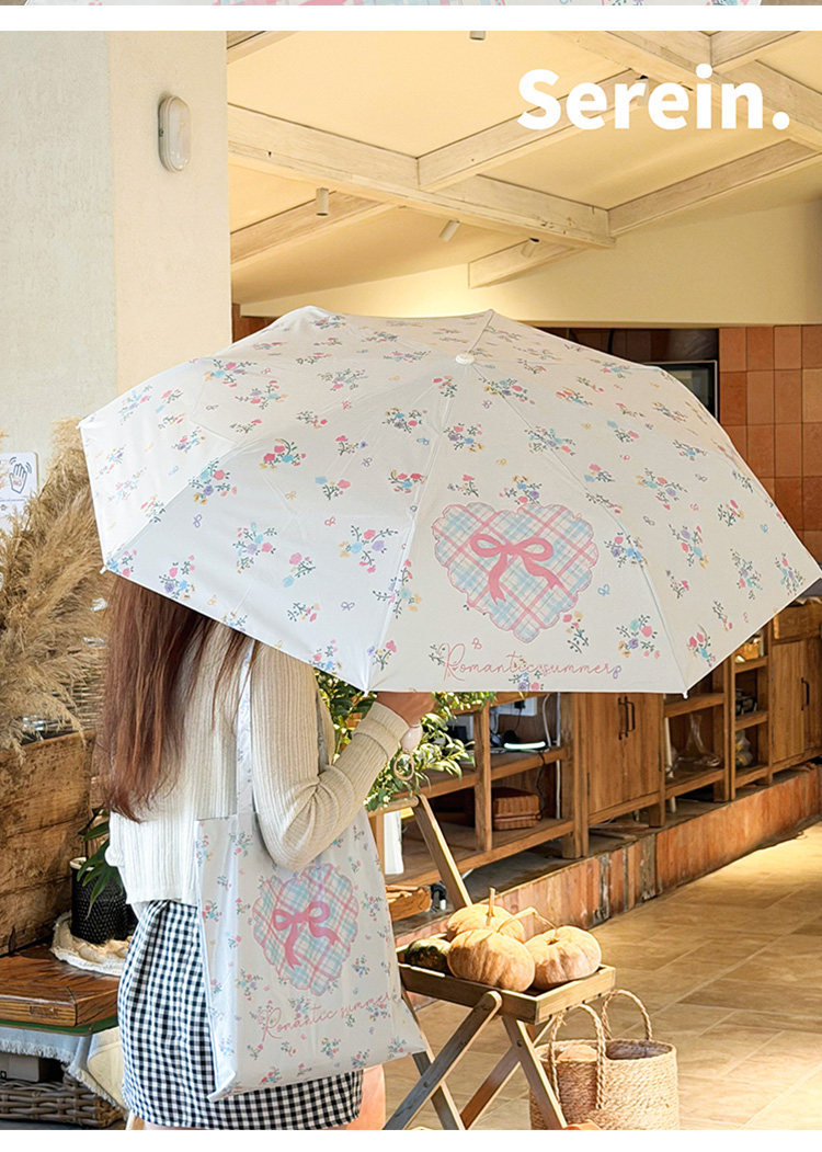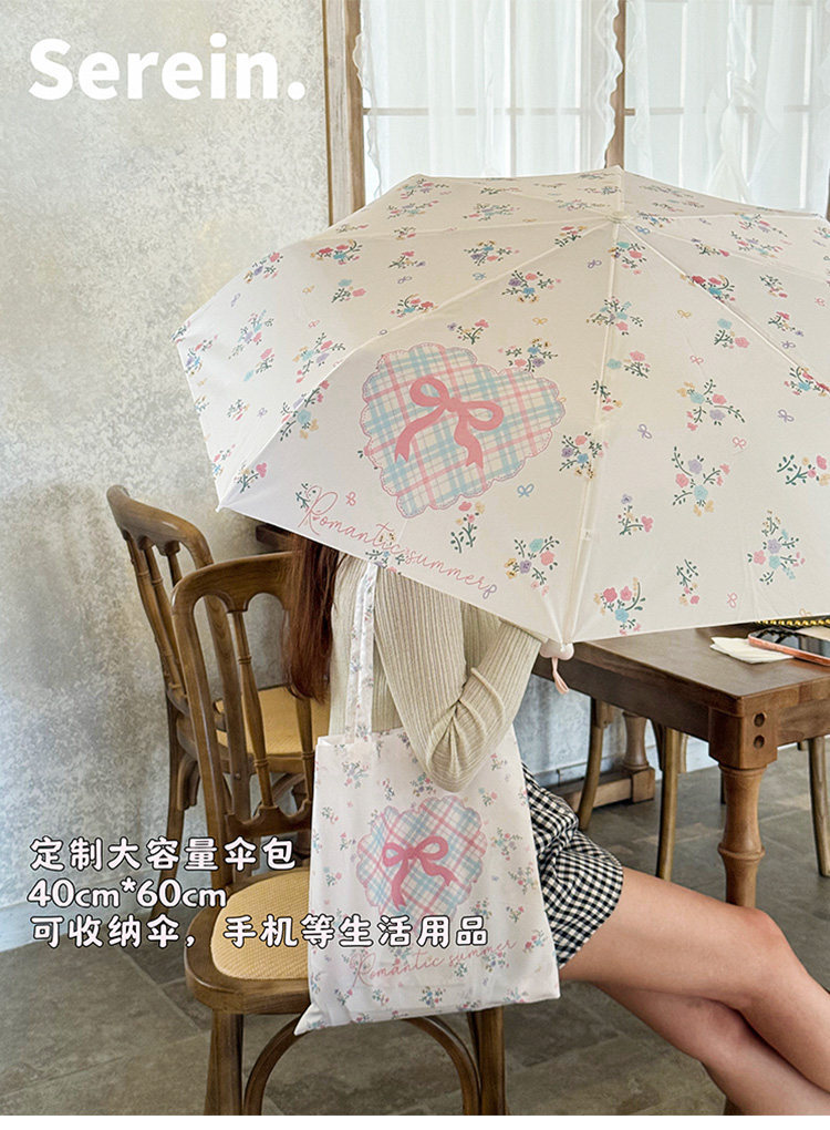 Serein韩系碎花晴雨伞两用女防晒防紫外线太阳伞折叠抗风手动遮阳
