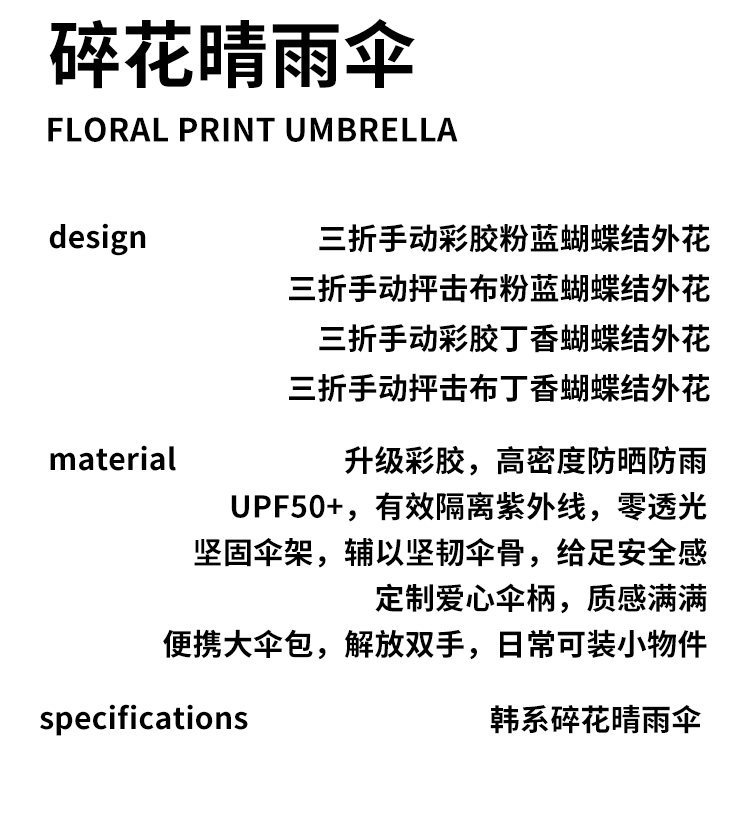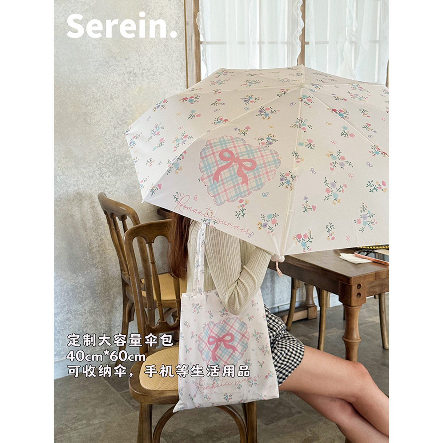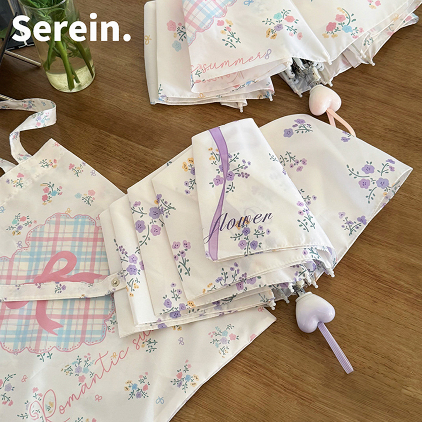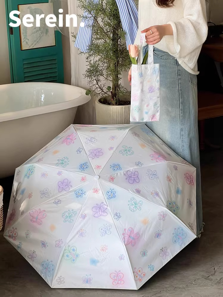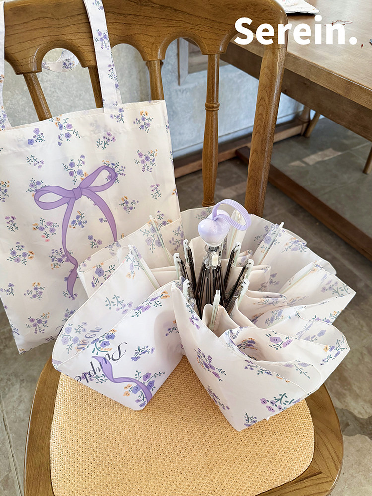 Serein韩系碎花晴雨伞两用女防晒防紫外线太阳伞折叠抗风手动遮阳