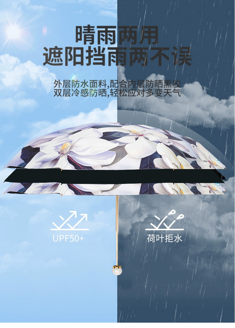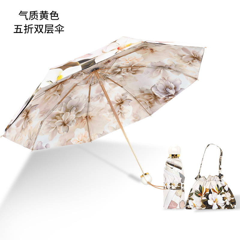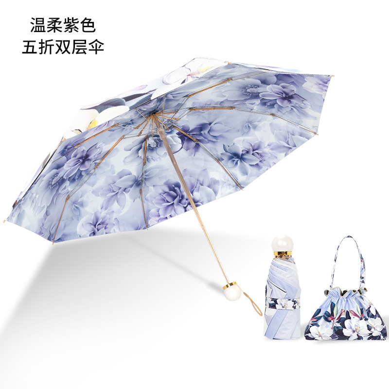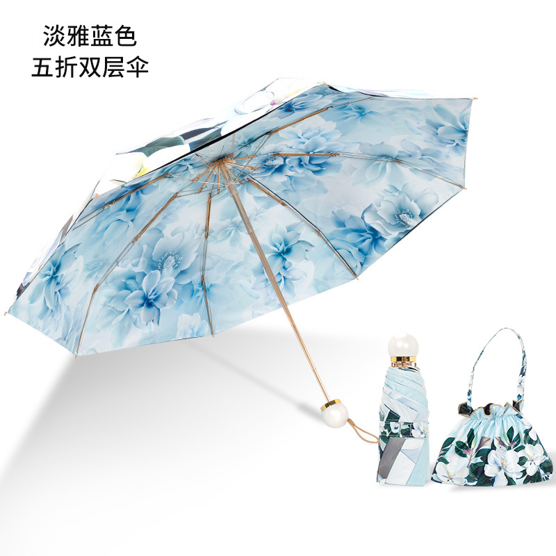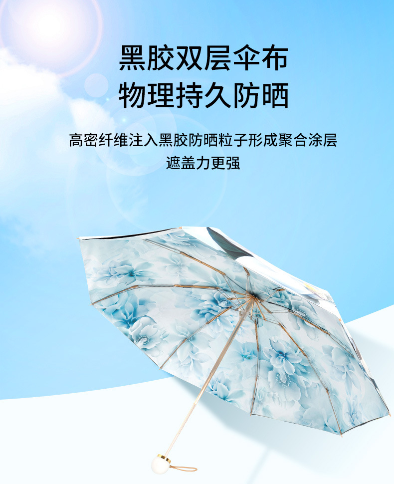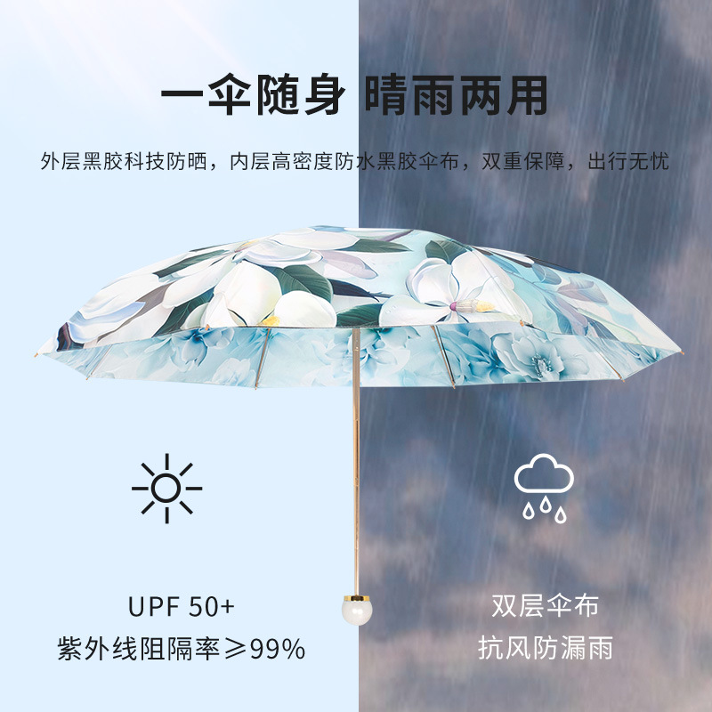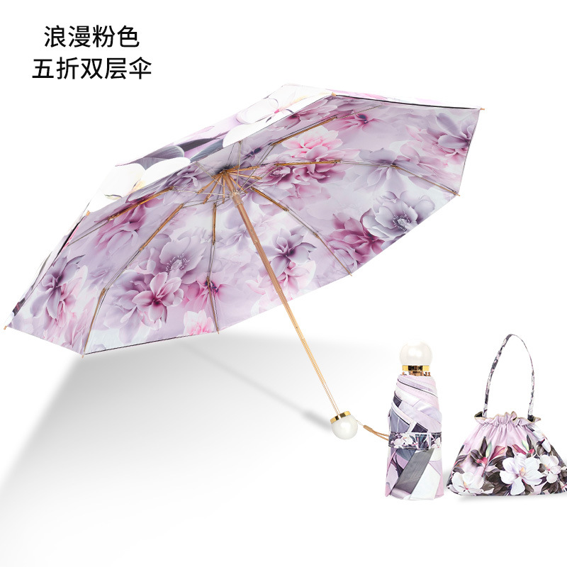 双层双面花黑胶太阳伞防晒遮阳防紫外线五折小巧便携晴雨伞两用女