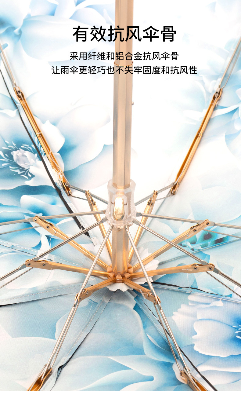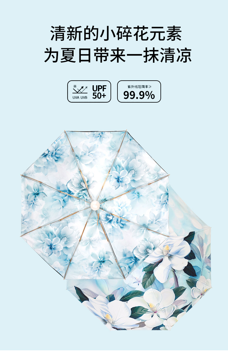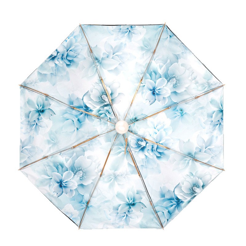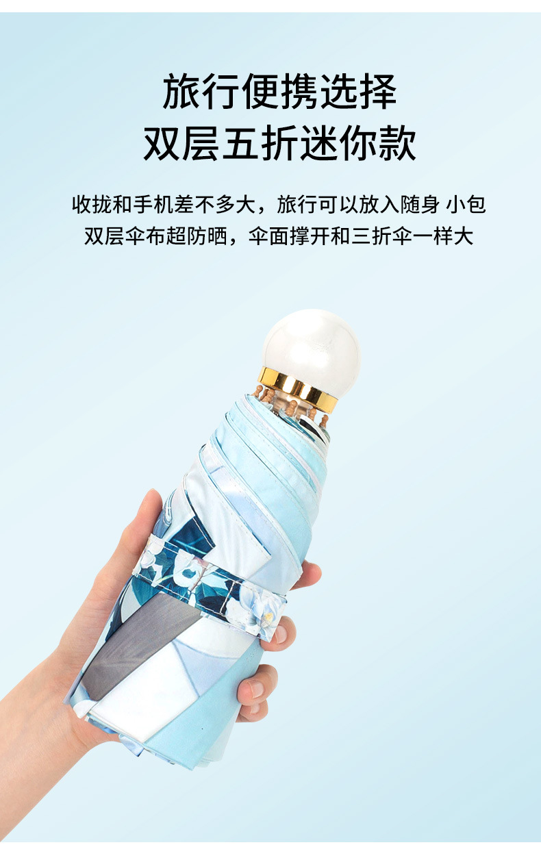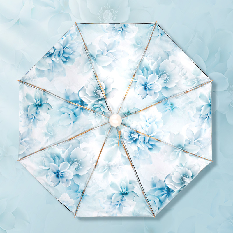 双层双面花黑胶太阳伞防晒遮阳防紫外线五折小巧便携晴雨伞两用女