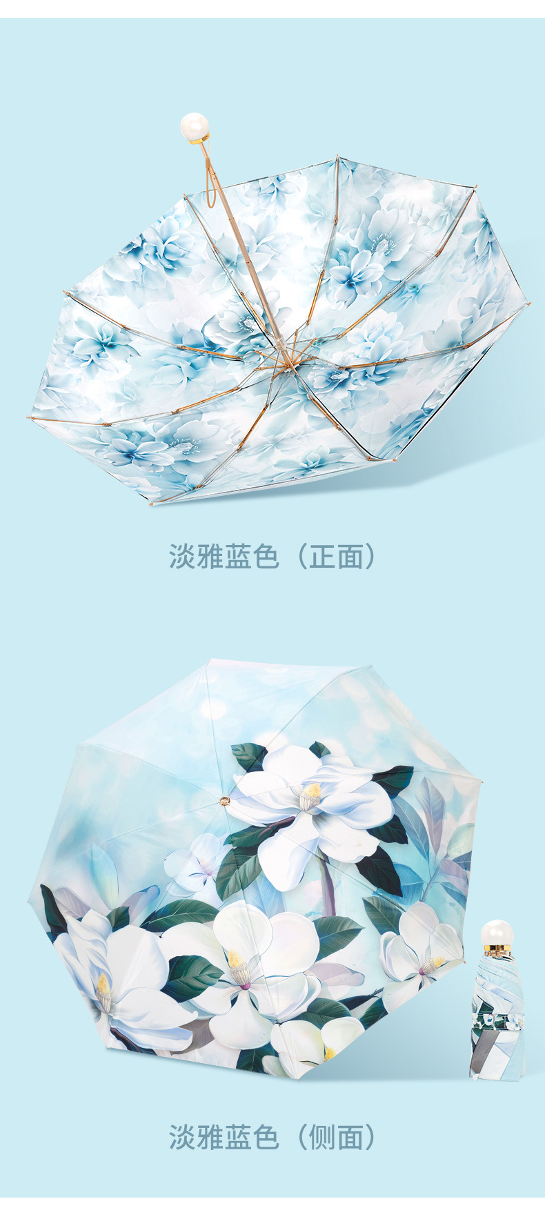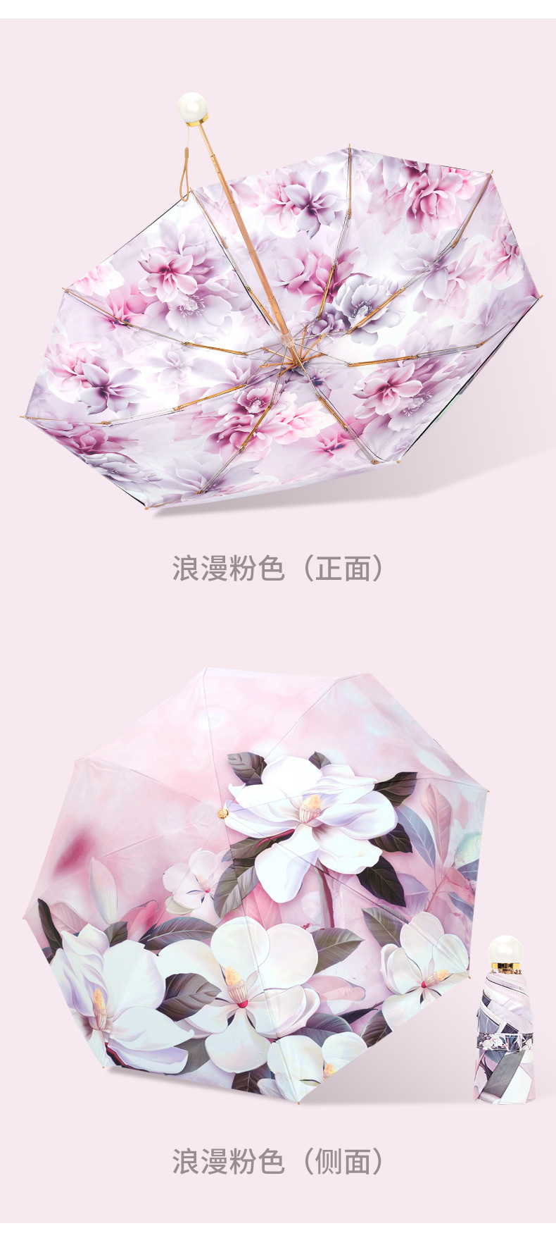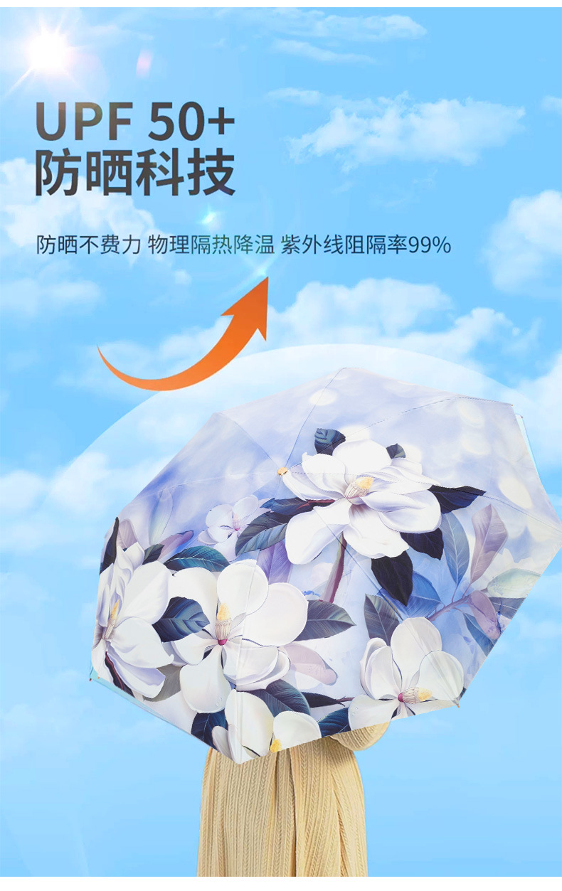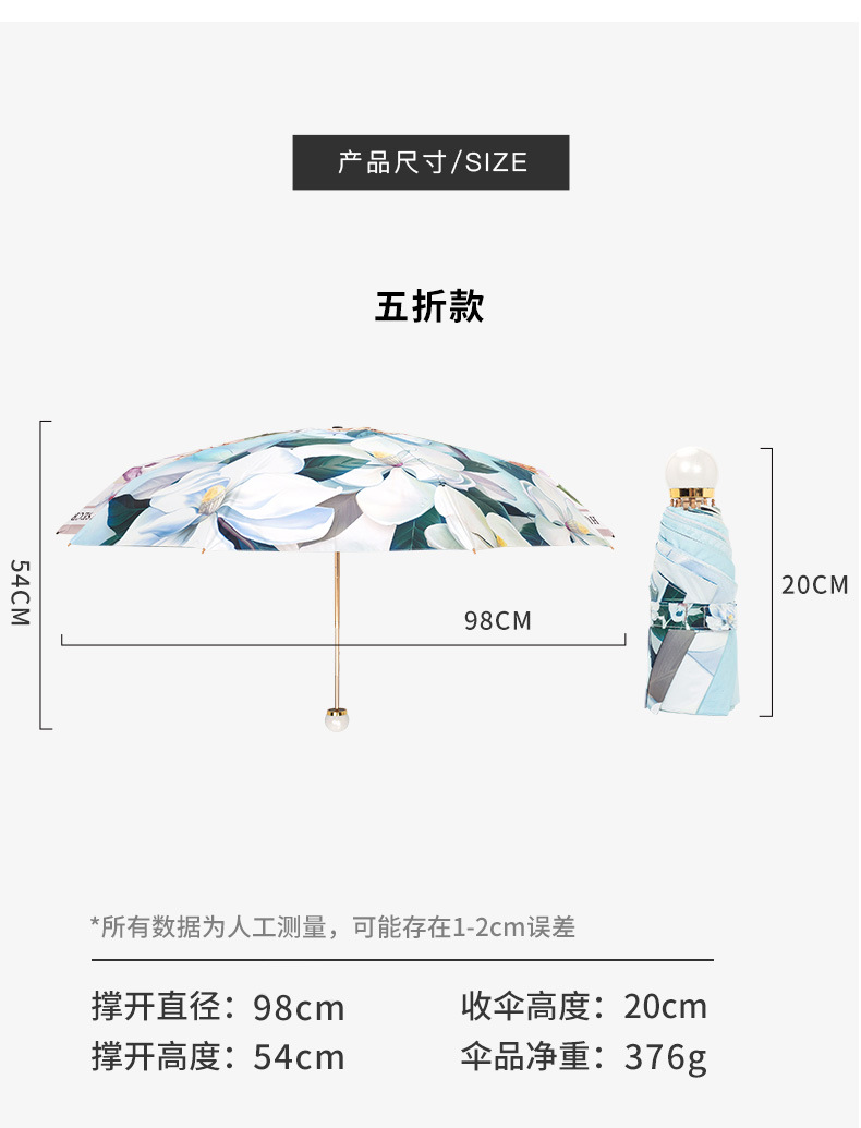 双层双面花黑胶太阳伞防晒遮阳防紫外线五折小巧便携晴雨伞两用女