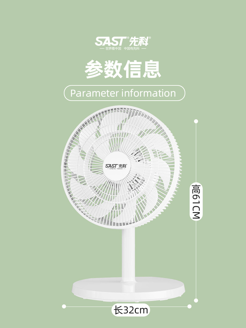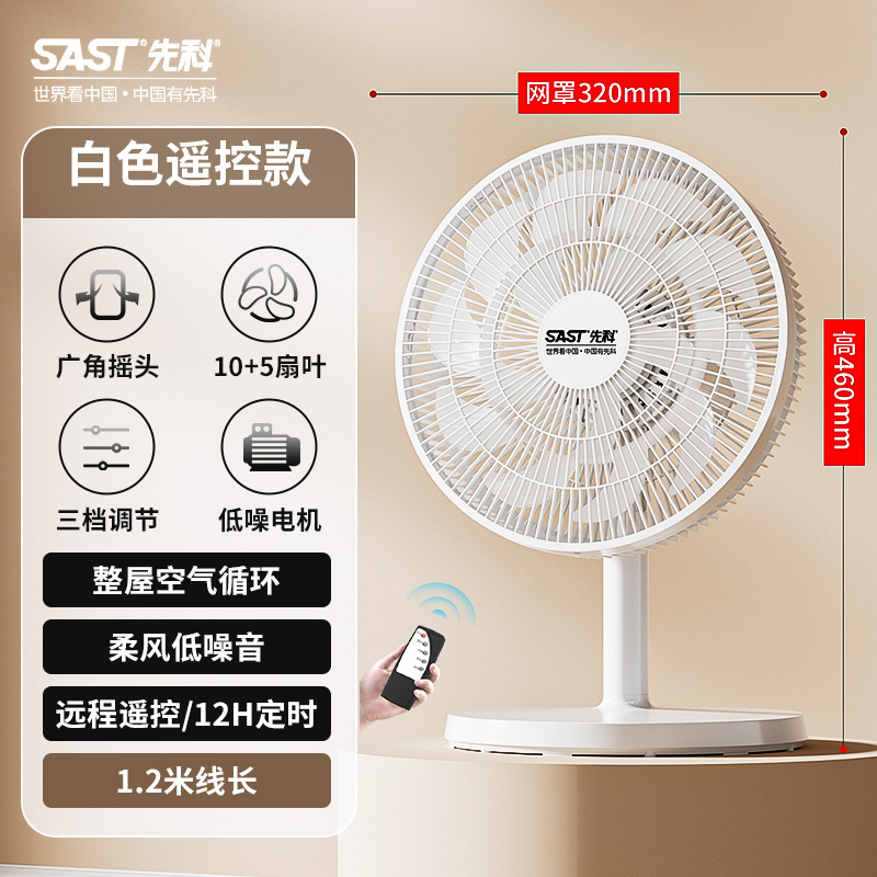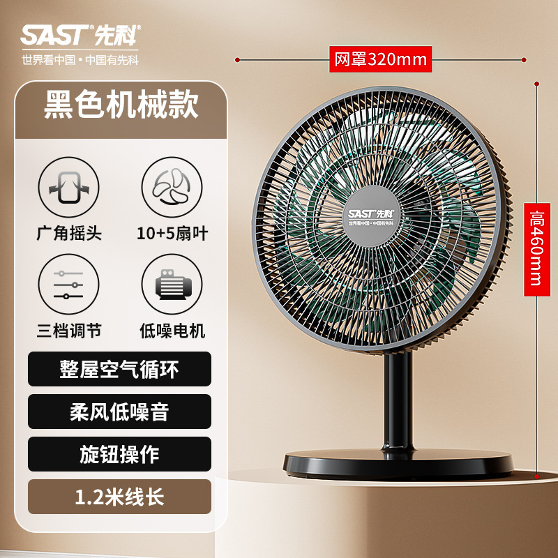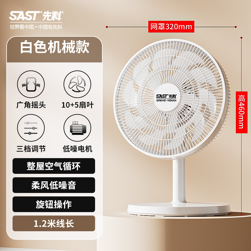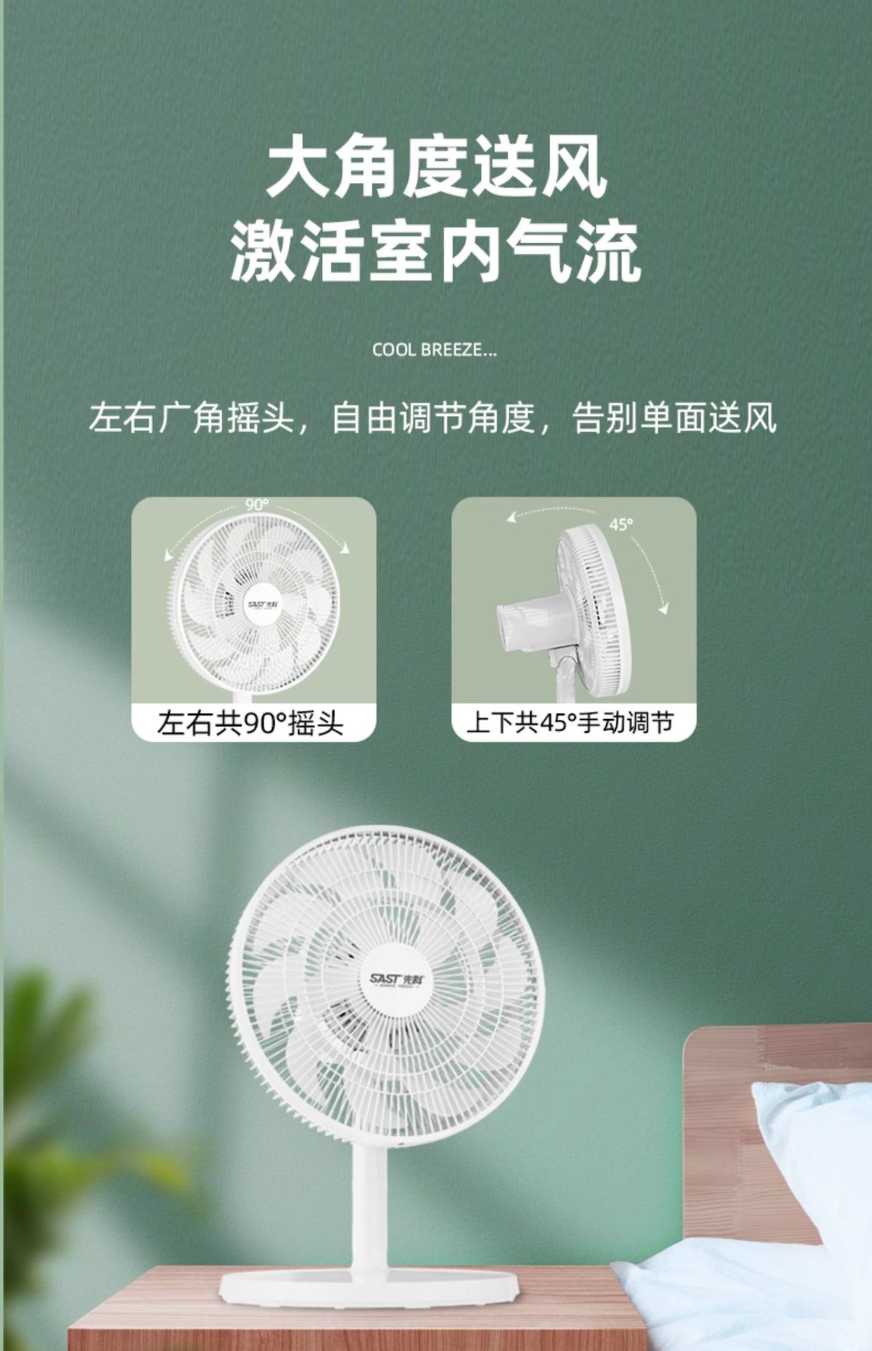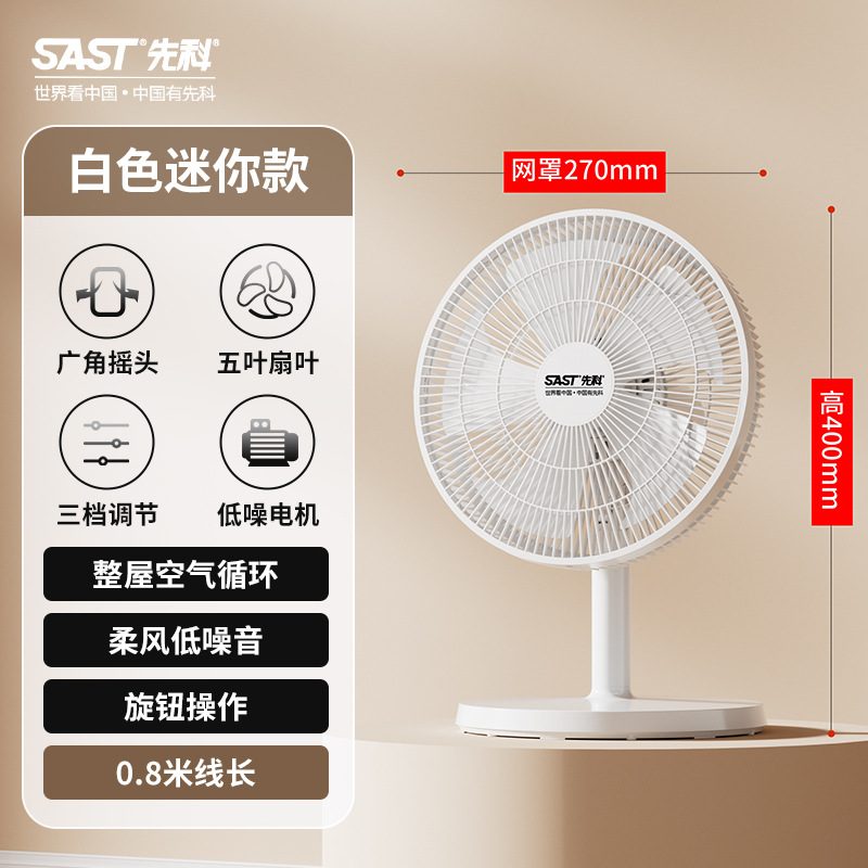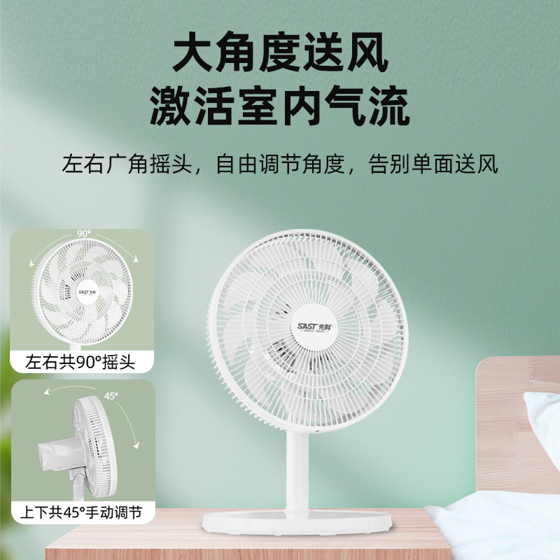 先科电风扇家用大风力静音台扇宿舍卧室摇头节能小型桌面台式风扇