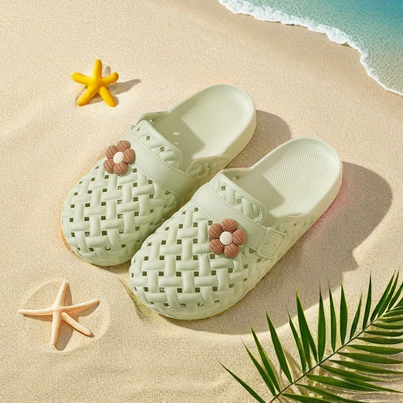 包头半拖鞋女夏季外穿厚底踩屎感镂空拖鞋时尚防滑海边沙滩凉拖鞋
