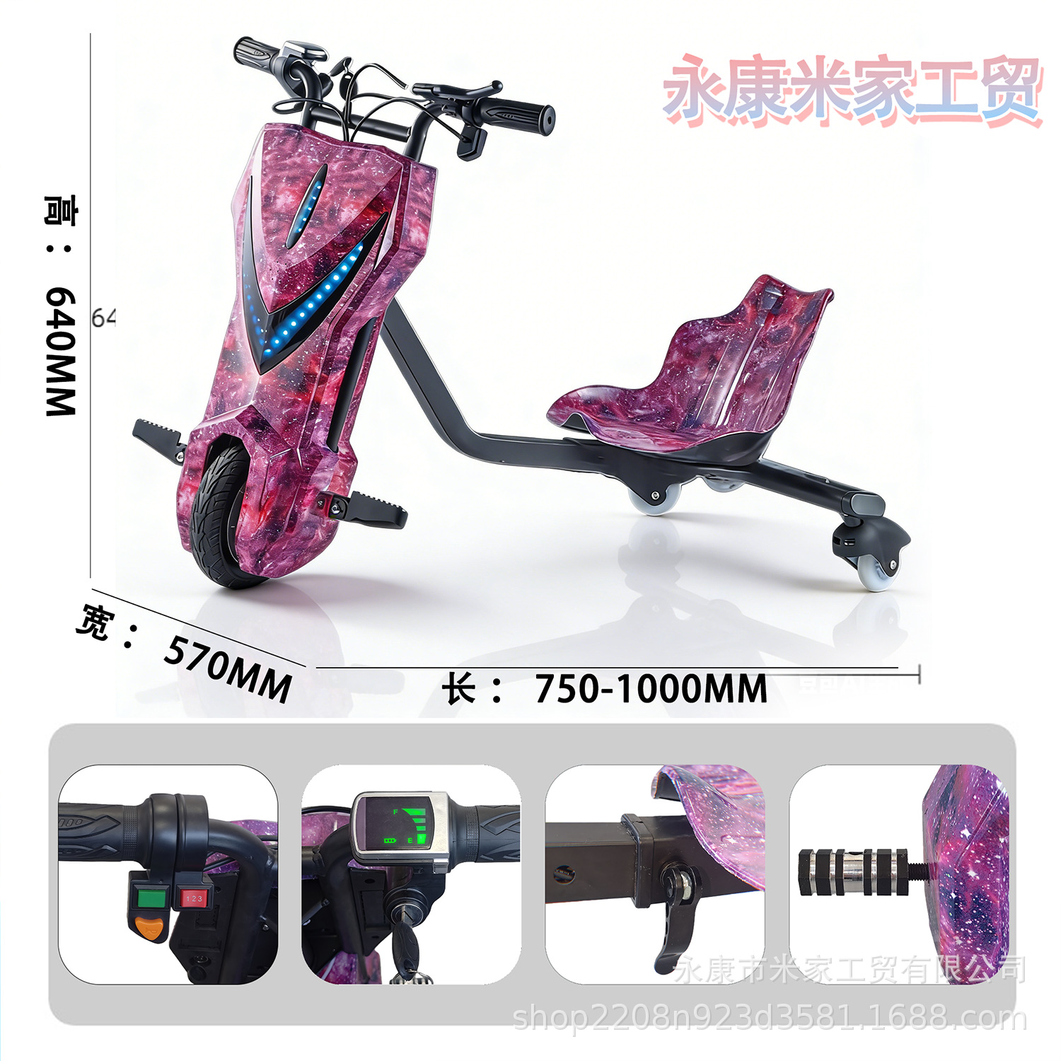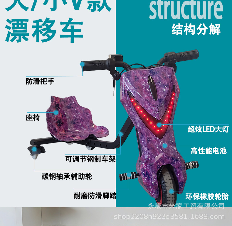 电动三轮漂移车V款长续航卡丁车米卡丁车大人可做巴西INMETRO认证