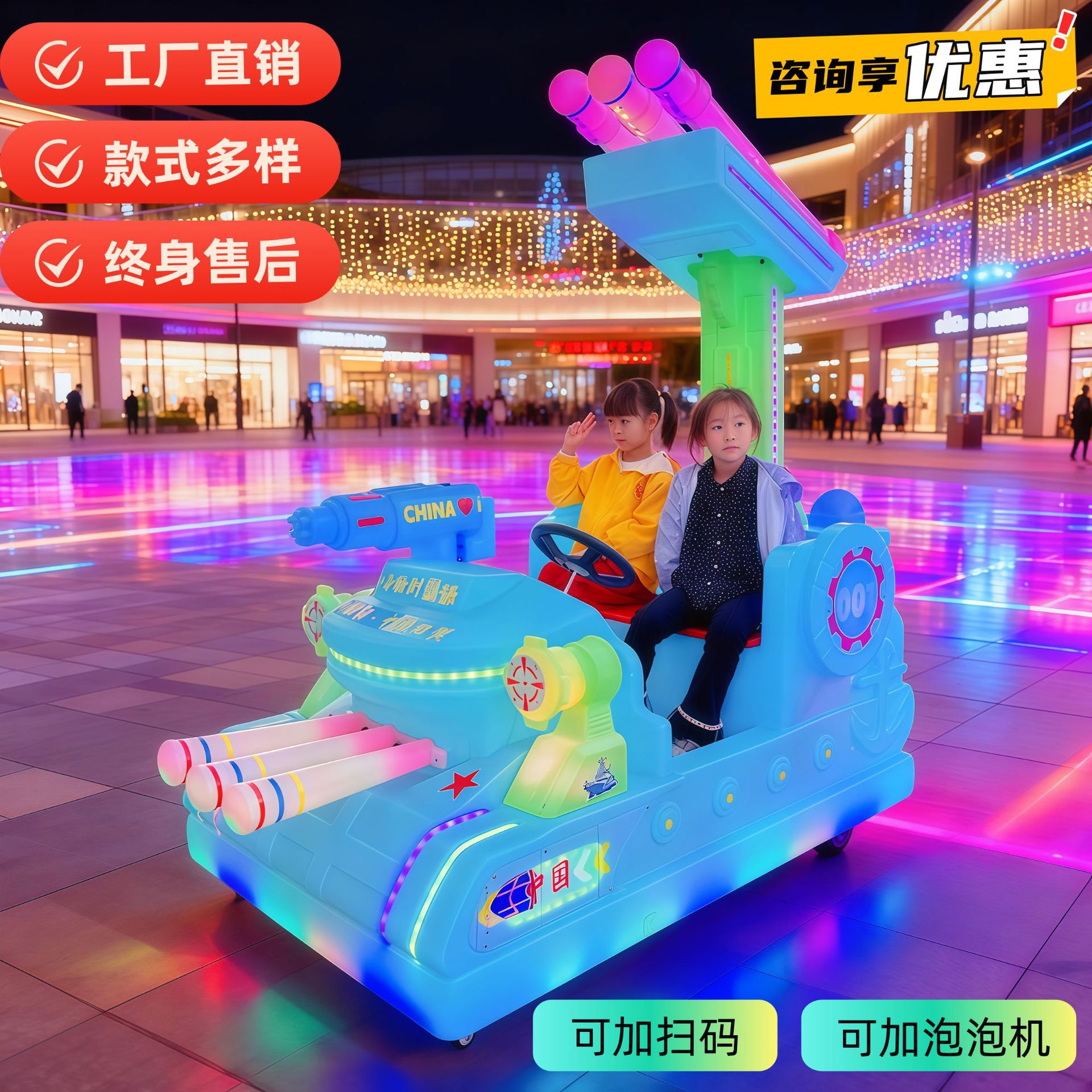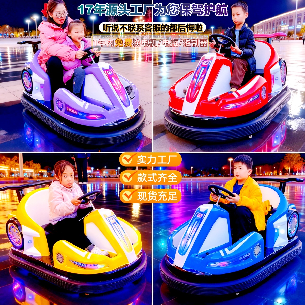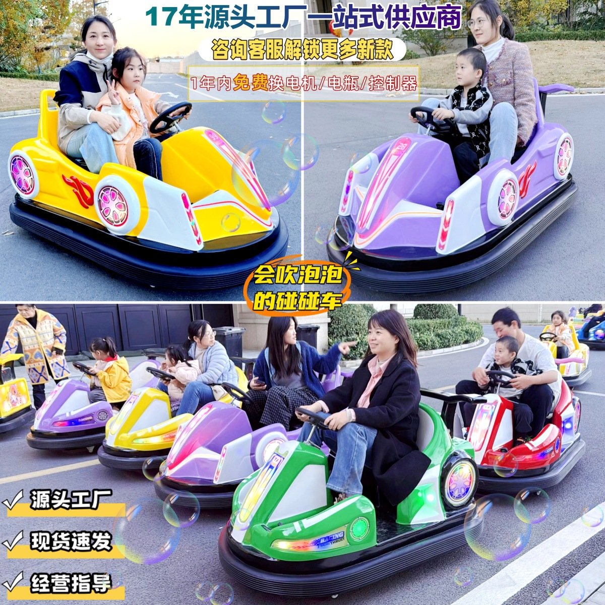 广场亲子卡丁车漂移车双人可坐带泡泡功能儿童电动碰碰车玩具跑车