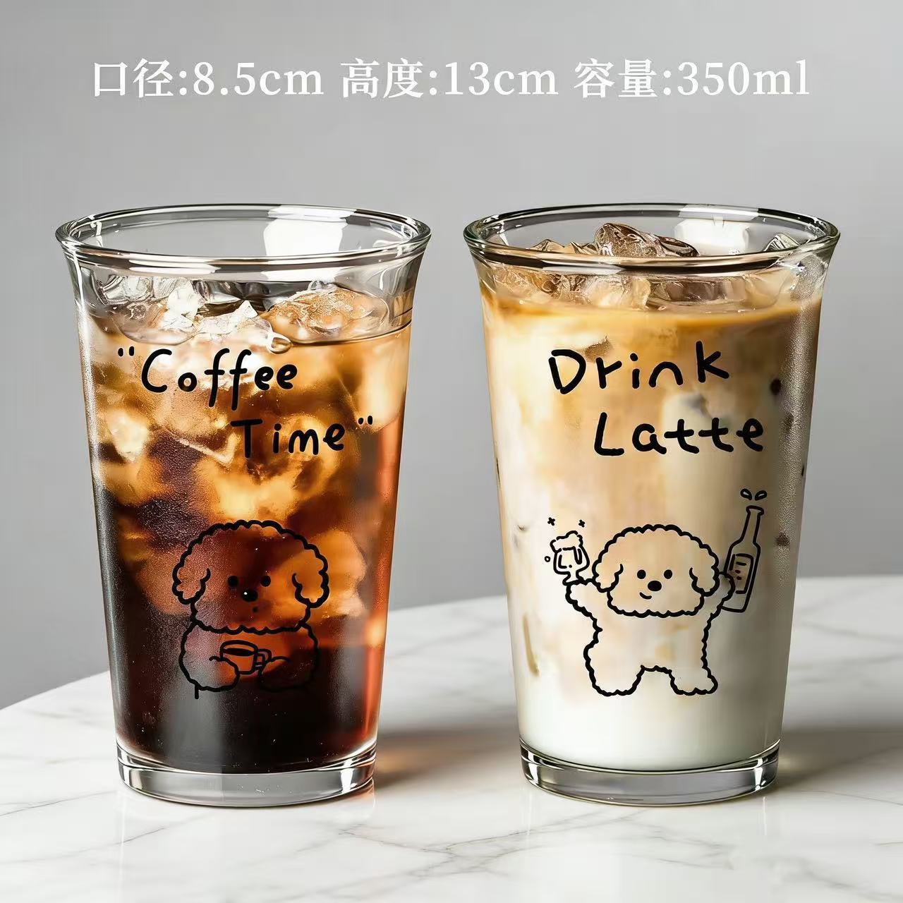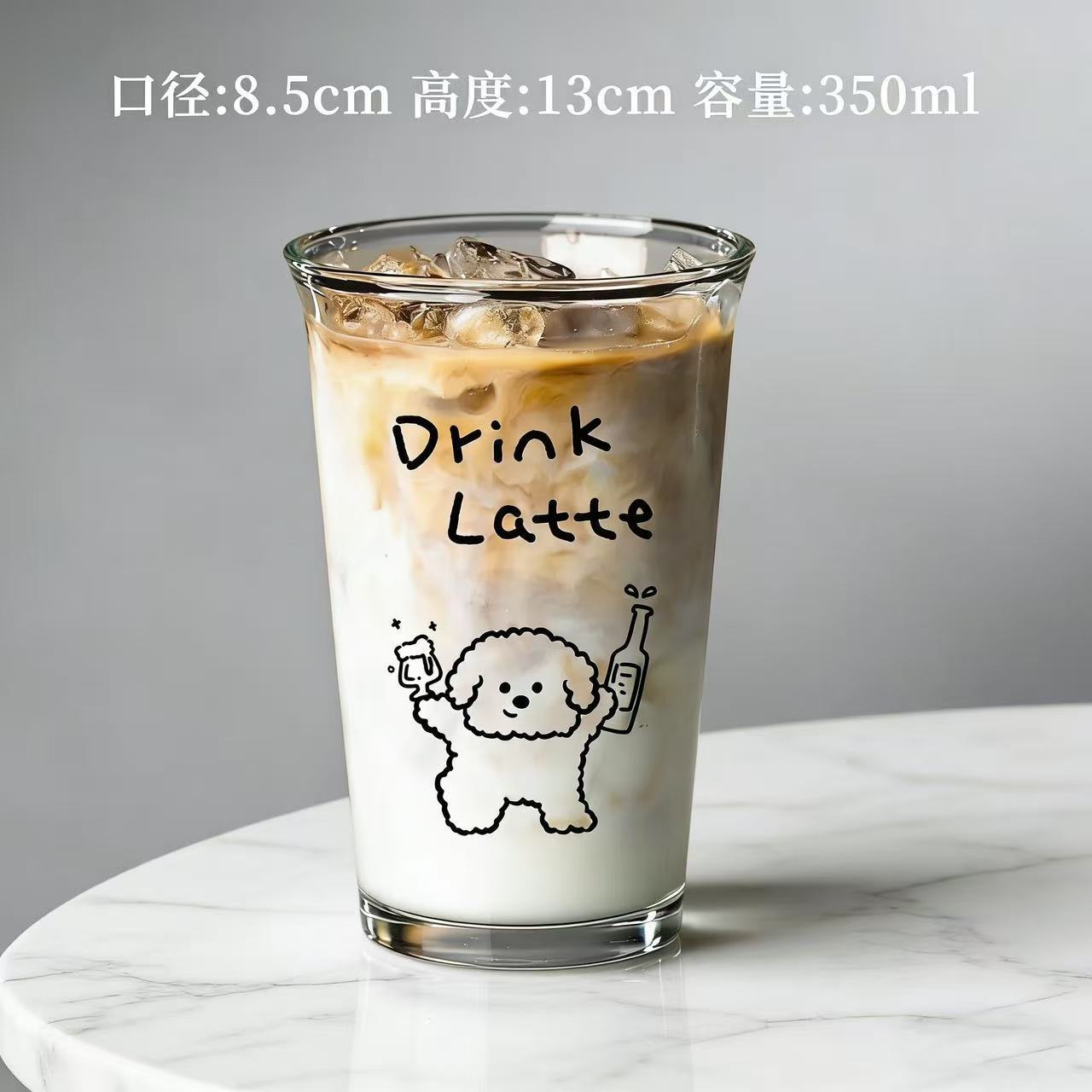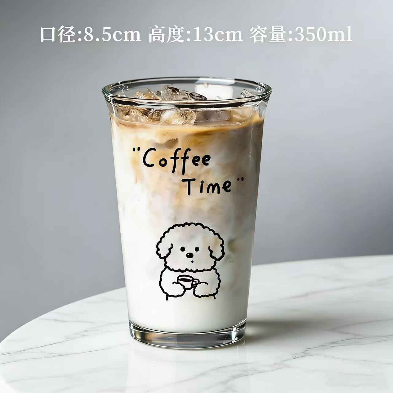 高颜值卡通玻璃杯果汁饮料水杯ins高脚冰淇淋杯家用甜品咖啡杯子