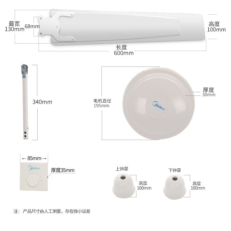 美的吊扇FC140-BA家用电风扇56寸教室餐厅客厅吸顶风扇工程吊顶扇