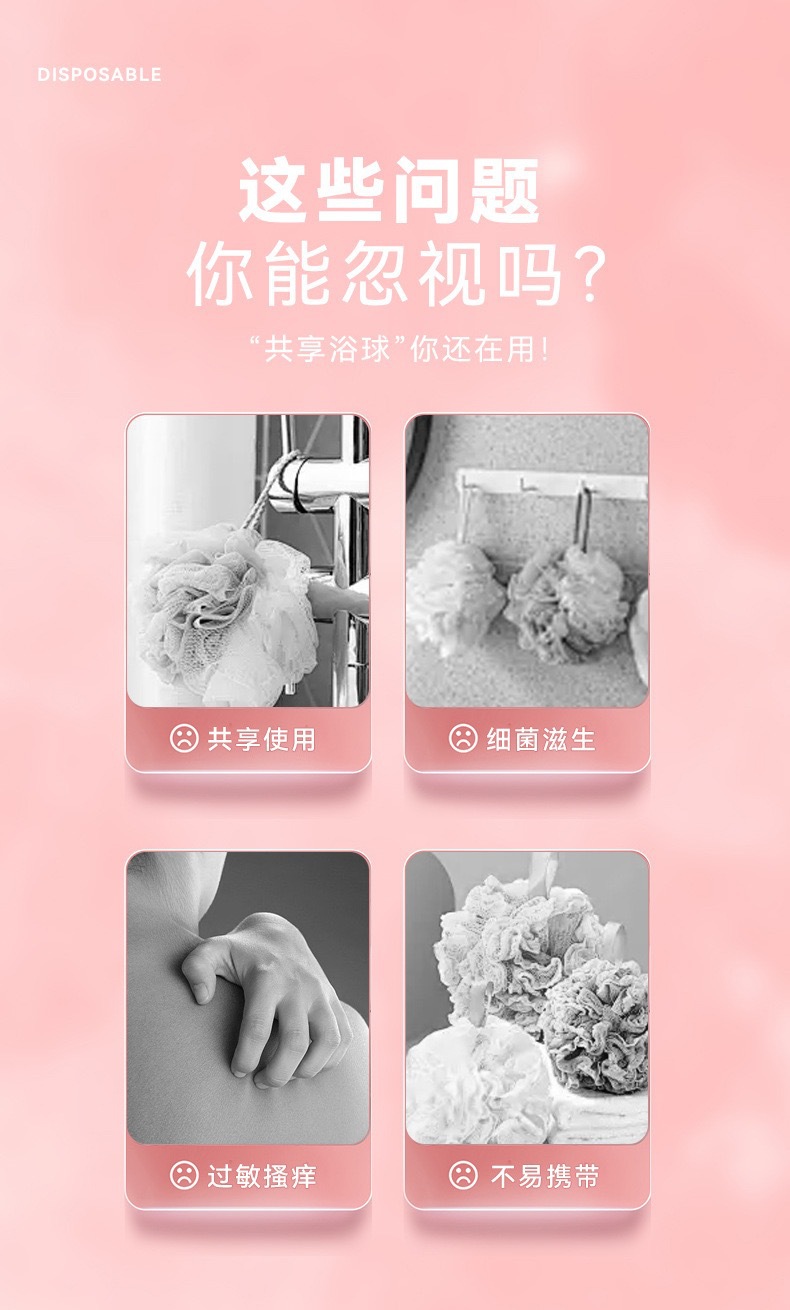| disposable loofah {10 pack}(一次性沐浴球{10个装}) | USD $2.73 | 9889 piece available |