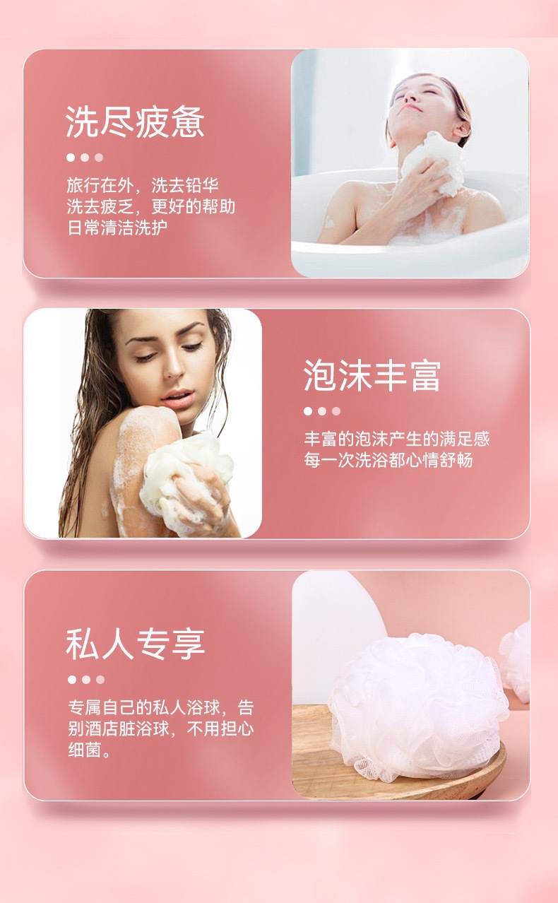 | disposable loofah {1 pack}(一次性沐浴球{1个装}) | USD $0.28 | 8970 piece available |