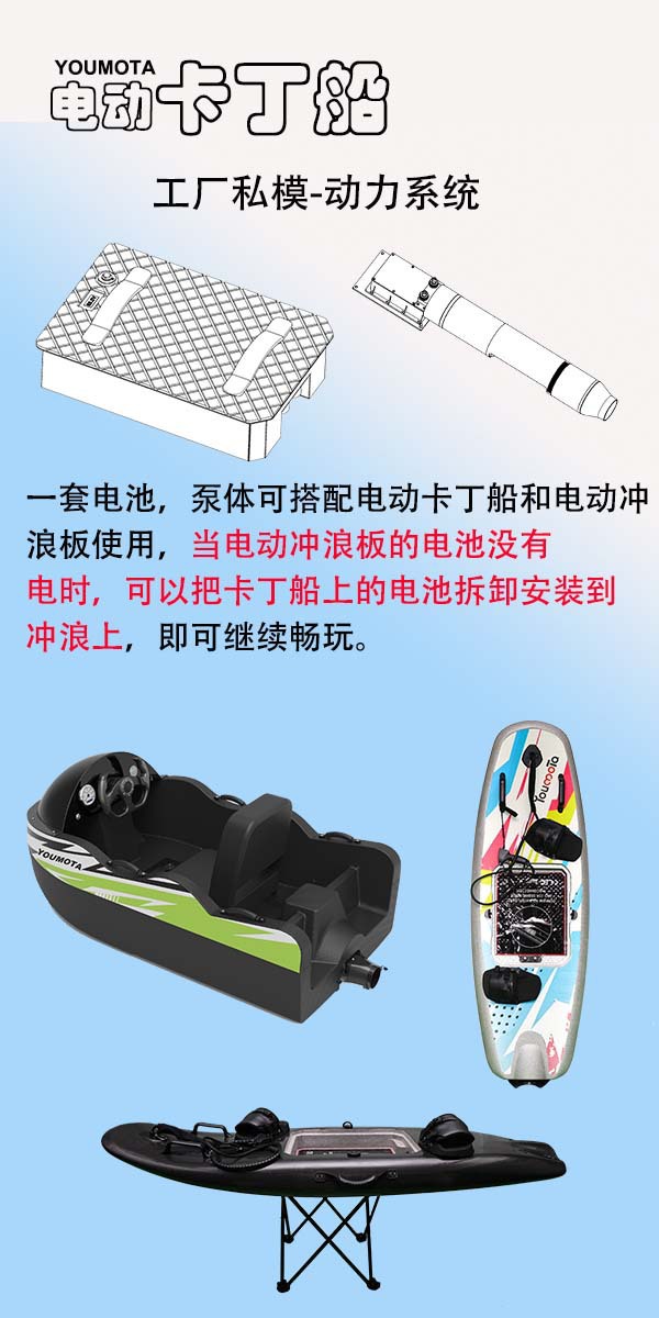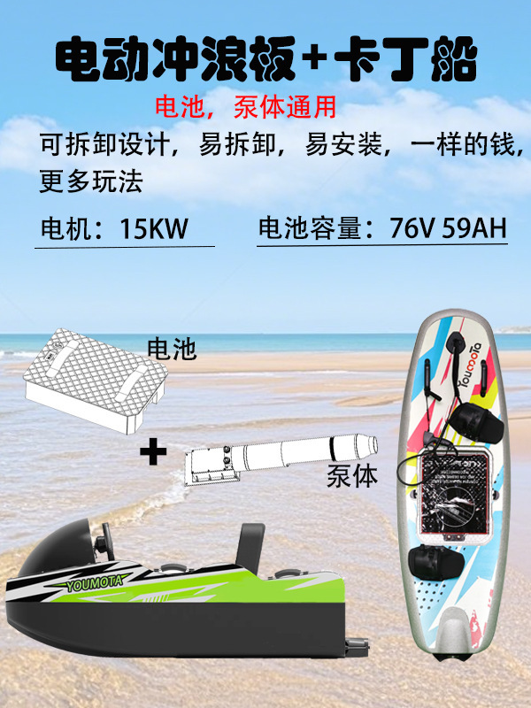 水上冲浪板高速喷射站立式电动滑板搭配卡丁船钓鱼艇娱乐
