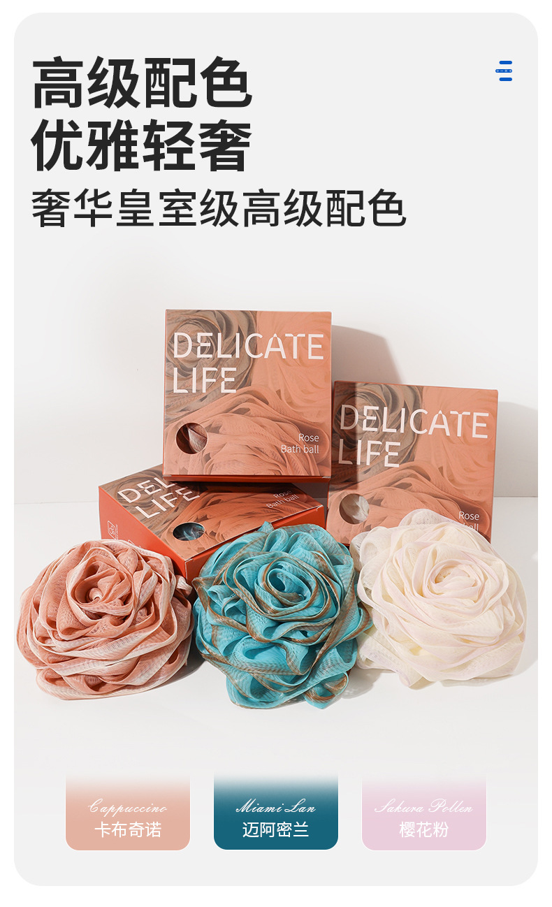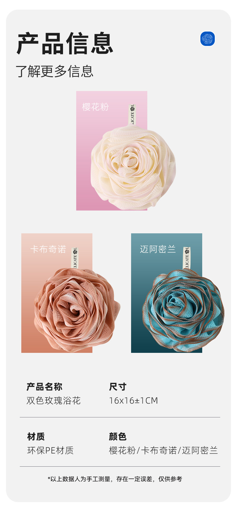 双色玫瑰沐浴球大号浴花球高档不散起泡泡澡球超柔软搓背洗澡巾女