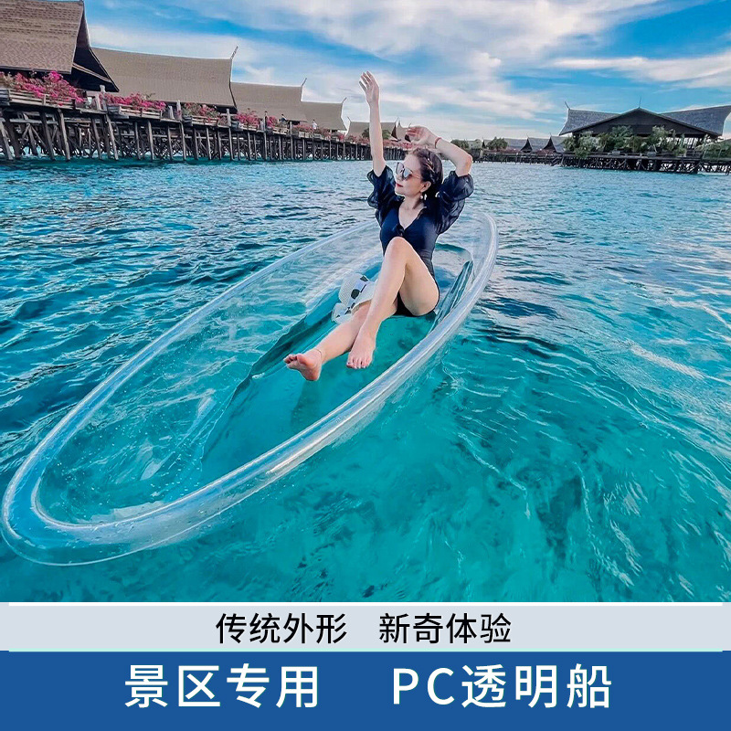 户外运动划艇PC透明船水晶塑料船旅游观光玻璃船婚纱网红拍照摄影
