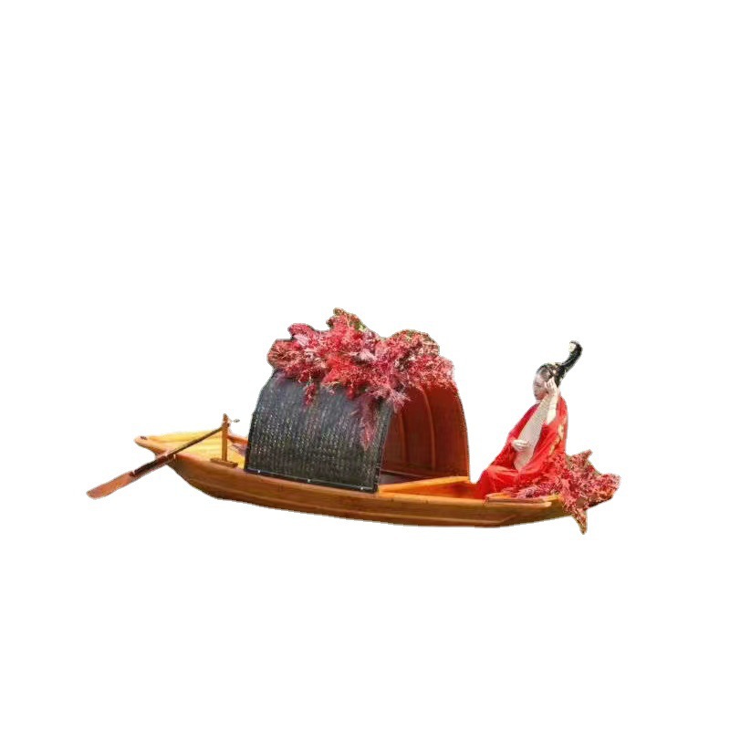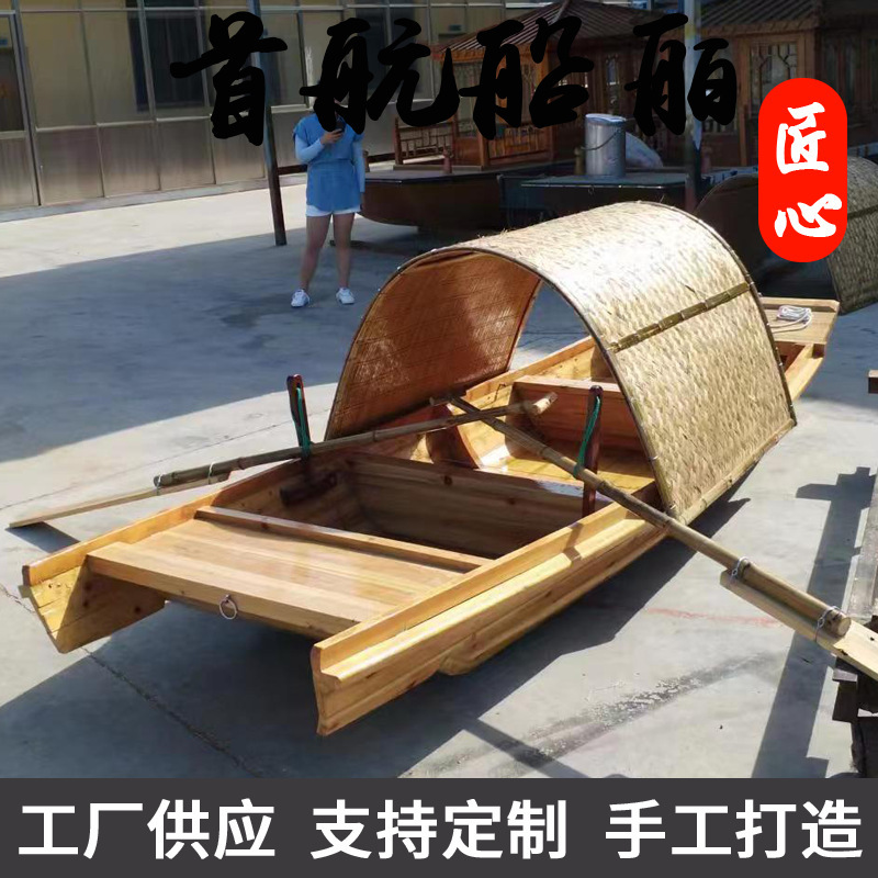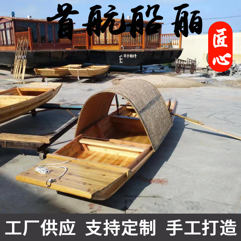 木船渔船实木质仿古手划摇橹乌篷船水上电动观光旅游装饰小船复古