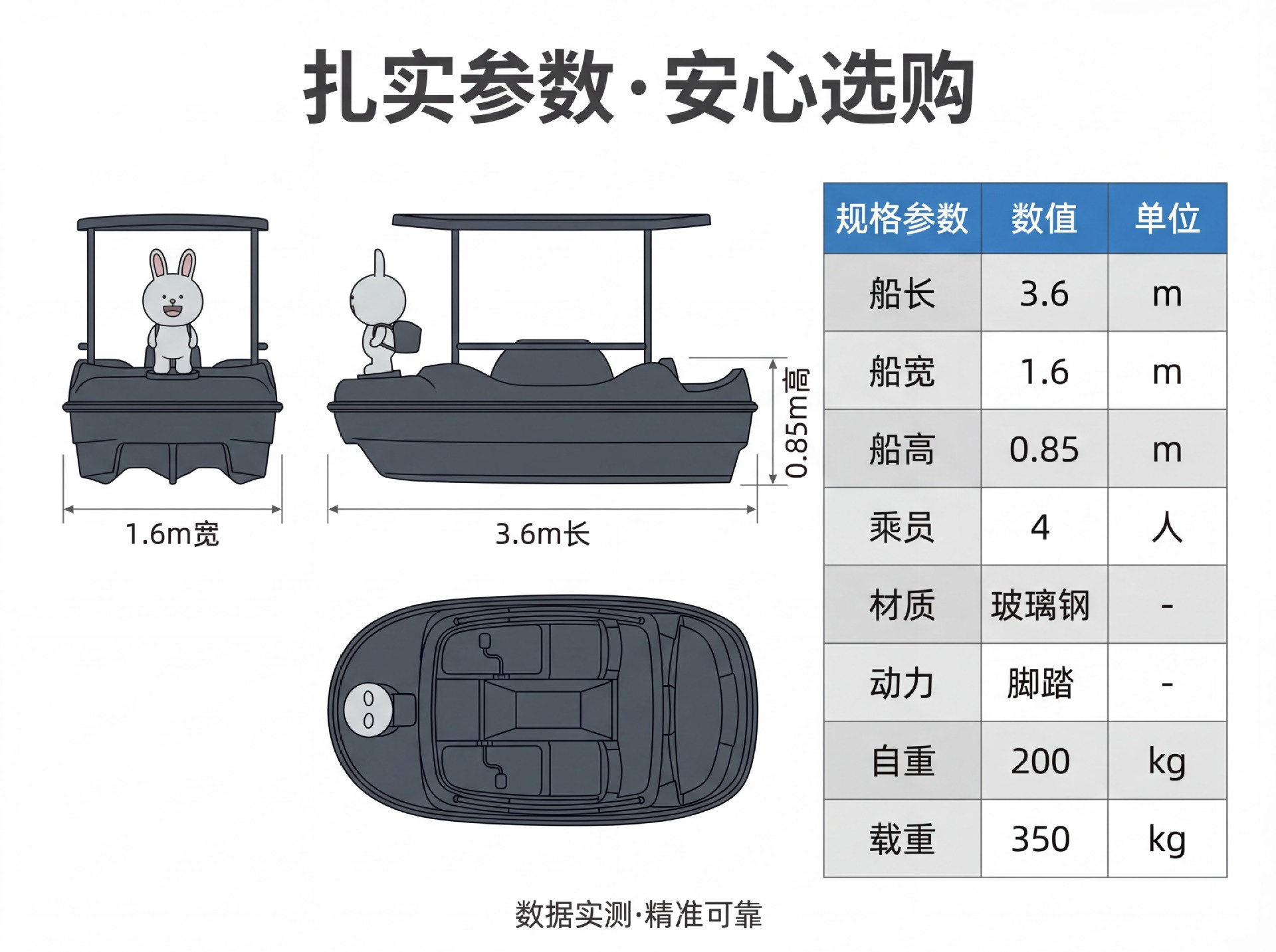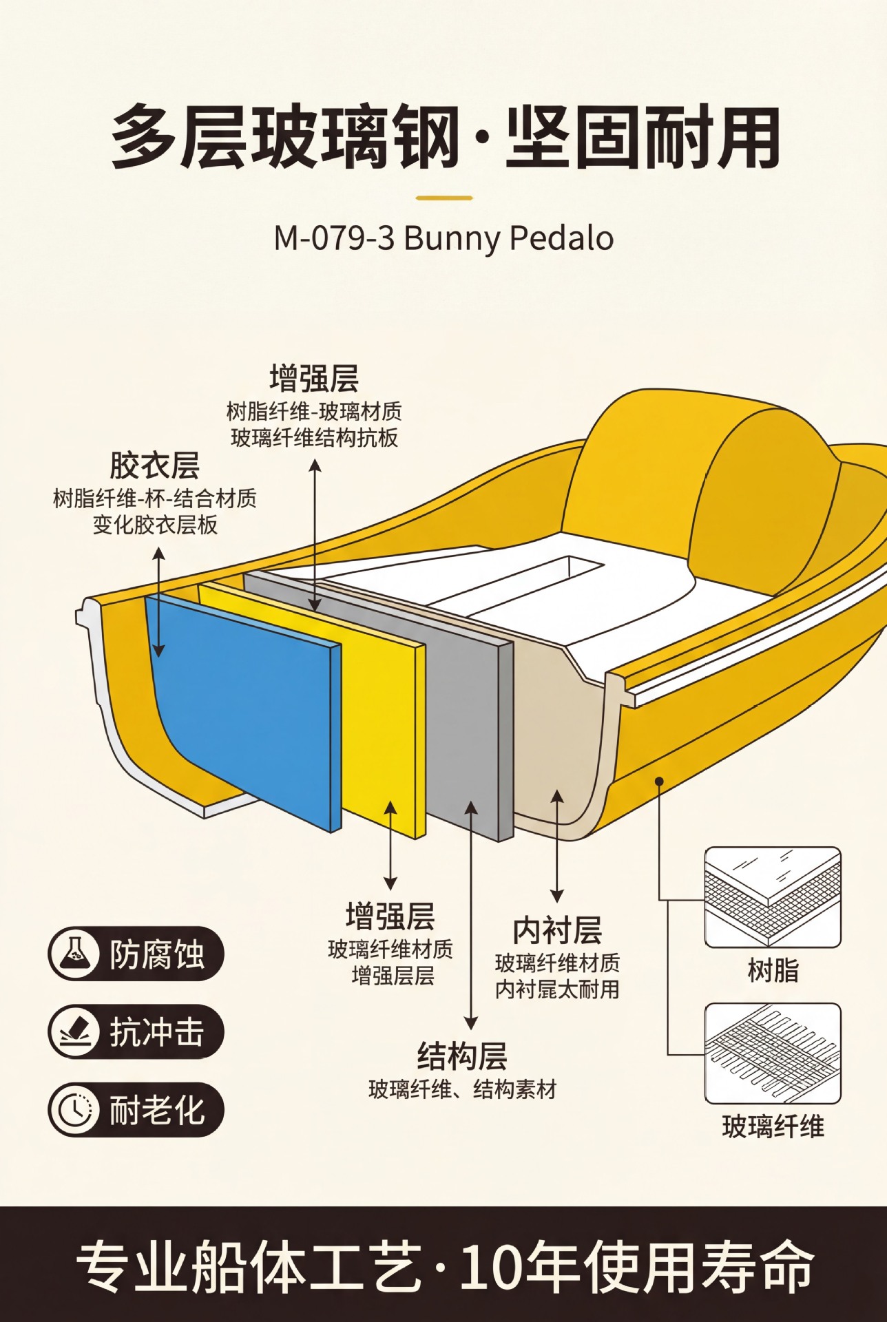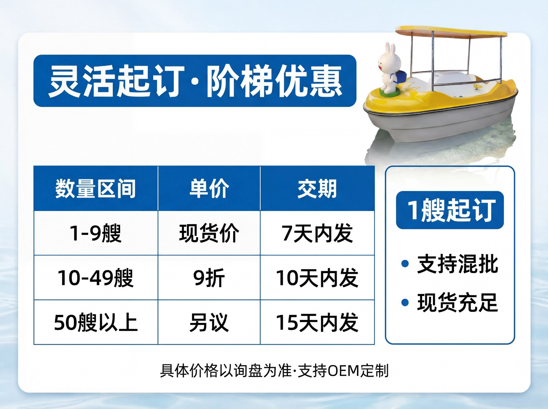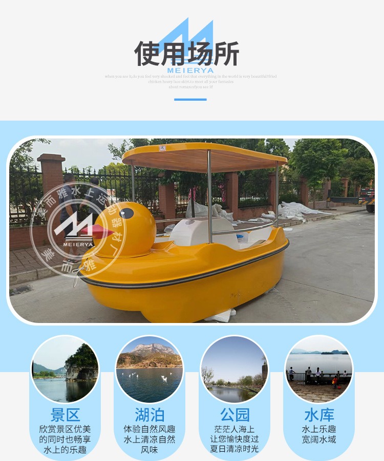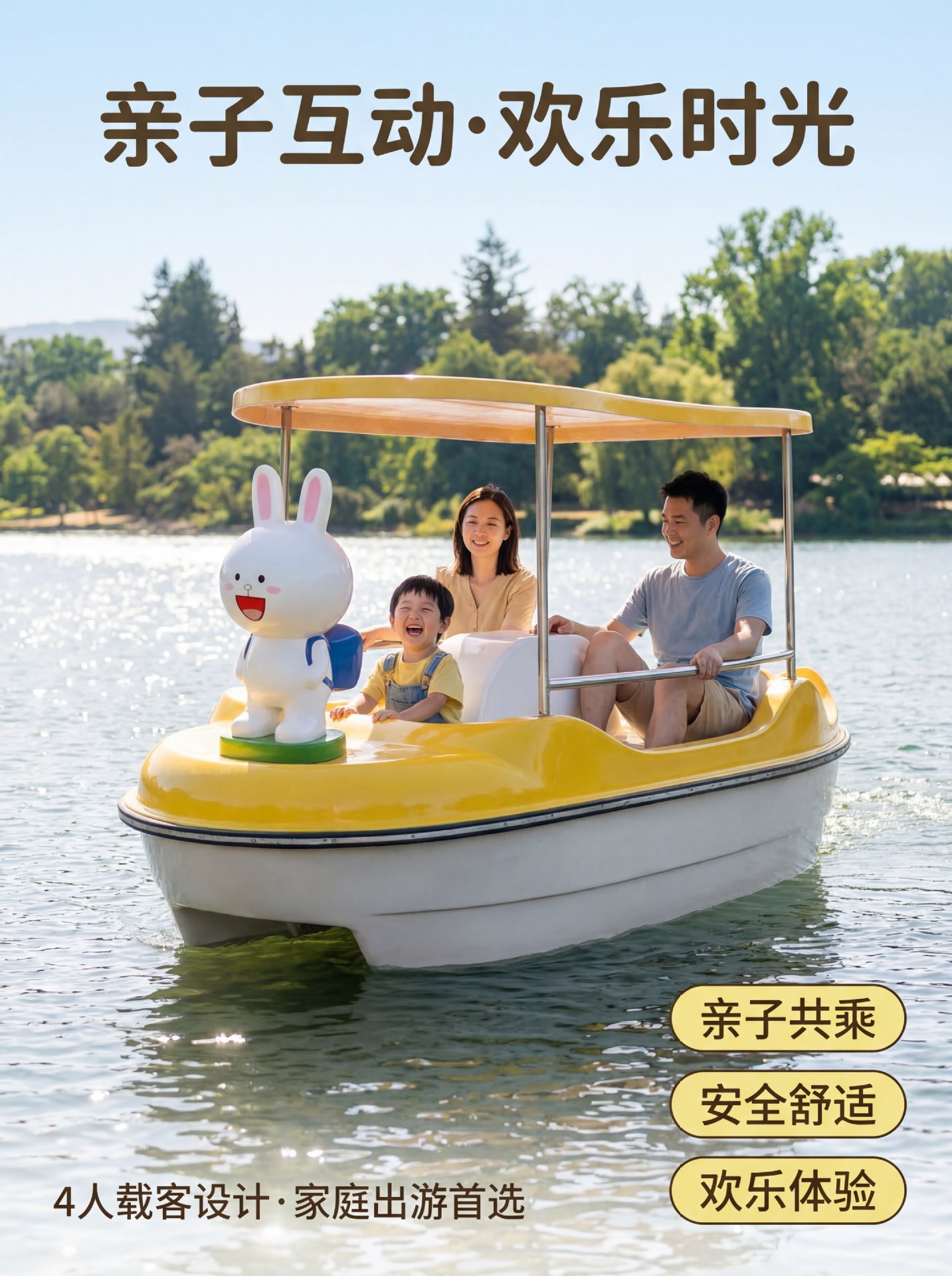 水上游乐观光船玻璃钢船加厚黄鸭船防滑排水公园游船景区电动船